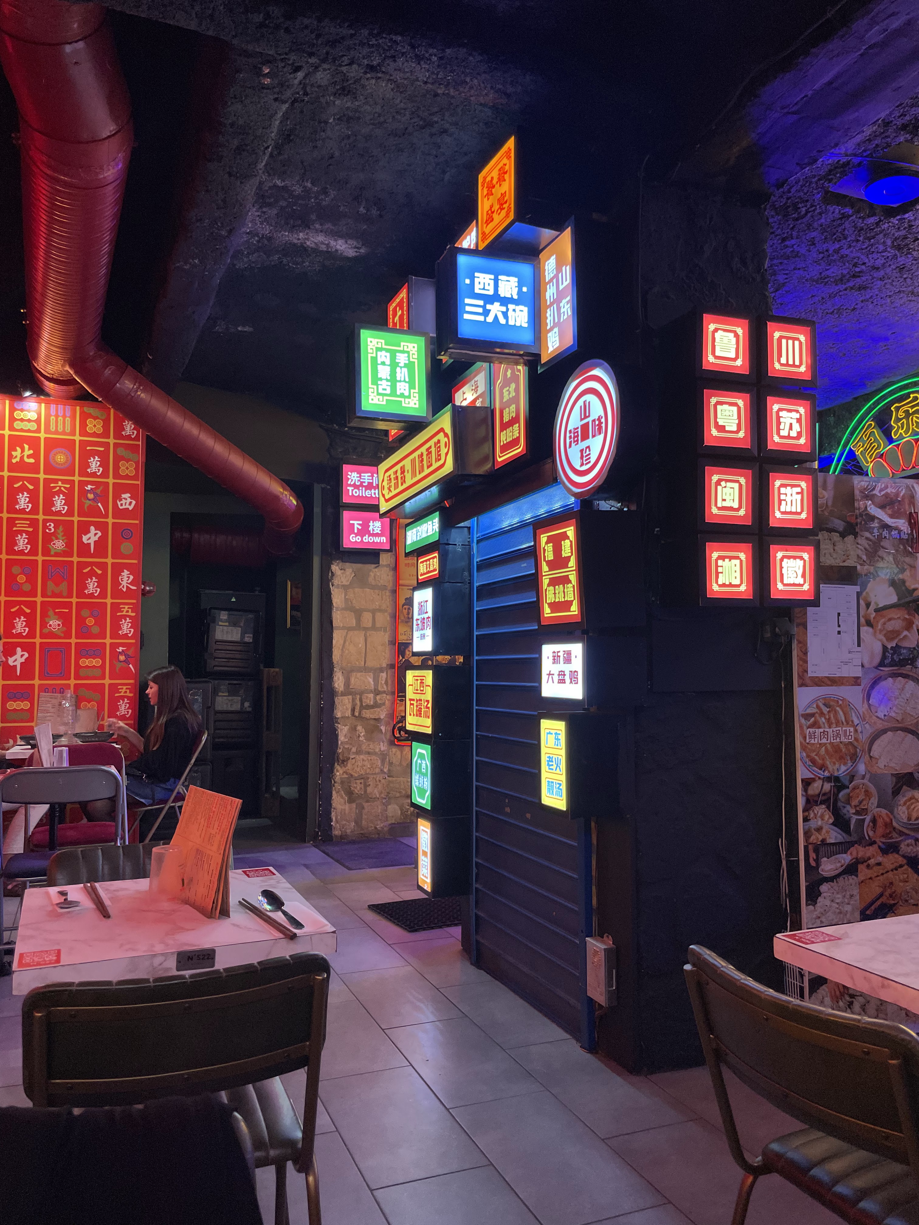 Super restaurant pour manger des nouilles. Le service est très efficace, l’ambiance est géniale avec toutes les lanternes et les néons. On vous propose de choisir votre niveau de piquant (de 1 à 6) ce qui est plutôt chouette! Je recommande la soupe nouilles aux bœuf (la viande était hyper tendre) et la soupe de nouilles DanDan au porc. Précisez si vous n’aimez pas la coriandre car il y en a beaucoup dans les bols.