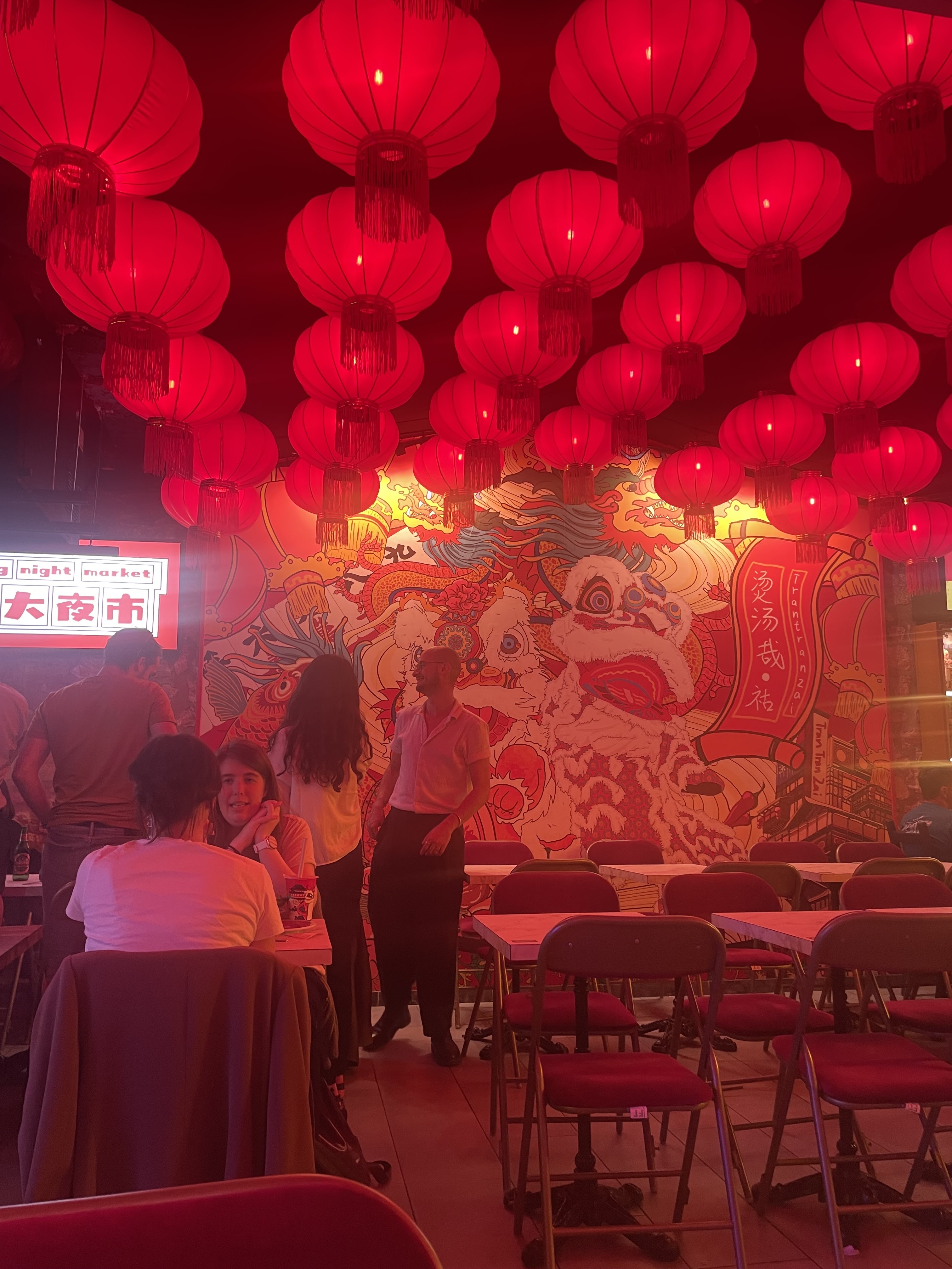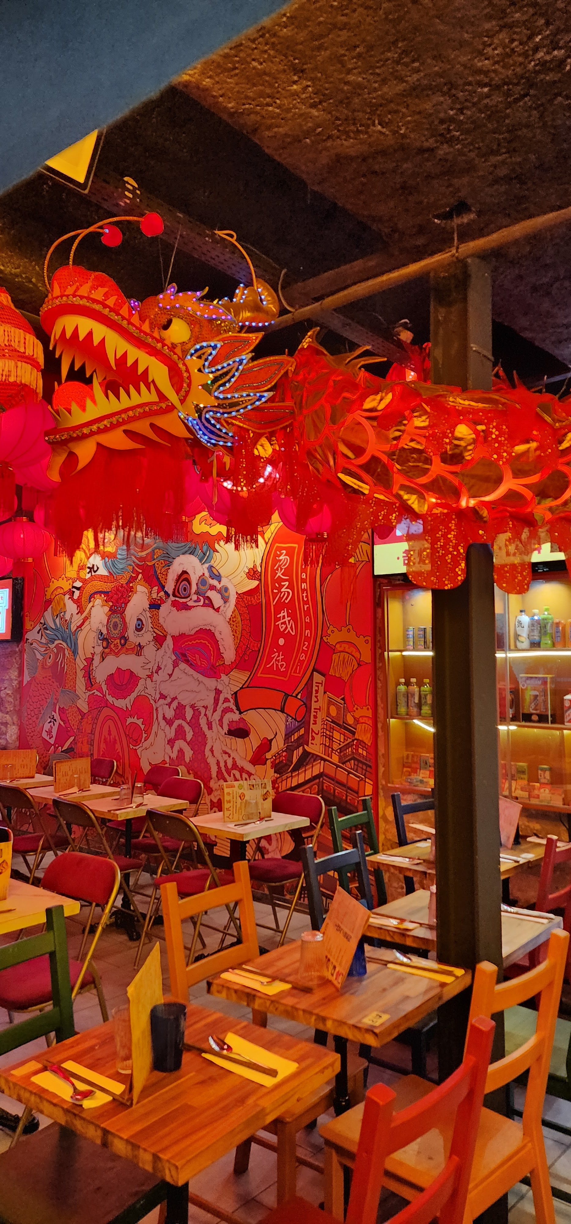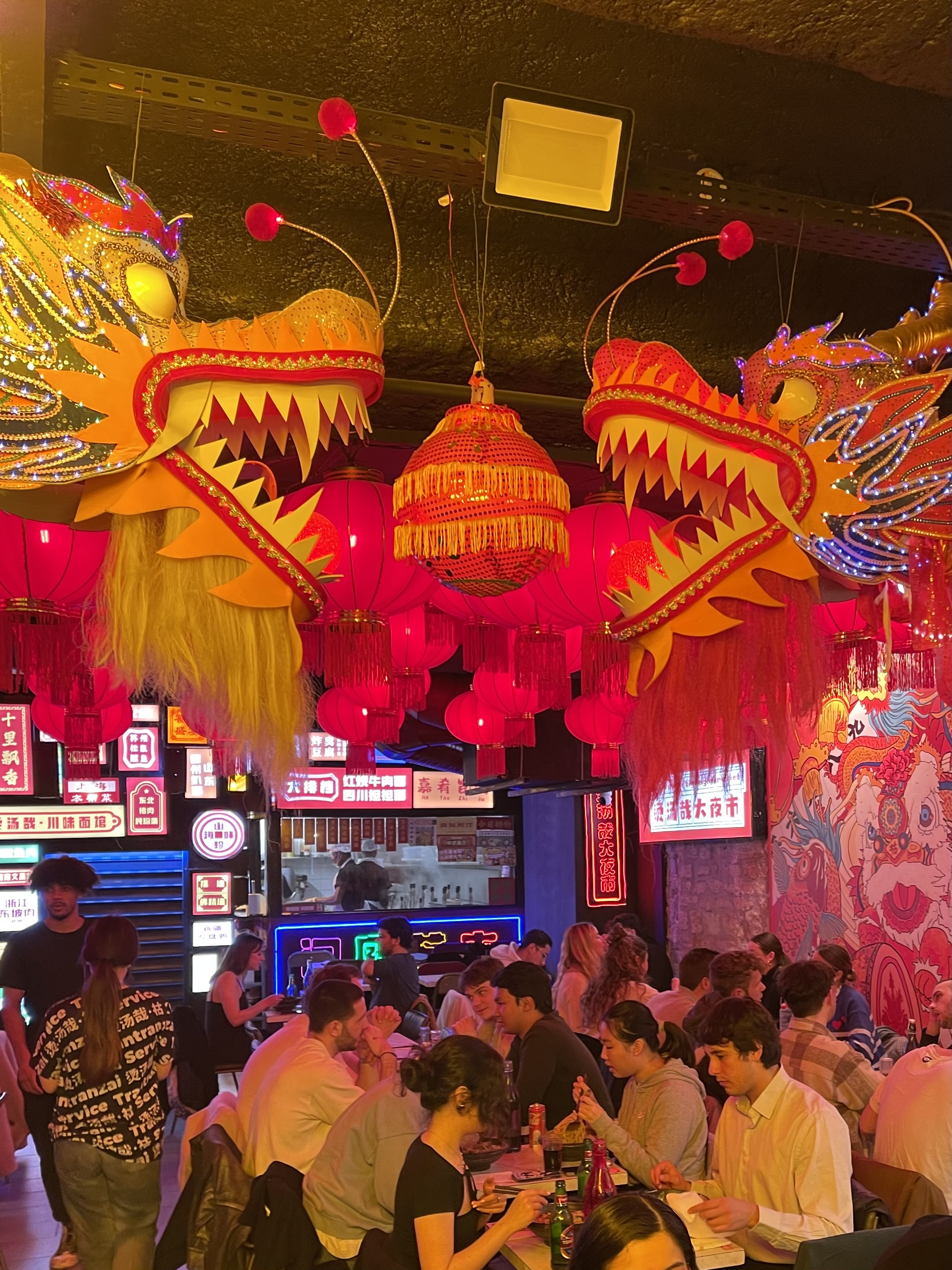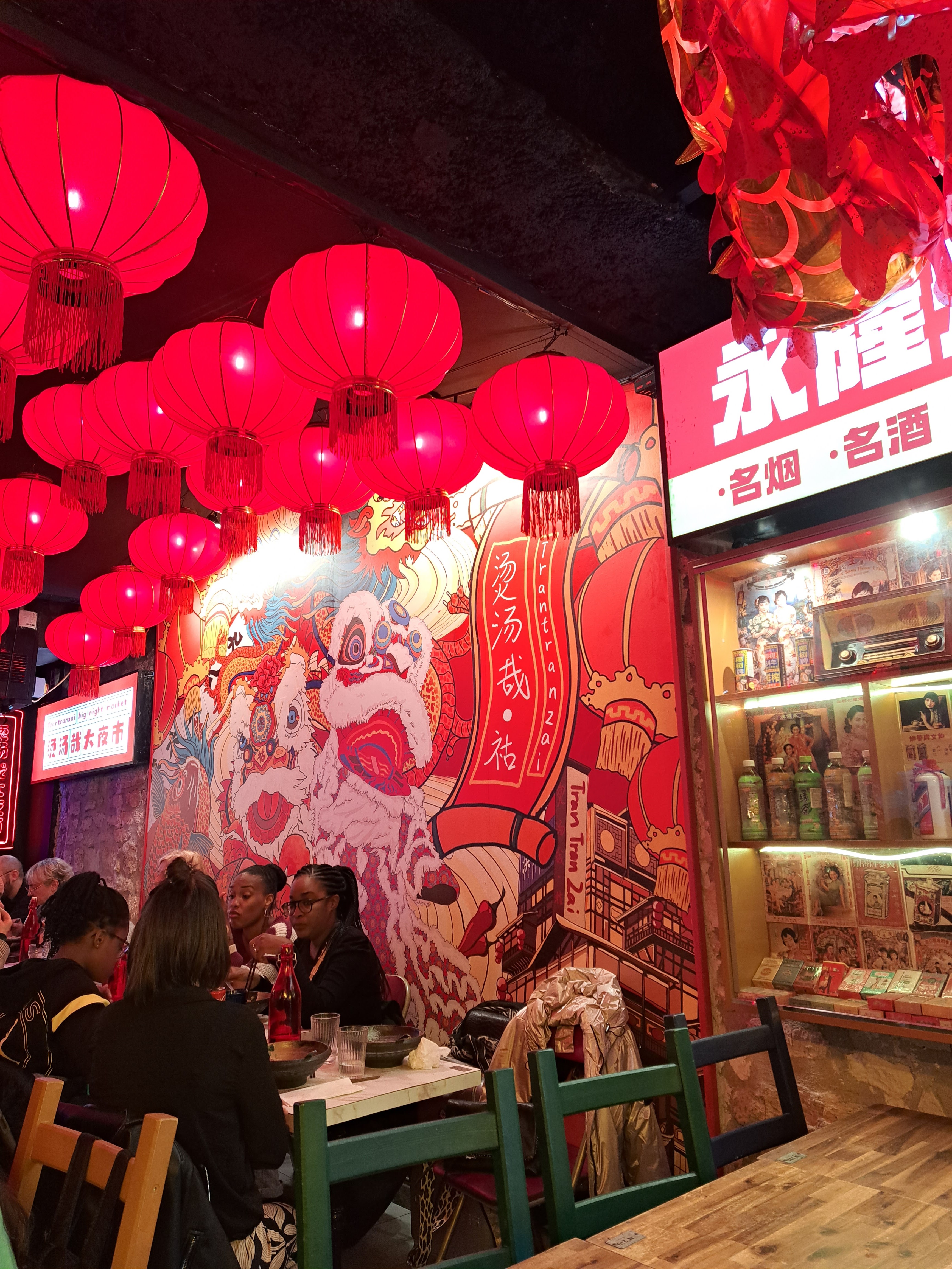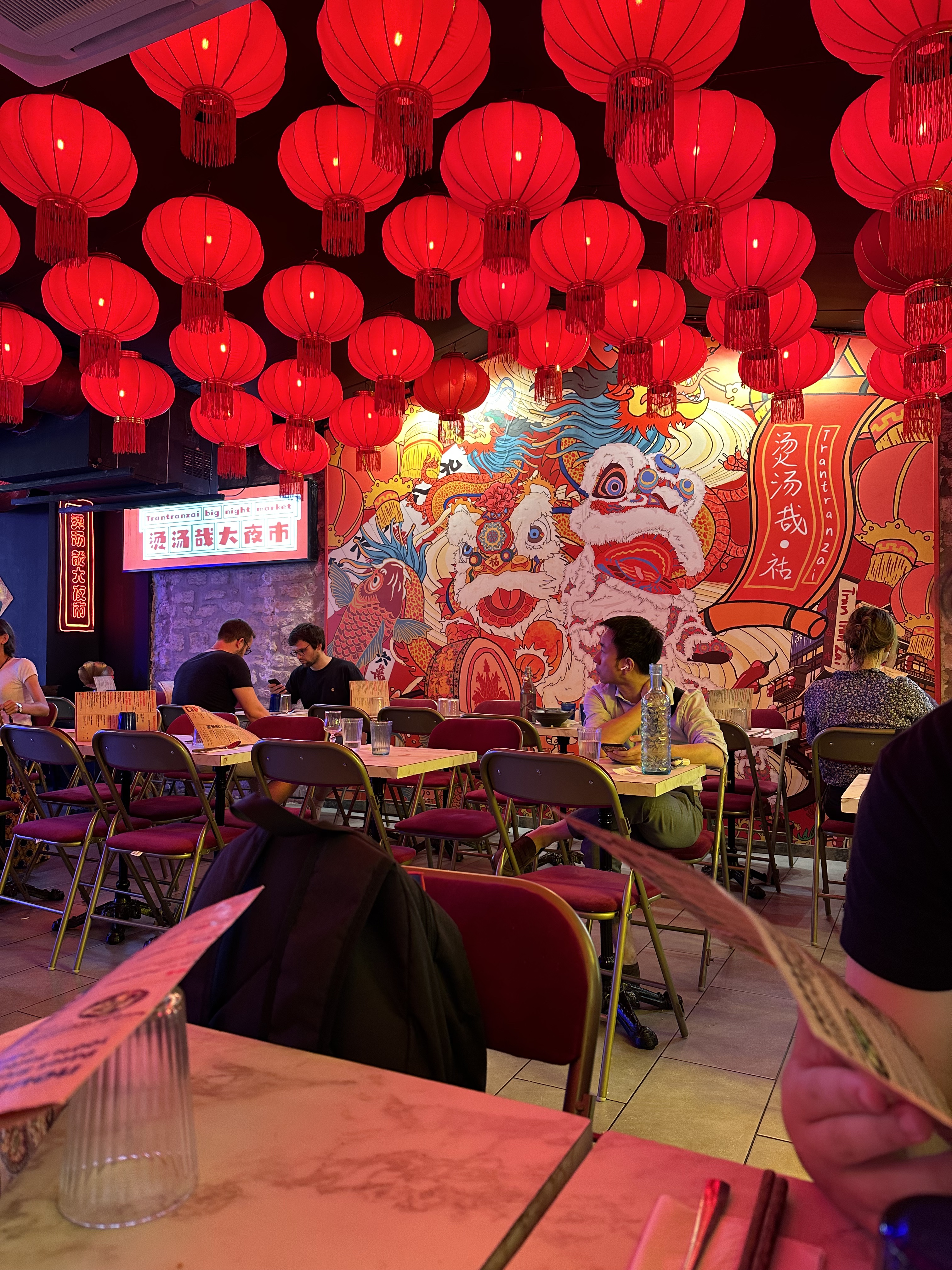 Lieu unique dans le quartier. Décoration très originale qui nous fait plonger immédiatement dans la culture chinoise. Nous avons été extrêmement ravis par nos plats qui sont très bons et très copieux ! Les prix sont corrects par rapport aux quantités et au goût. Petits bémols cependant pour le service qui manque un peu de sourire et de convivialité et pour la promiscuité avec nos voisins de table.