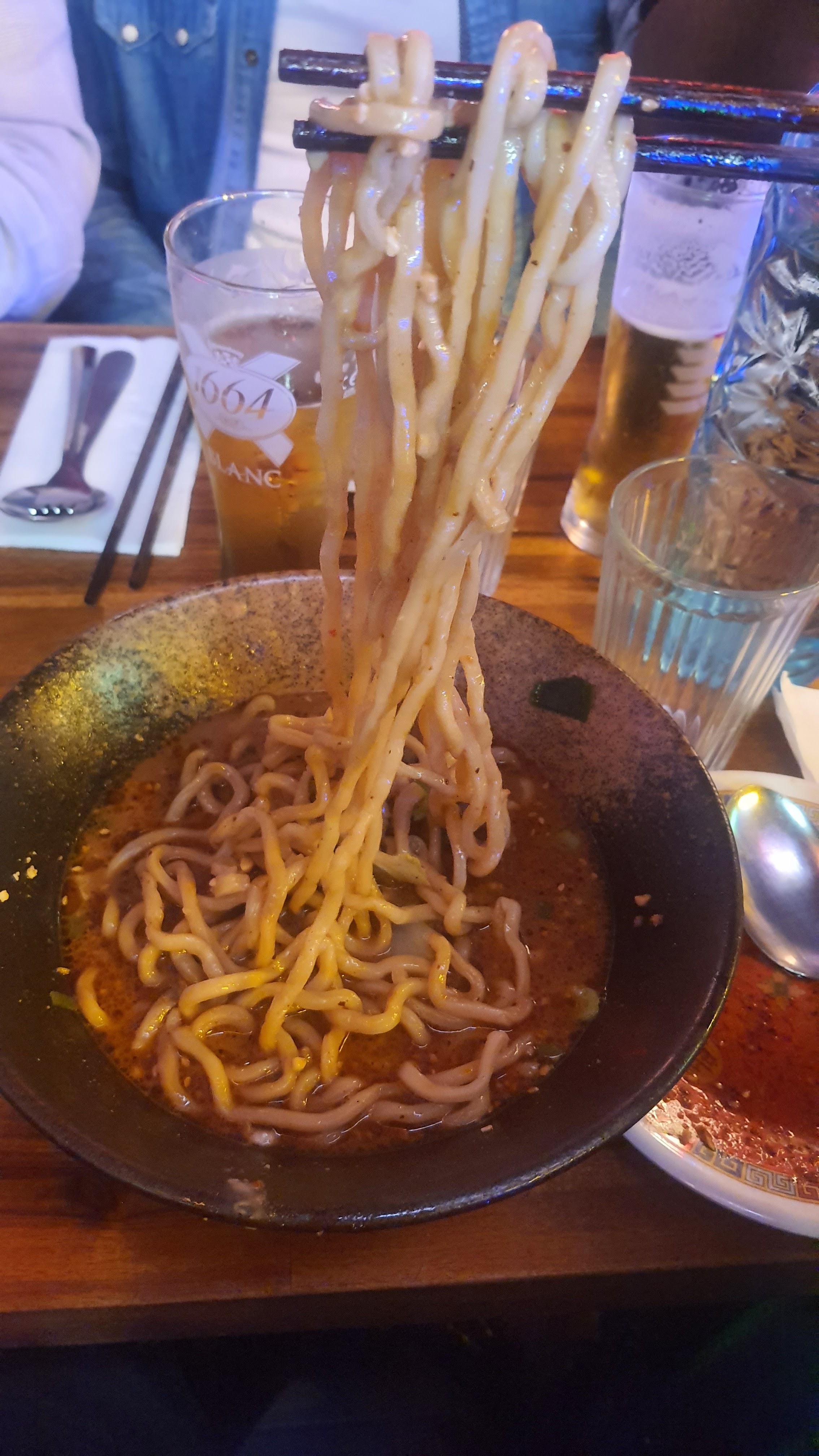 Bonne nouilles, parfumés et en bonne quantité. Les raviolis étaient bons mais pas très chauds, dommage! Concernant le lieu, ambiance et décoration sympa! Le service très rapide, serveuses et serveurs agréables et prévenant. Les différents degrés de piment nous ont bien été expliqués et ça correspondait bien aux plats servis.