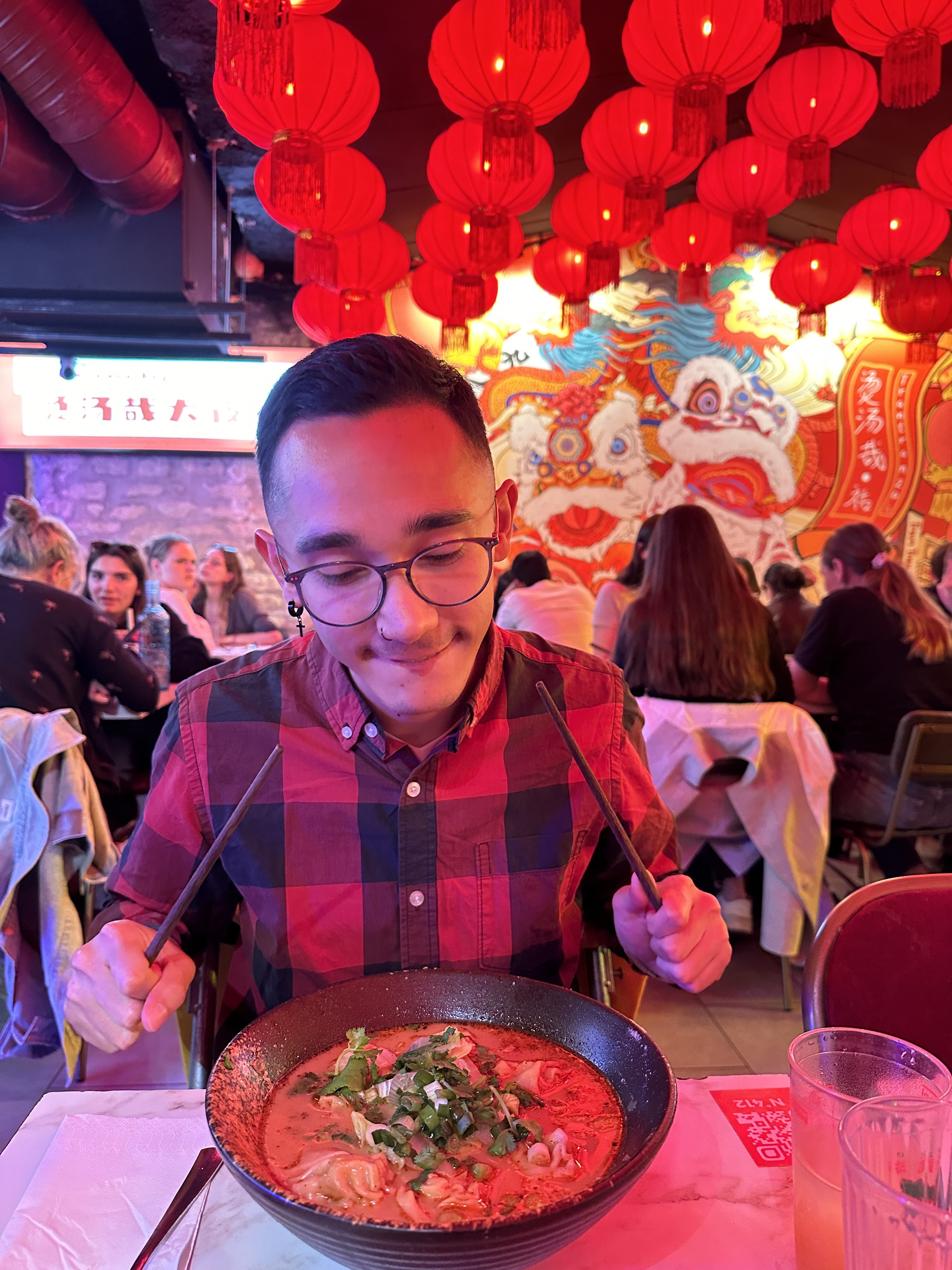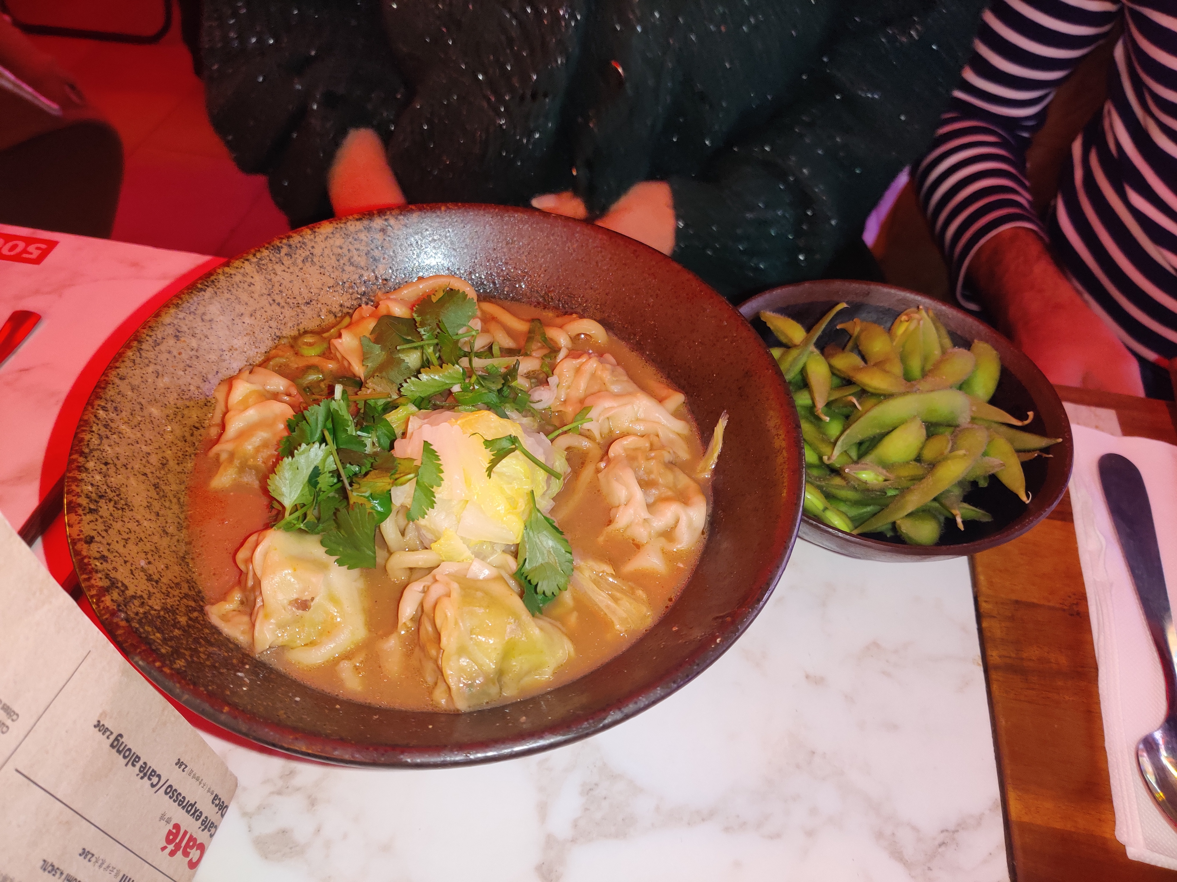A la base je ne devais pas me retrouver sur place mais suite à un aléa dû à une faute de la part d’un livreur UBER j’ai demandé un responsable. Il a répondu à mes attente et à gérer la situation, et à ma grande surprise la décoration m’a étonné. C’est le lieu parfait pour être dépayser, un 1er date ou de nouvelles découvertes. Le service est impeccable, serveuses/serveurs à l’écoute, l’ensemble de l’équipe paraît jeune, ça ajoute de la vivacité et du peps, mais surtout la nourriture est top et les portions sont généreuses. Je comprends pourquoi il y a autant d’avis positifs, je n’ai pas pu prendre de raviolis grillés étant donné que le chef était en pause lors de ma commande mais j’ai essayer une de leur soupe et c’était excellent. Si vous voulez changer de vos phô ou vos ramens c’est le lieu idéal pour découvrir une autre version de la soupe asiatique. Des vêtements orienté street sont aussi disponible à l’entrée du restaurant 👍
