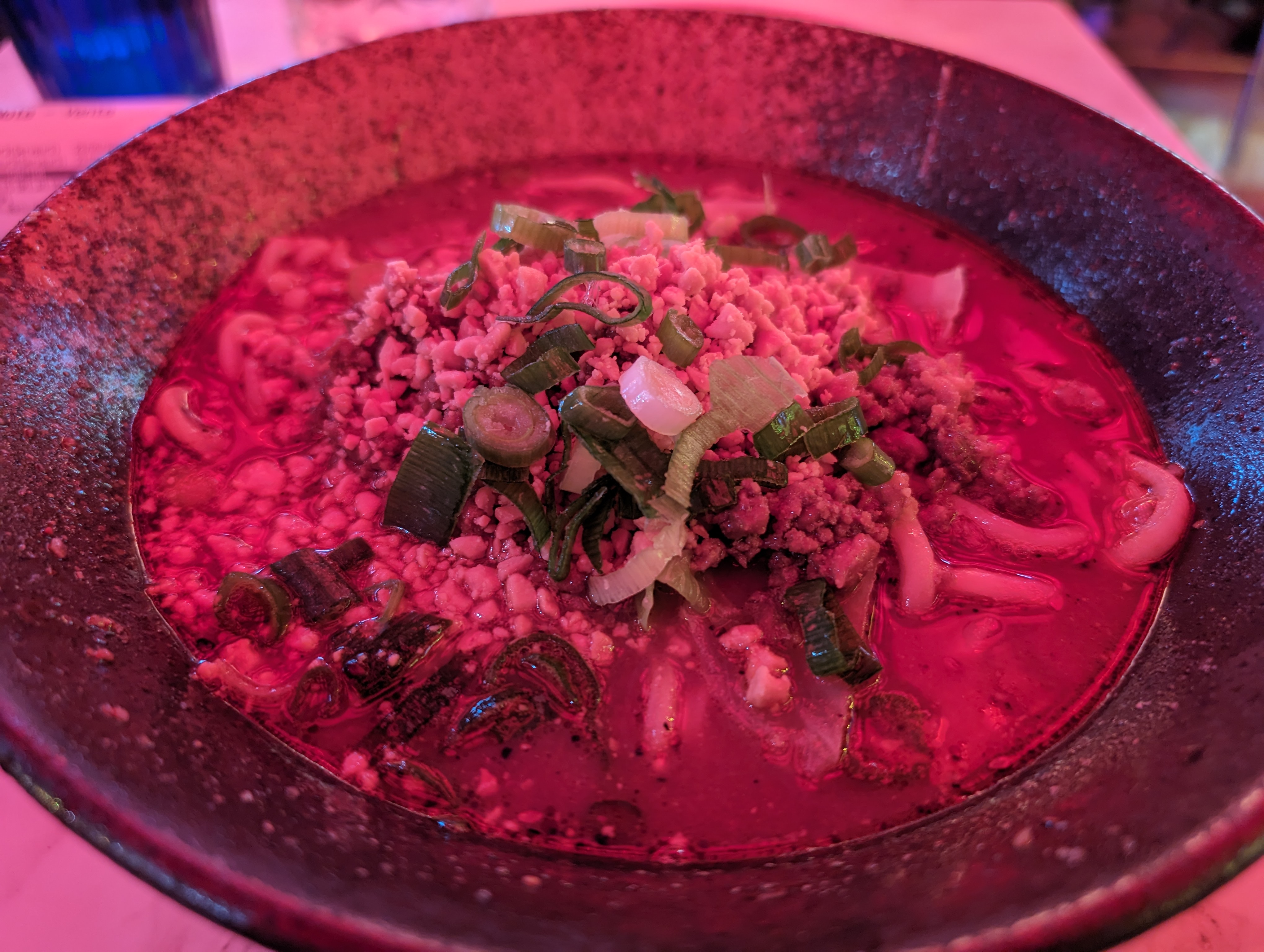 C’était presque excellent. Pour les nouilles en elles mêmes j’en ai goûté des meilleures en termes de goût et texture, mais au niveau de la composition du plat c’était une explosion de saveurs en bouche. Peut être petit bémol sur le poulet qui était un peu sec et fade, heureusement que la sauce est la pour relever le tout. J’ai pris à emporter et le service était assez rapide. Si j’avais pu j’aurai clairement mangé sur place au vu de l’atmosphère qui se dégage.