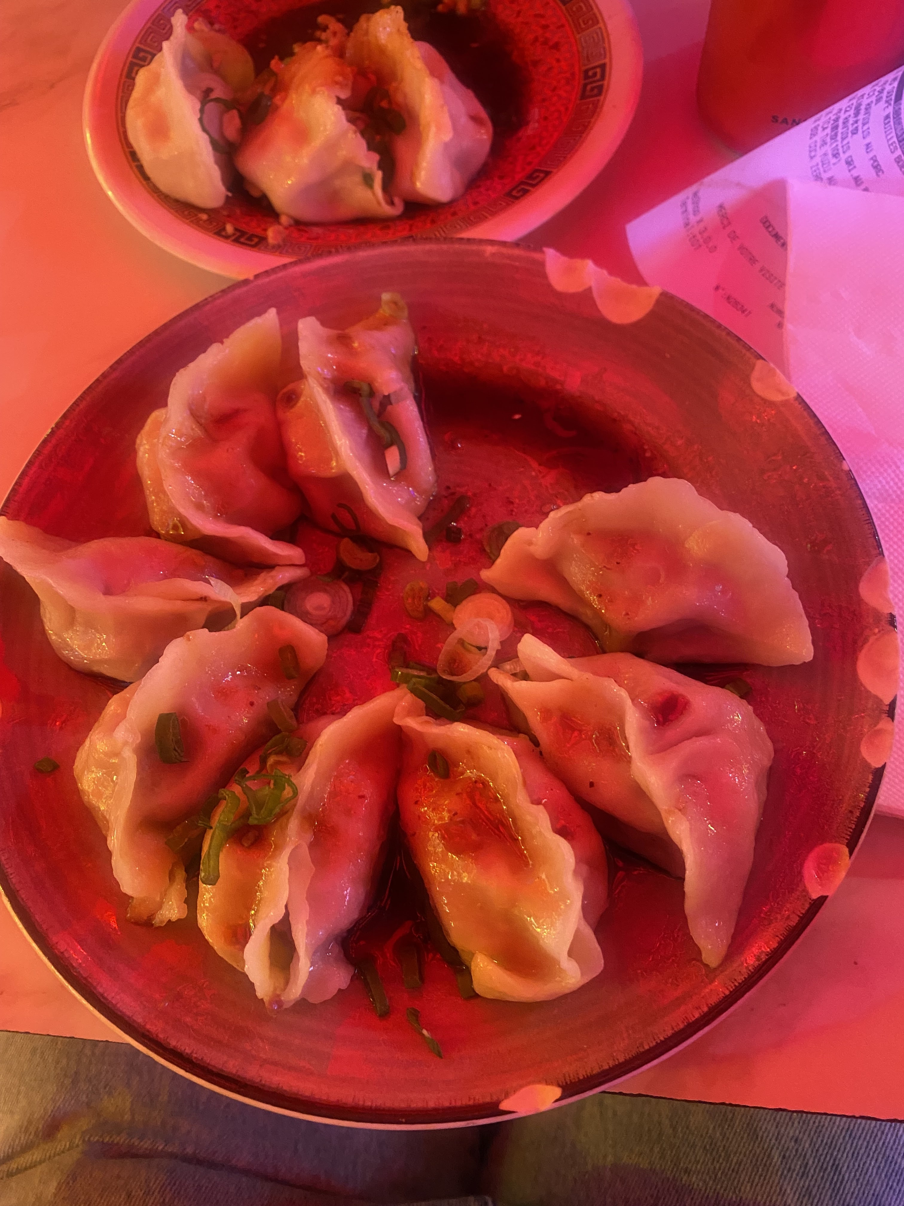 L’endroit est sympa. En rentrant, on ne s’attend pas à voir un restaurant aussi grand et décoré pour faire voyager en chine. Les gyozas était bons mais j’ai moins apprécié mon plat. J’avais opté pour la soupe de vericelles miangyang. Peut-être le choix du bouillon végétarien? Pas mauvais, mais pas incroyable. Ce qui m’a le plus dérangée c’est que nous étions deux et que nous avons toutes les deux eu mal au ventre ce soir là…