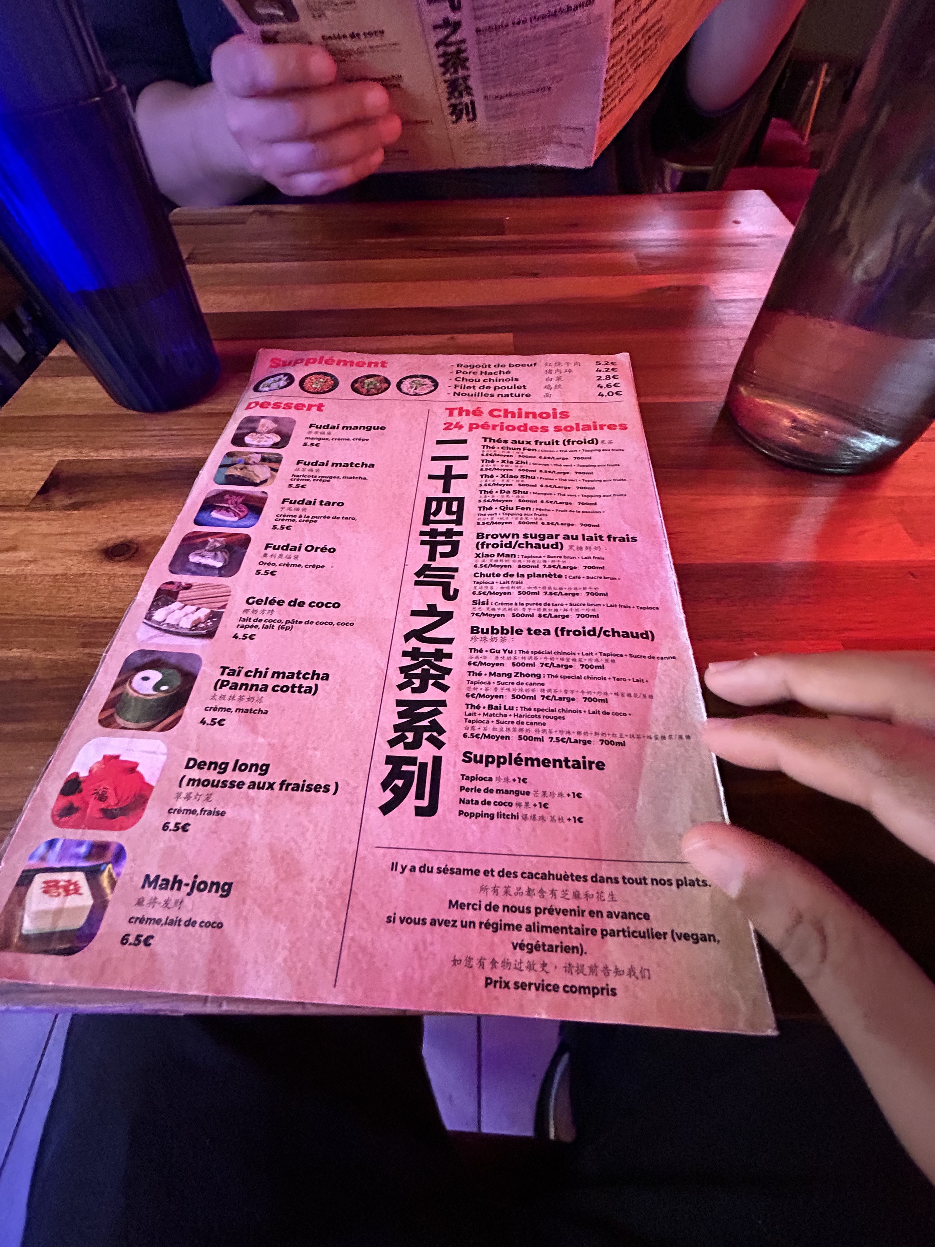 C’était ma première fois à paris et j’ai été conquise par l’ambiance de ce restaurant sous forme de marché chinois !! Je recommande a 100% Serveur au top et caissière très aimable