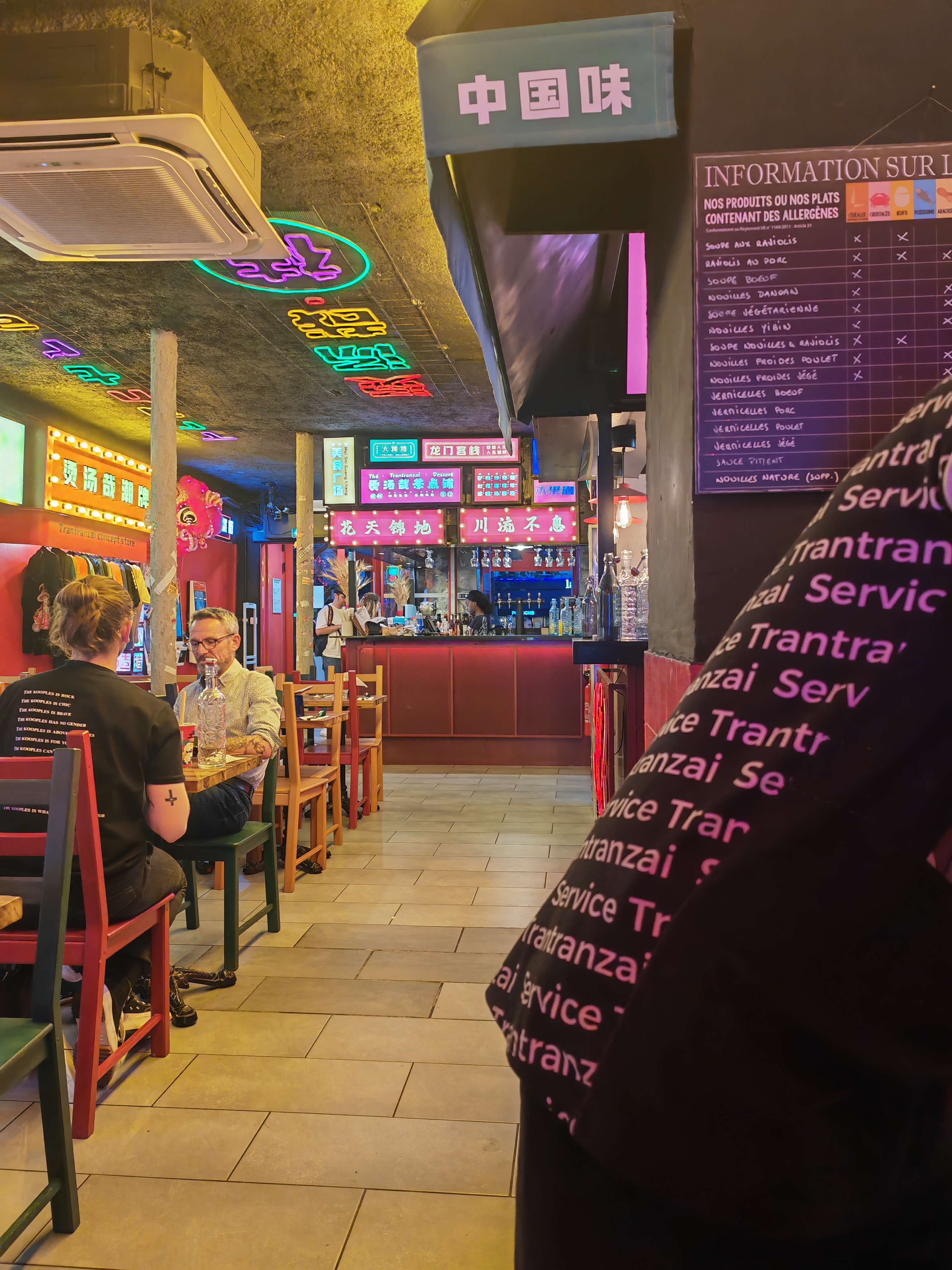 Trantranzai Montparnasse est encore à son début. L'expérience n'est pas encore bien fluide de l'entrée à la sortie du restaurant. Il y a beaucoup de tables et peu de staffs. Tout le monde fait ce qu'il peut et cela peut amener un certain temps d'attente. Les plats sont bons et copieux. Si c'est la 1ère fois, il vaut mieux prendre moins pimenté et demander de la sauce pimentée que vous pouvez ajouter à votre plat. Je trouve que les nouilles sont un peu trop épaisses mais c'est subjectif. La déco est vraiment sympa. Colorée, lumineuse, elle nous met dans une ambiance streetfood en Chine. Il y a encore des améliorations à apporter pour que ce soit plus fluide mais je recommande tout de même !