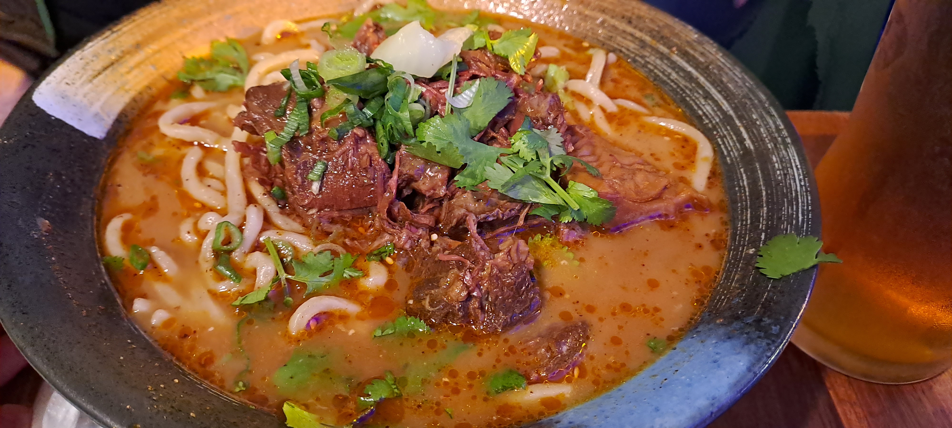 J'ai adoré !! La bière chinoise IPA est pas mal du tout. Très rafraîchissante. Le plat de nouilles au bœuf s'est révélé excellent avec beaucoup de bœuf très tendre et des nouilles assez fermes. Le bouillon était très bon.