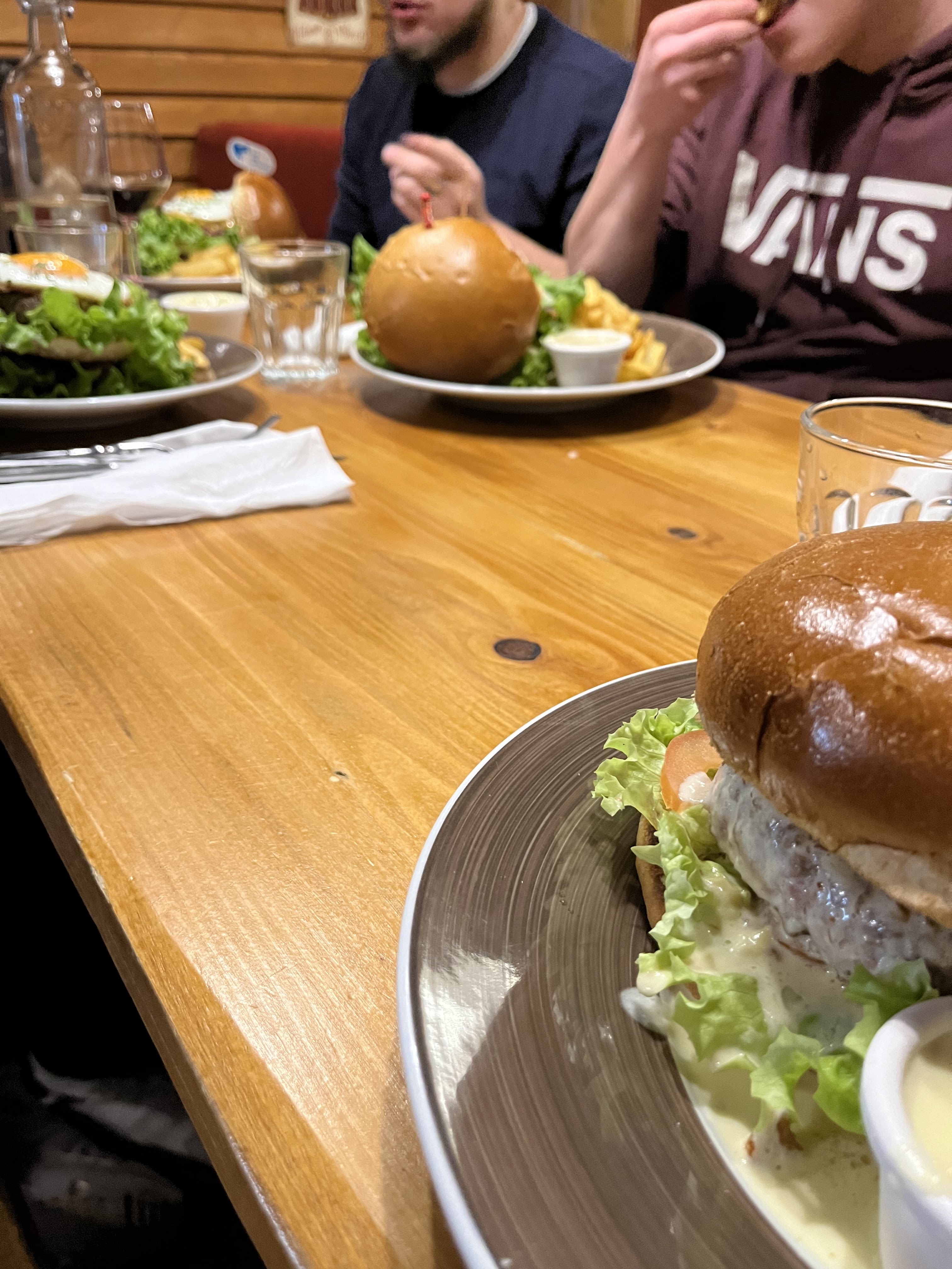 Sympa mais pas mémorable... Le choix des burgers est vaste, le cadre est sympa dans un style « chalet ». Les burgers, les fajitas et les desserts ne sont pas mauvais mais pas mémorables du tout, il manque « le truc en plus » qui vous fait revenir dans un restaurant. Les serveurs sont un peu tête en l’air, besoin de redemander plusieurs fois les choses... Pensez à réserver car c’est petit et la plupart du temps plein!