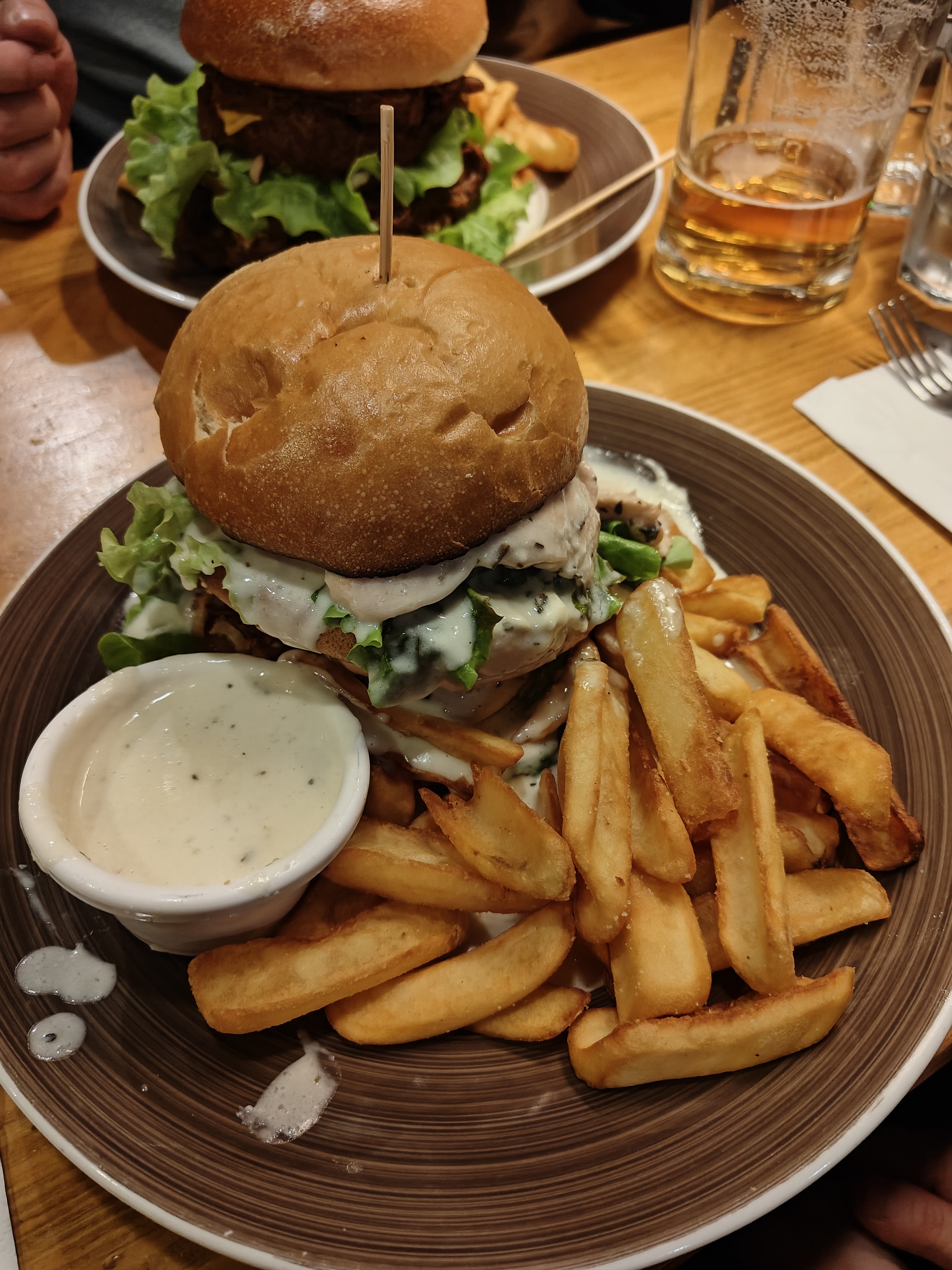 Lieux chaleureux ou ont se sent bien, burger très copieux et bon mise à part le steak qui pour moi n'a pas forcément de goût, c'est dommage.. service bien