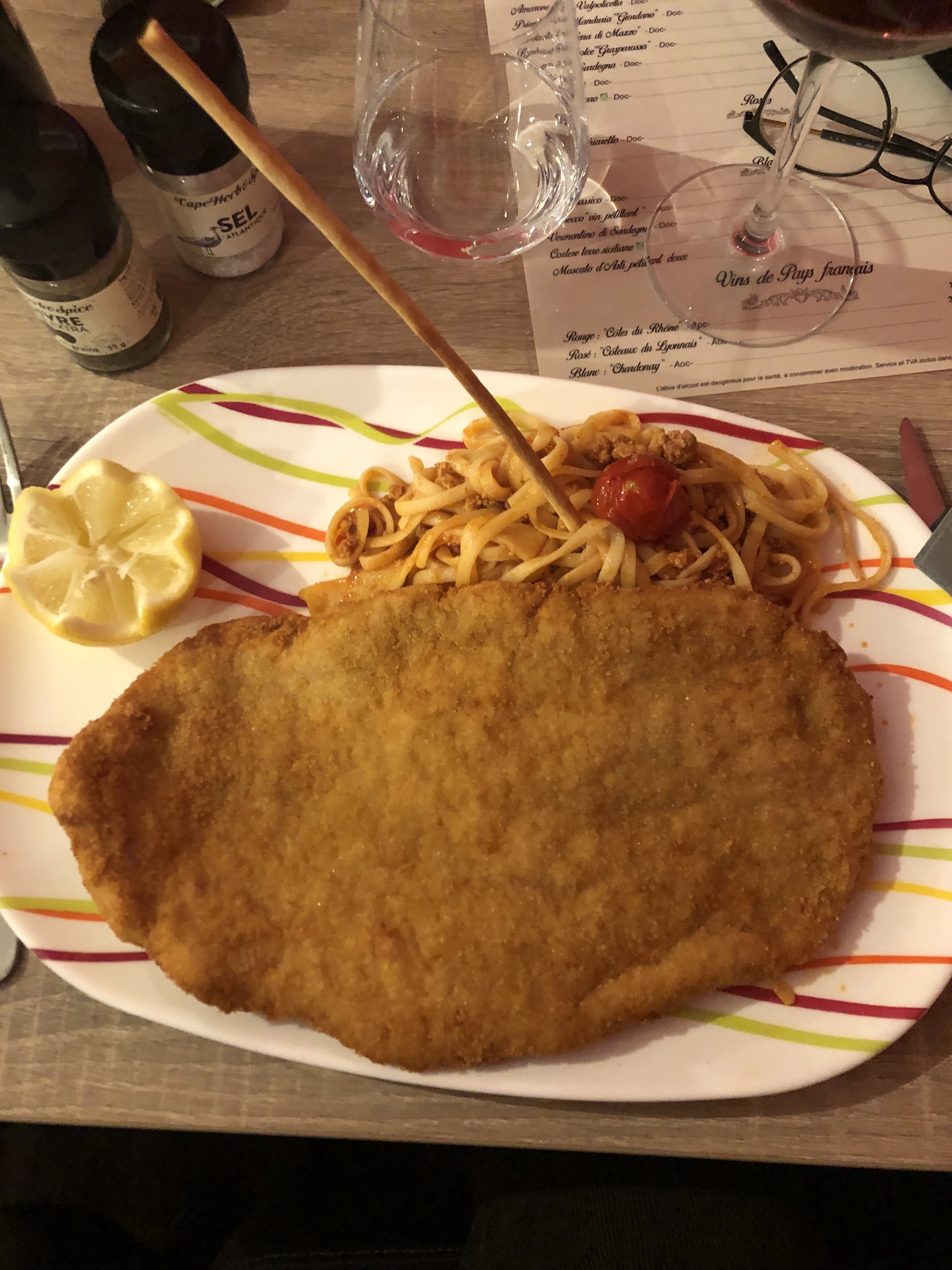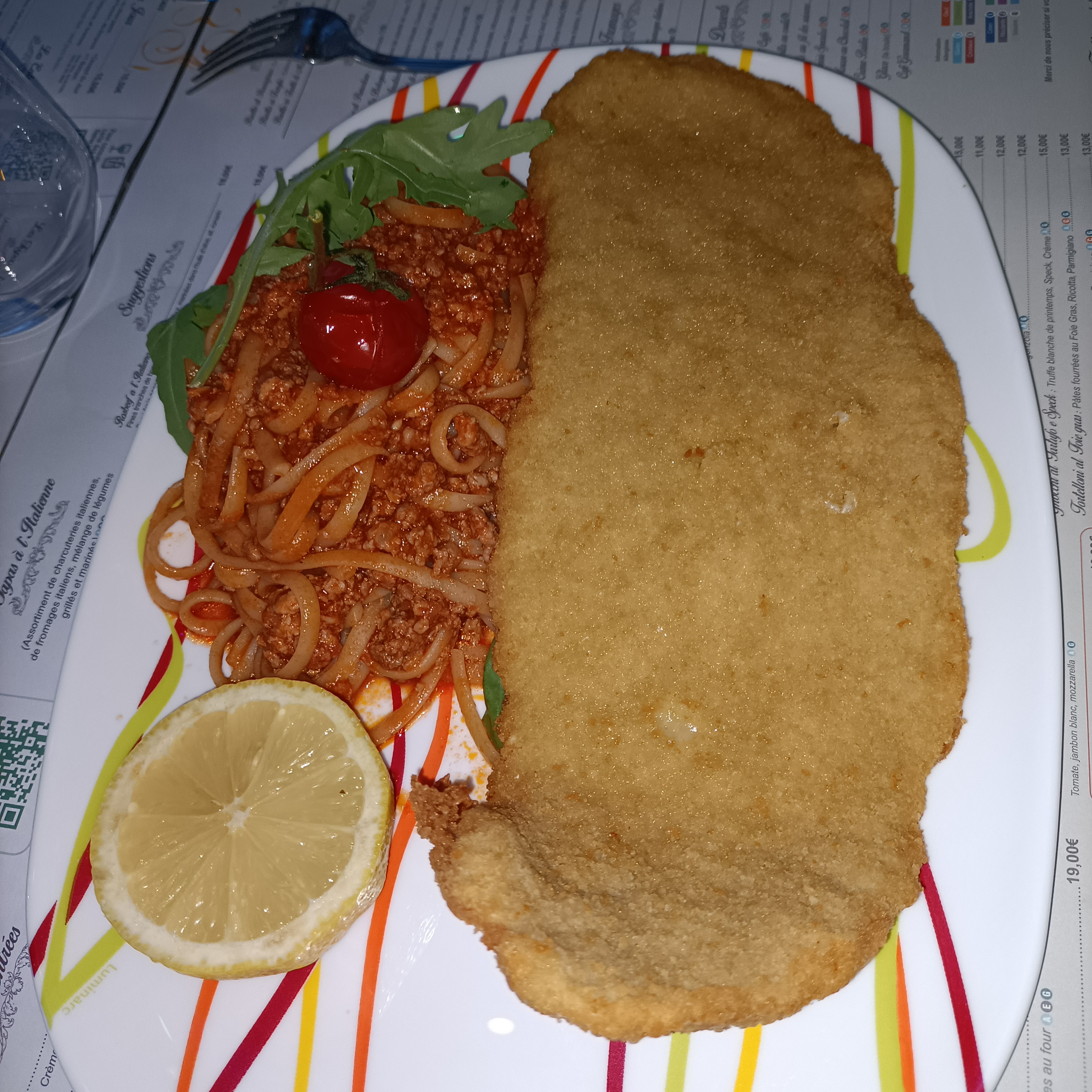 L'escalope est énorme, et c'est ce qui est excellent. (pour gros mangeur) le Service n'est pas en reste, serveuse et serveur gentil et polis ! Que dire des tiramisus... Juste très bon. Je recommande.