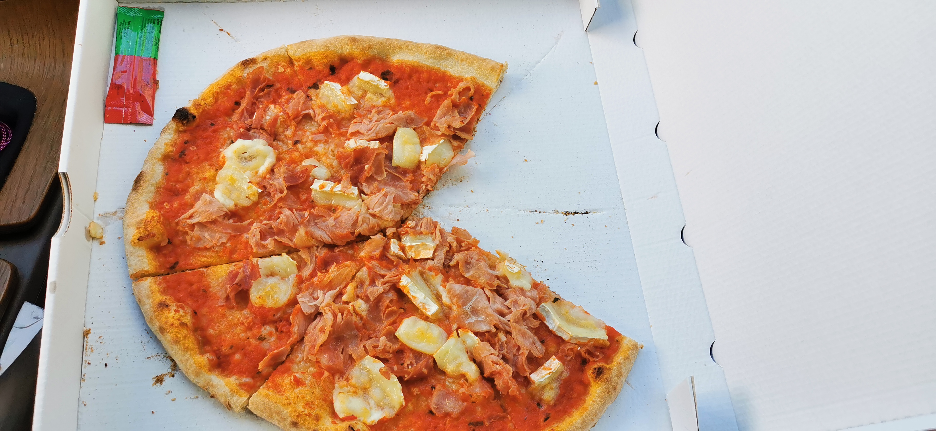 La pâte est bonne et croustillante mais c'est tout. Le jambon n'est pas bon, Charcuterie au goût industriel, et sauce tomate basique et insipide En bref rien de transportant !!