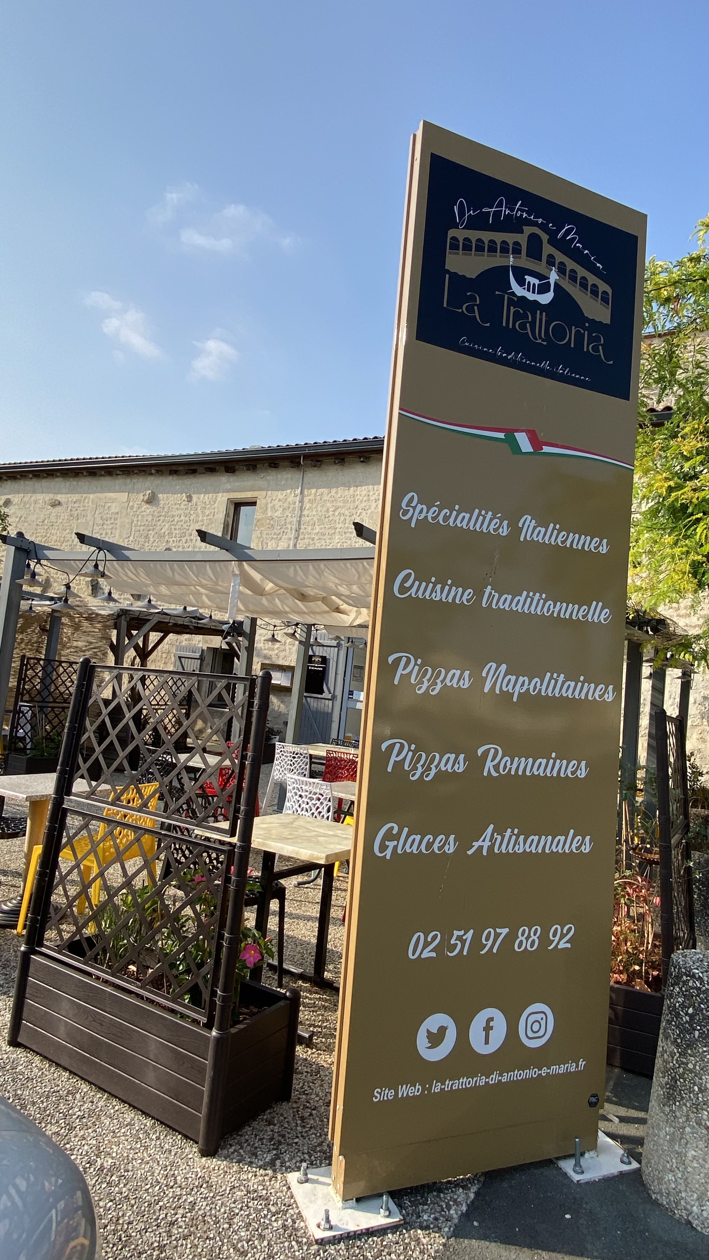 Voici toutes les informations sur le Restaurant TRATTORIA DI ANTONIO È MARIA qui ce trouve au 1 Pl. de la Clairaye, 85400 Luçon (85). Sur cette fiche vous trouverez les photos, l'adresse, les horaires d'ouverture, le numero de téléphone et les avis clients.Vous pouvez églement rédiger un avis si vous le souhaitez en bas de page.