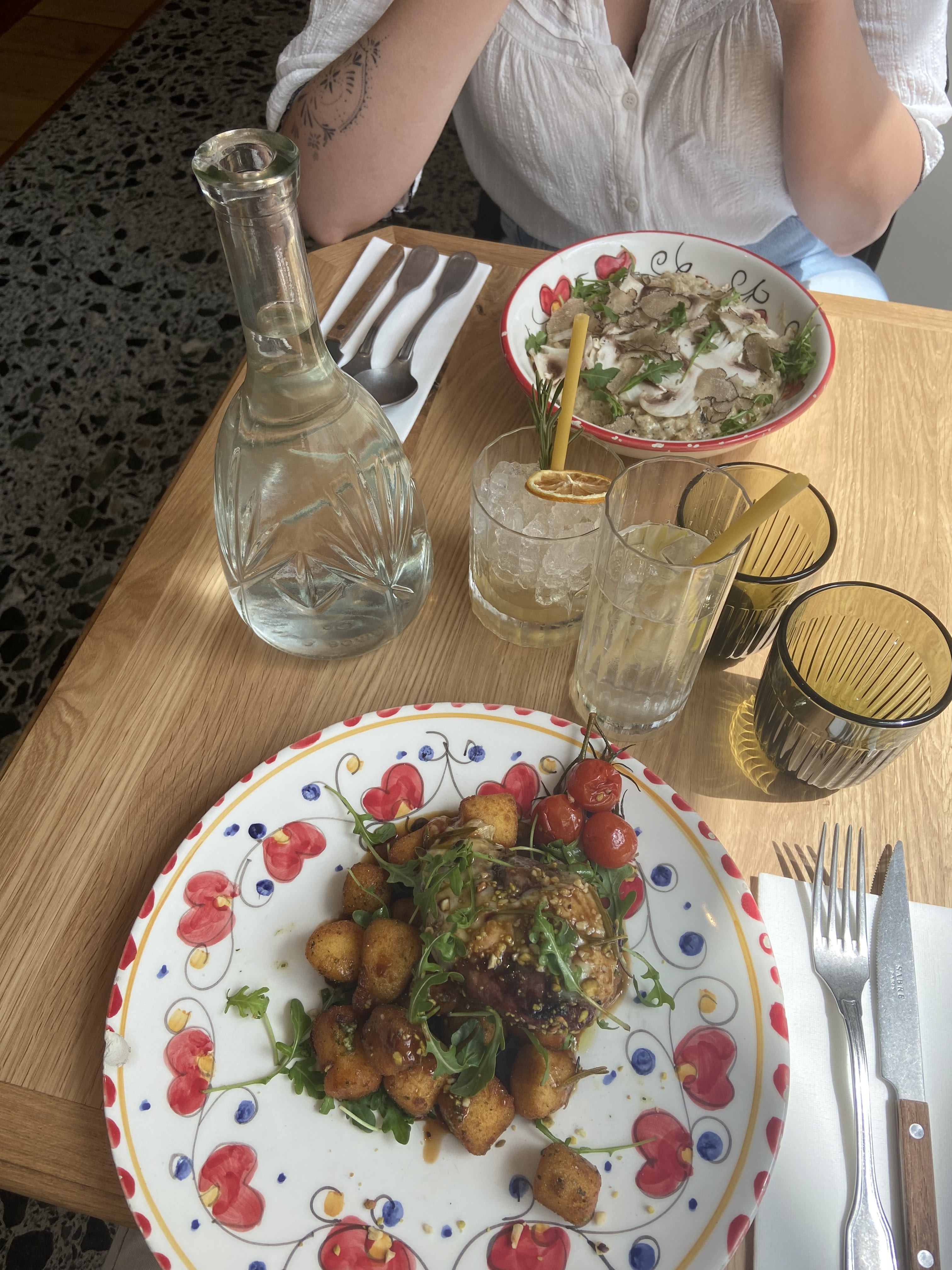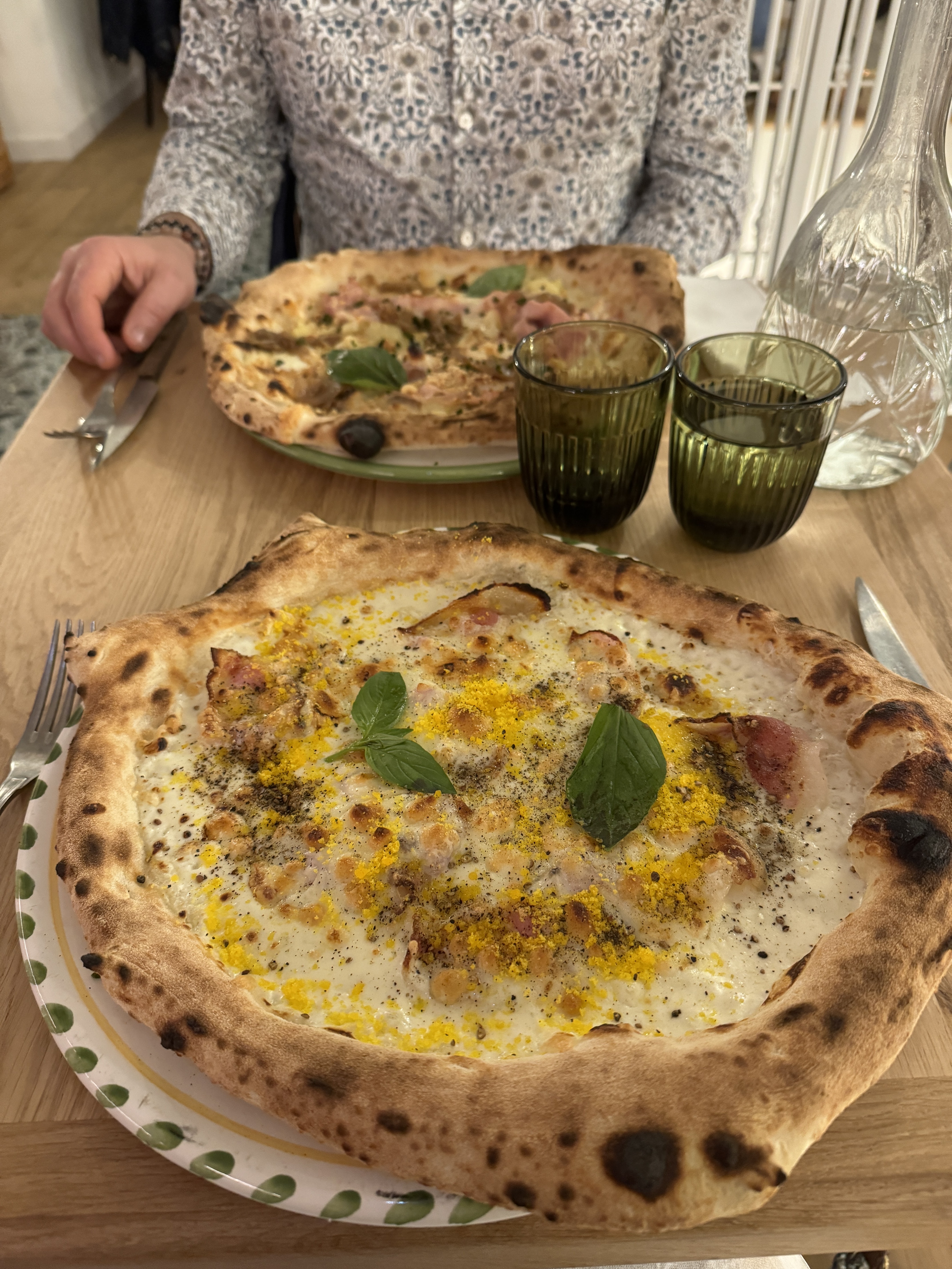 Décor vraiment sympa, service impeccable et chaleureux, cuisine au top (et qui ne propose pas uniquement des pizzas ! Mention particulière pour le risotto.....un délice !) non seulement le cadre est magnifique mais la cuisine et les cocktails sont à la hauteur. Une seule petite suggestion : il serait judicieux d'indiquer sur la carte si les plats sont végétariens ou non :-)