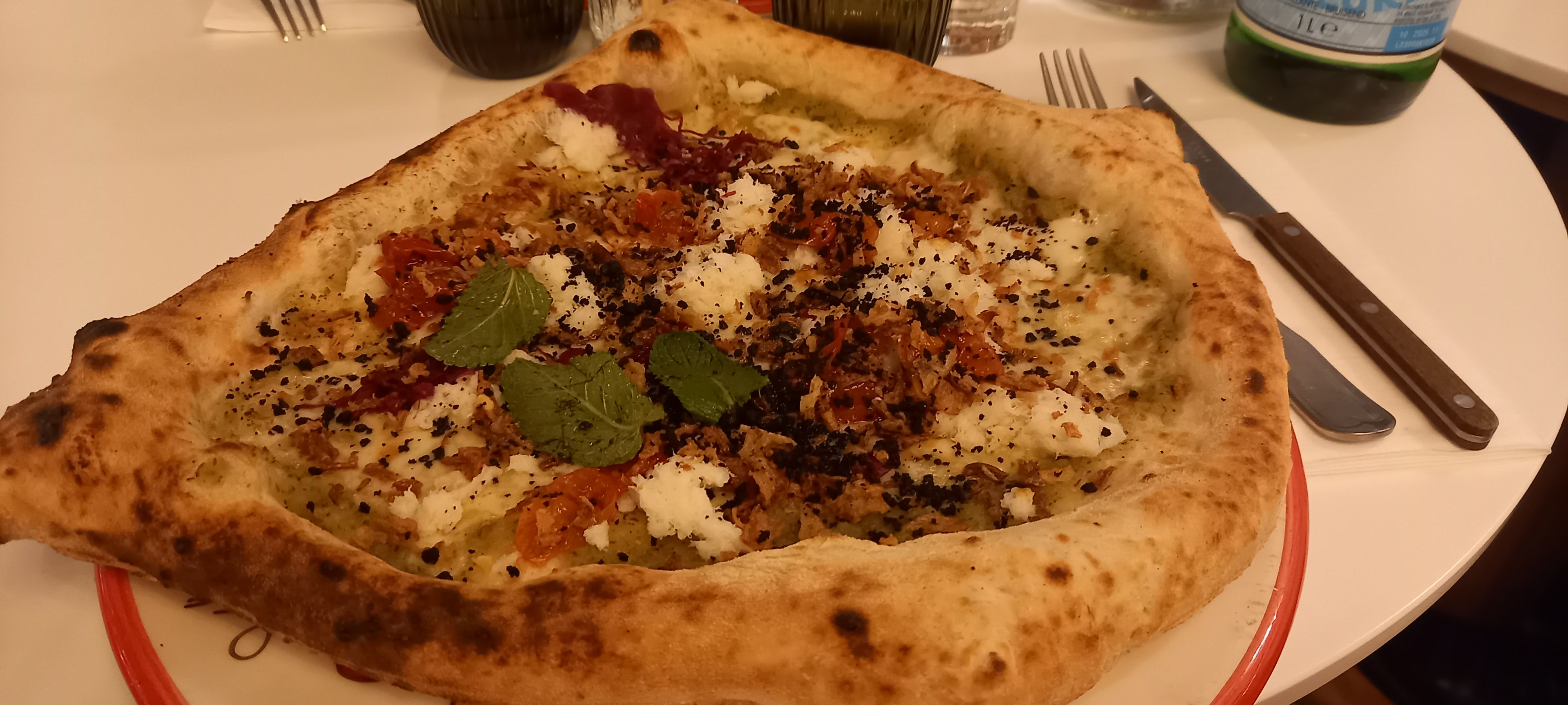 Très bel endroit, le dépaysement y est total. Lavdie a su nous conseiller sur les accords de vins à la perfection. Pour ma part je recommande cette incroyable pizza aux truffes. Bémol sur le bar, les cocktails manquent d'équilibre et contiennent trop de glaçons (le rapport qualité prix n'y est vraiment pas) récurrence sur 3 dîners...