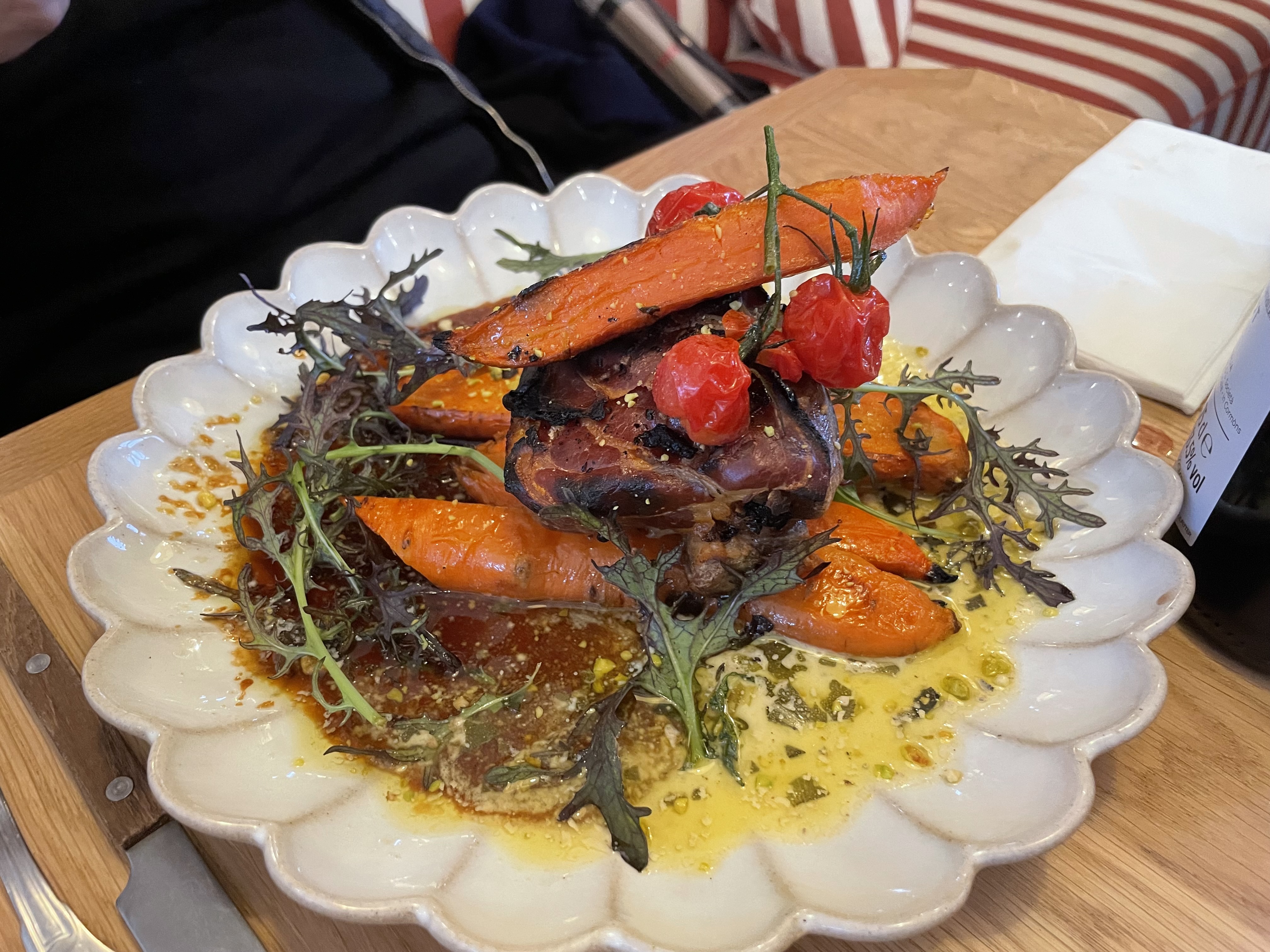 Hier ,déjeuner avec une amie ,à l'étage du restaurant .Le cadre est magnifique et très aéré . La petite serveuse Léa a de l'humour mais elle est très efficace .Elle conseille très bien ,elle très agréable..Le repas est délicieux et le vin au verre aussi. Les gnocchis ,copieux et excellent .la viande porc bien dorée avec des carottes rôties et une sauce tellement bonne . Le dessert est un excellente pavlova aux fruits rouges . Je n'ai qu'une envie ,c'est d'y revenir .