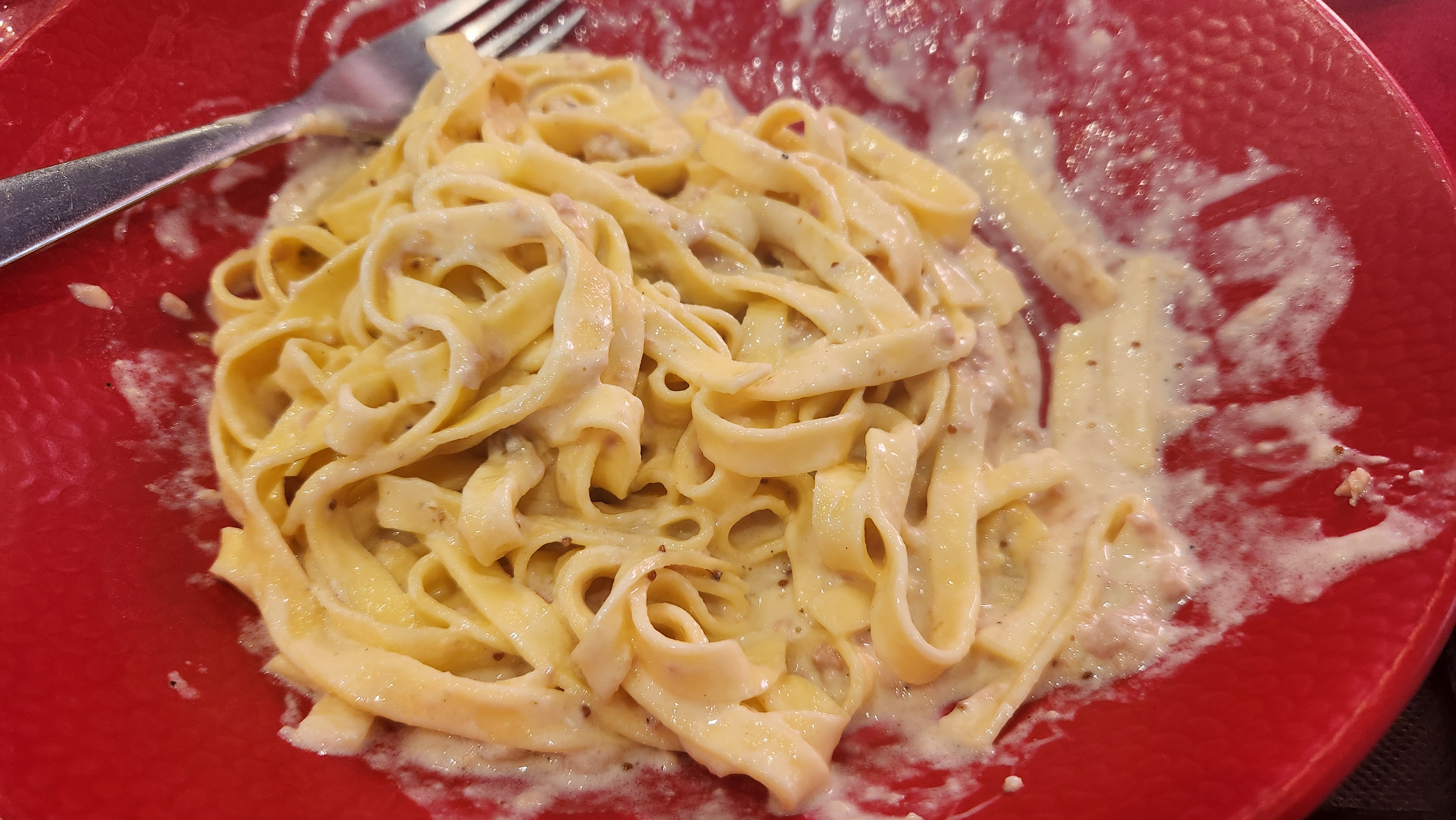 Endroit sympa et surtout ouvert quand les autres ne le sont pas. Nous avons pris des pâtes : Tagliatelles à la sauce Parmesan, qui était bonne et des tortellinis au bœuf et à la sauce Parmesan également. Celles-ci étaient bonne même si on avait l'impression qu'elles n'avait pas été faites maison, elle étaient toutes identiques et un peu durent pour certaines.