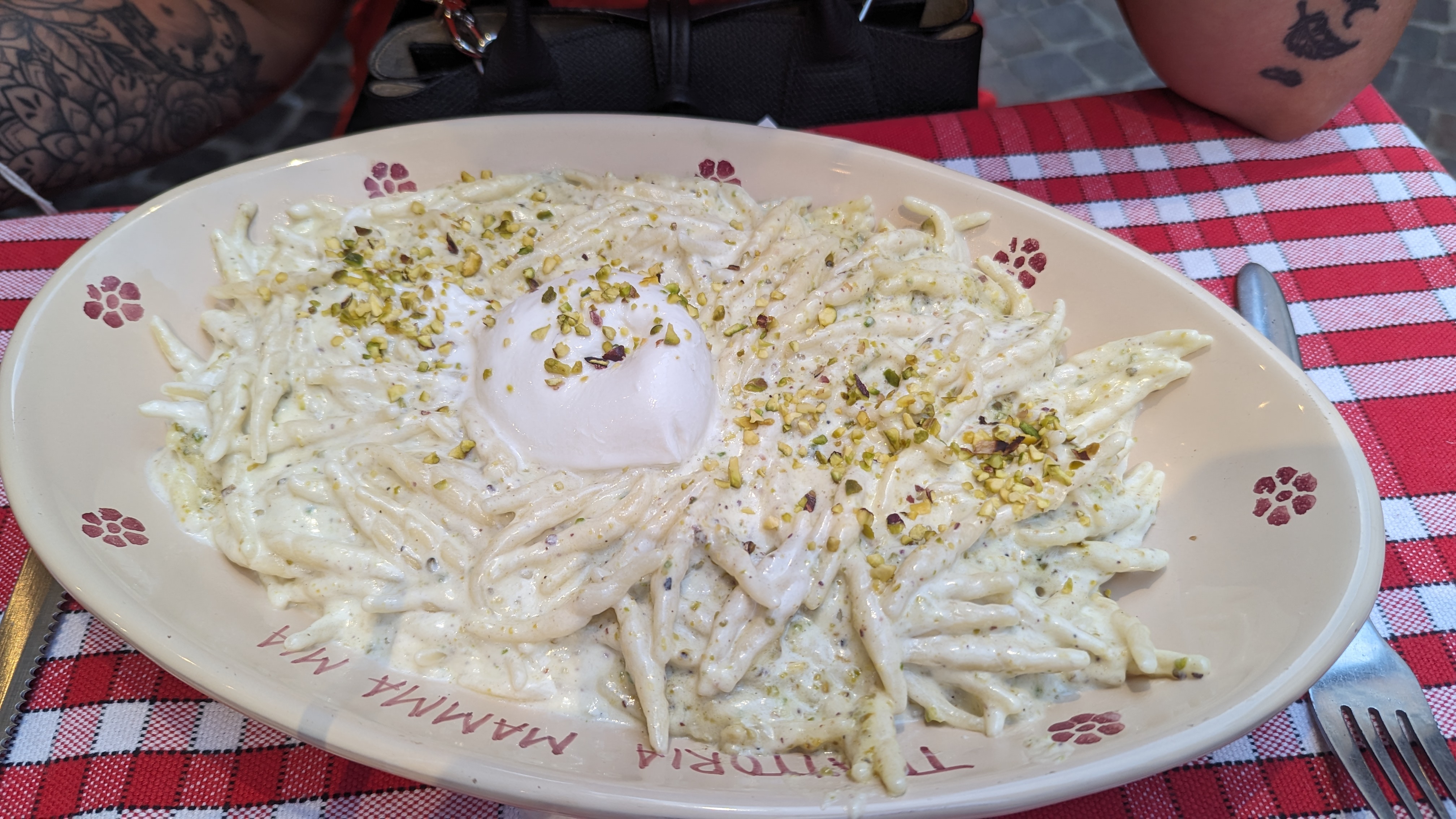Des pates au pesto de pistache succulentes. Le plat est tres copieux un vrai delice ! Le personnel tres tres agreable ! Le mamma mia é bellissimo 🇮🇹