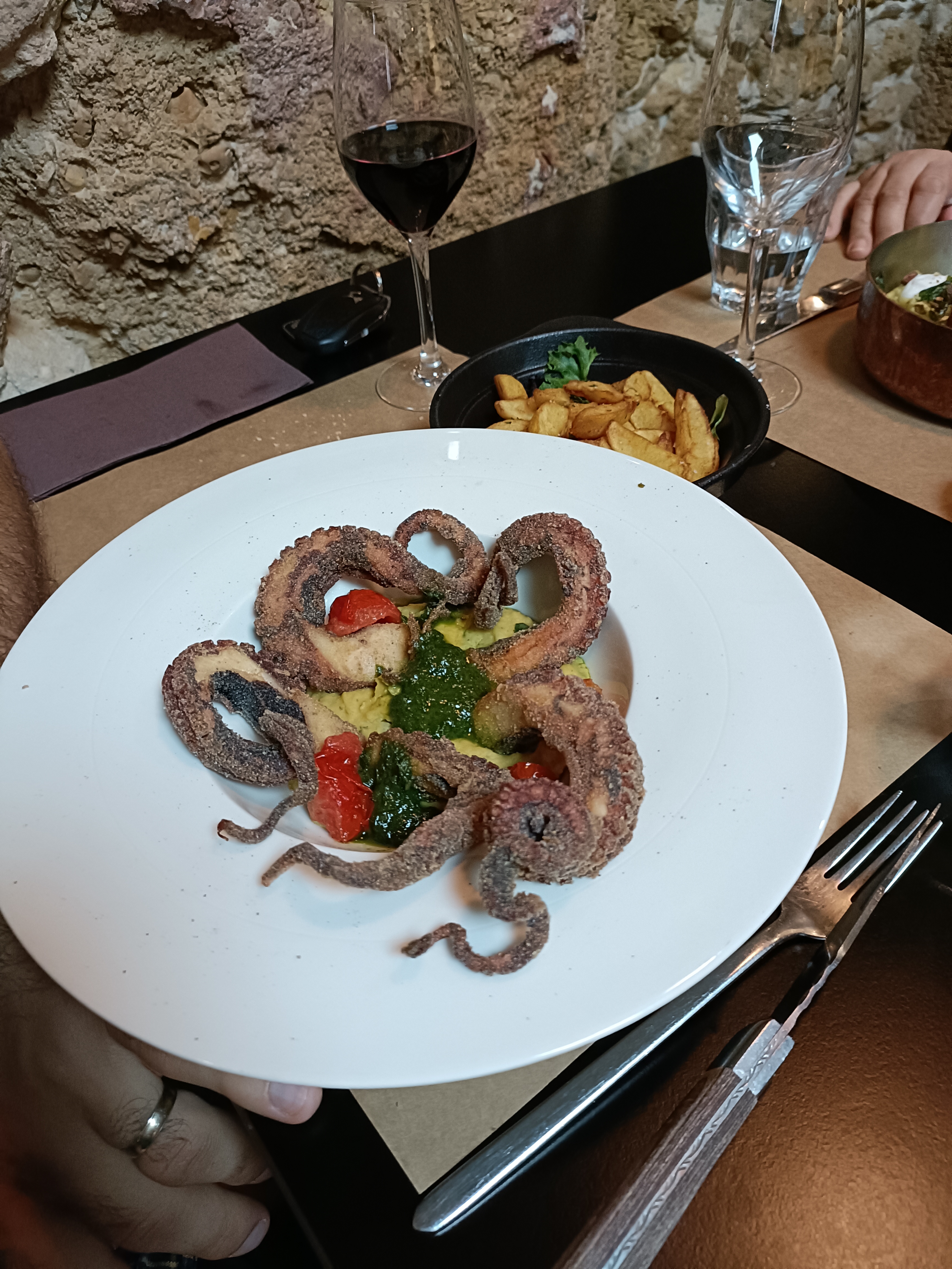 Cadre sympa, personnel aux petits soins , repas excellent. La cuisson du poulpe parfaite, grillé aux extrémités et tendre sur le charnu, C'était mon anniversaire c'est réussi. Merci pour la bougie!