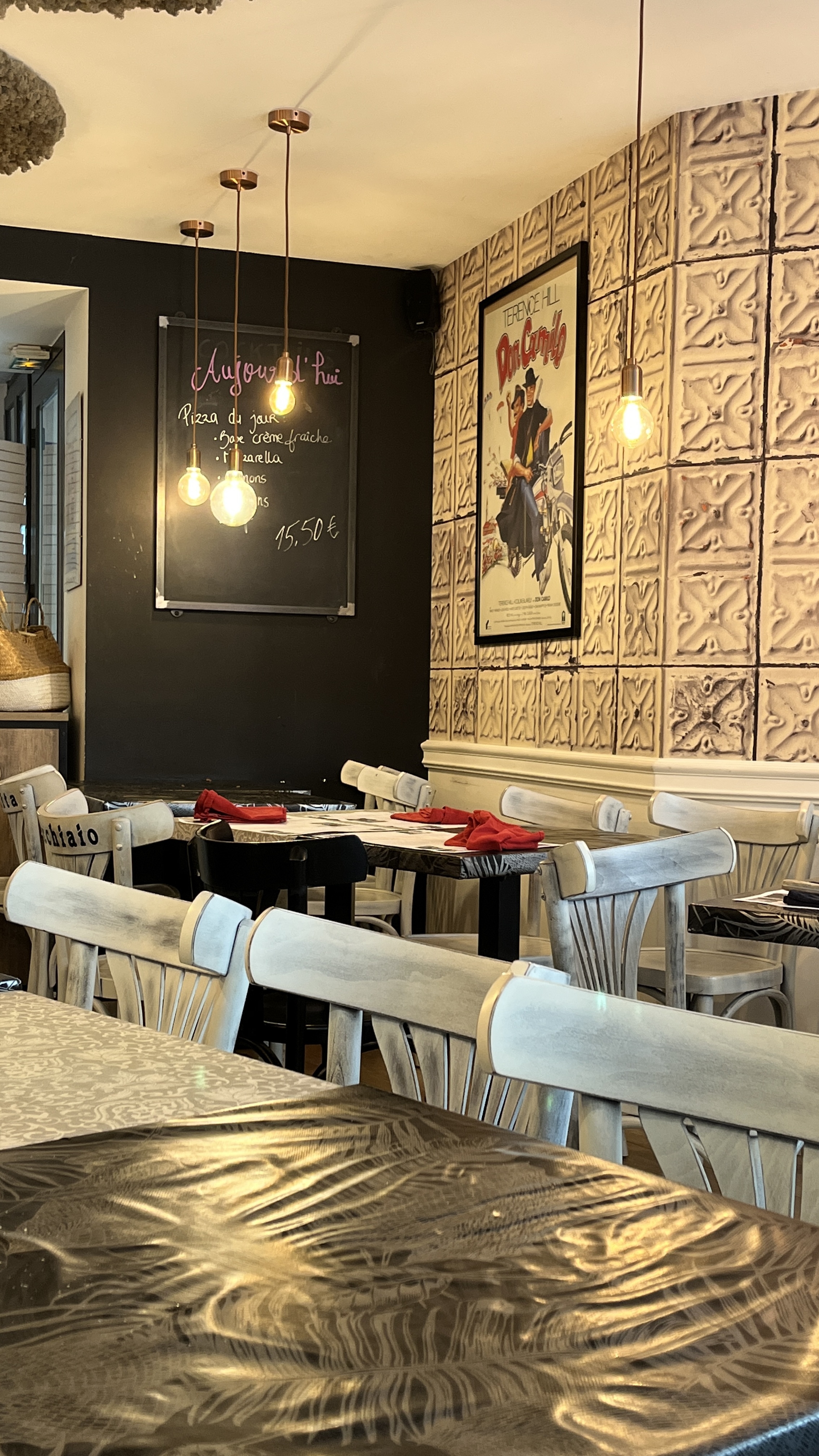 C'est un endroit très sympa, dans un petit passage avec terrasse , Au mur des affiches hes des films Don Camillo , les pizzas sont excellente et généreuses, le personnel souriant , jje recommande