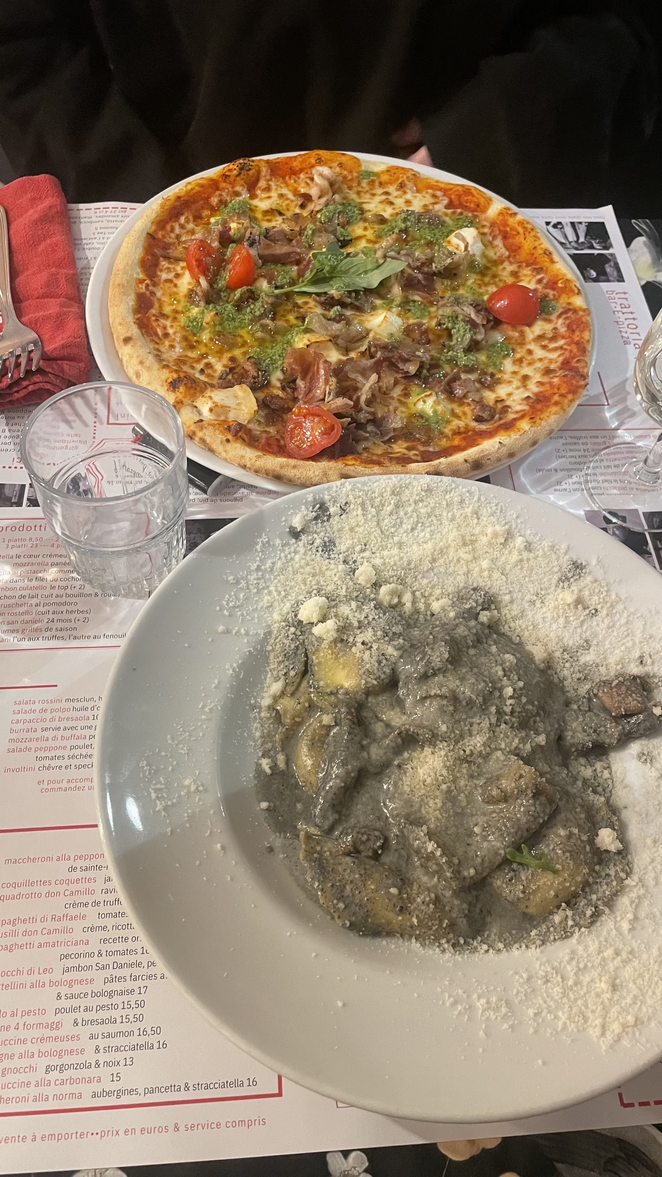 Les plats étaient excellents : pâtes et osso buco, nous reviendrons pour goûter les pizzas, accueil impeccable, réservation en ligne possible