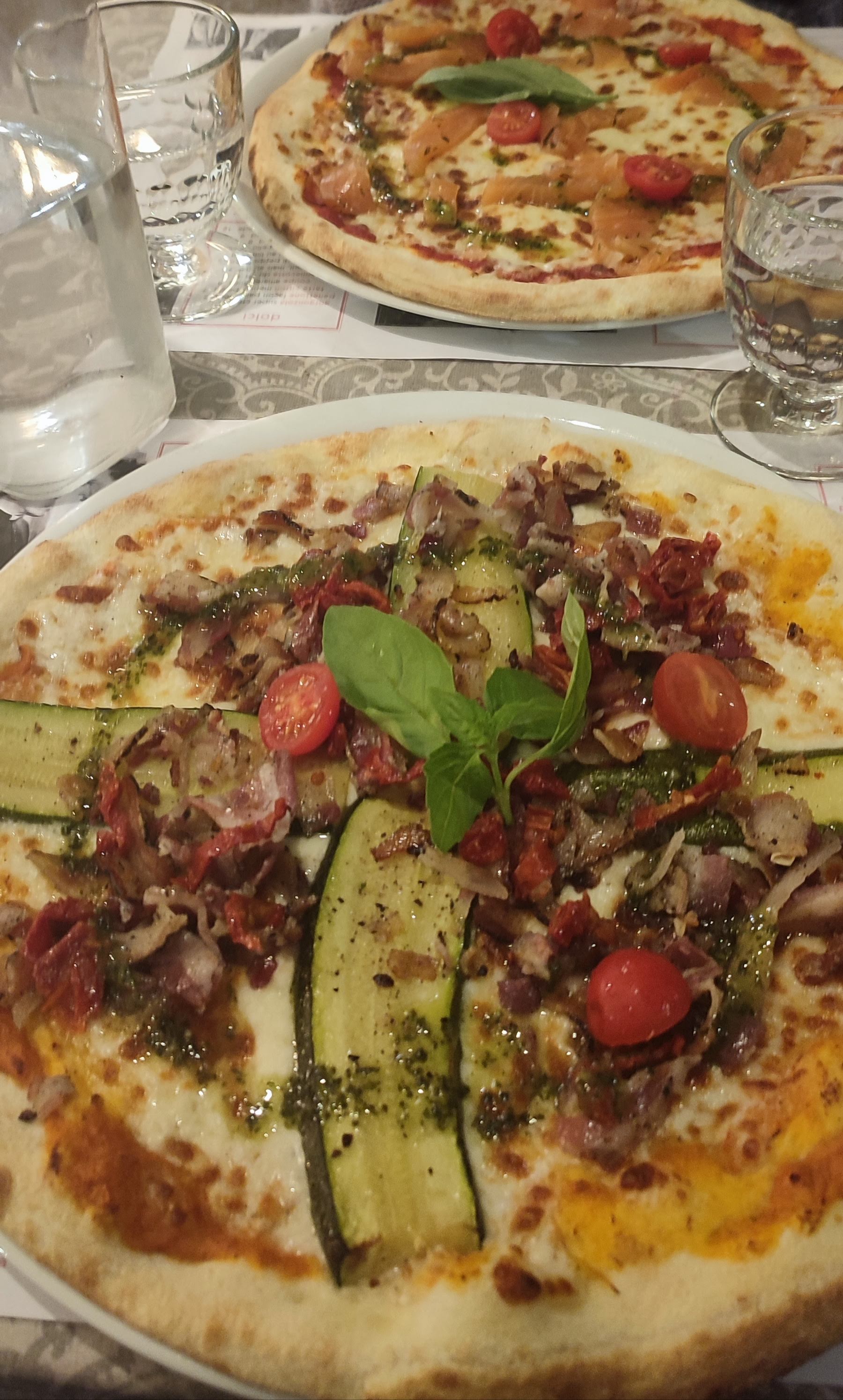 Mis à part : Les tables bancales ; Les serveurs et serveuses perdu.e.s qui laissent des gens attendre debout alors que des tables sont vides, ou servent du pain avec la pizza ; La chantilly sur la mousse au chocolat ; La carte des vins pas à jour ; La bouteille de vin servie finalement en 2 demies bouteille pas à température et sans être débouchées à table ; Les pizzas sont bonnes, Et le fils du patron est sympa.