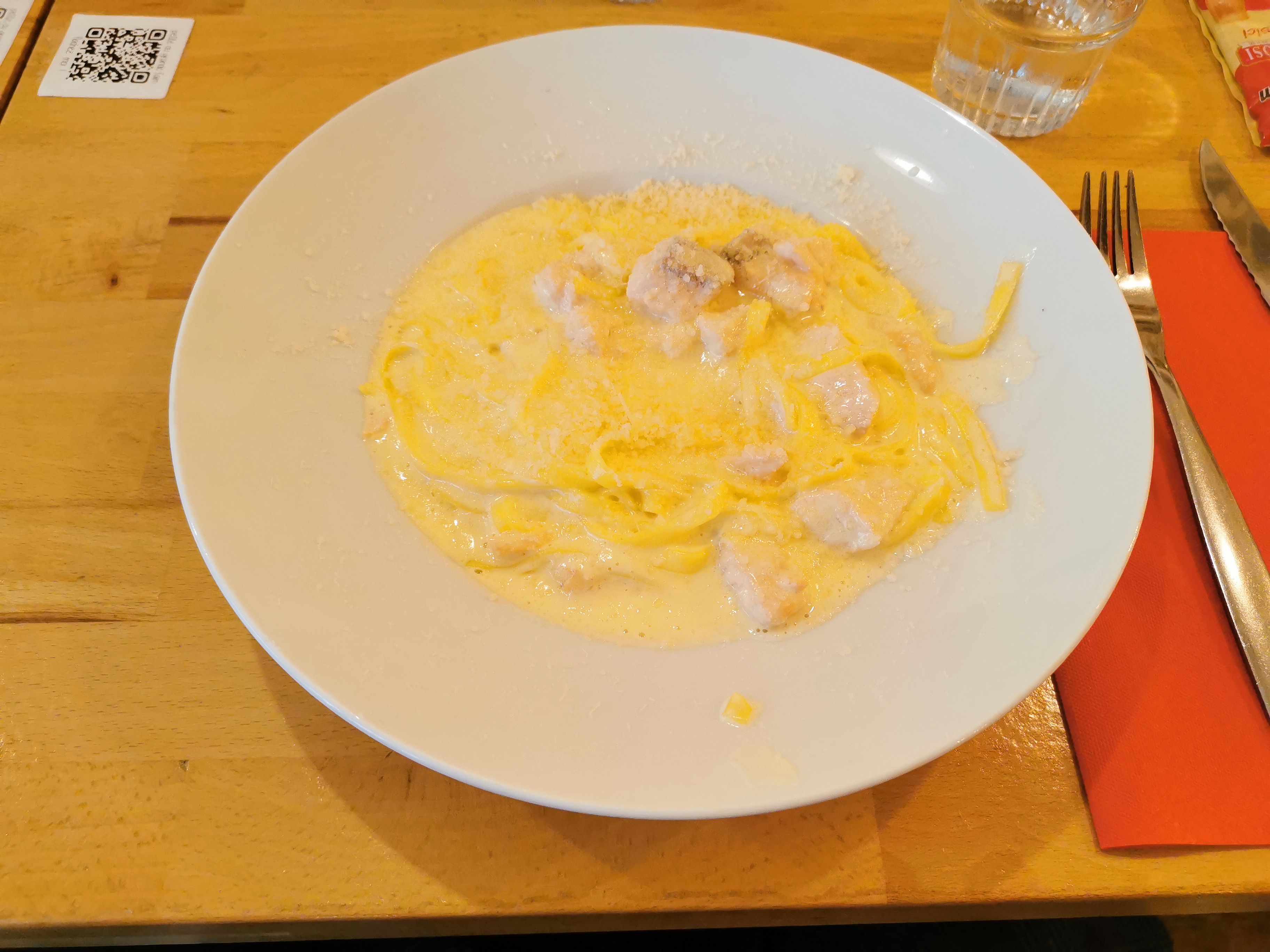 Pizza moyenne: saucisse au fenouil excellente mais pizza bien trop chargée en fromage, dommage ! Ma compagne a trouvé ses pâtes trop cuites. Restaurant bruyant. Accueil un peu sec mais plutôt correct.
