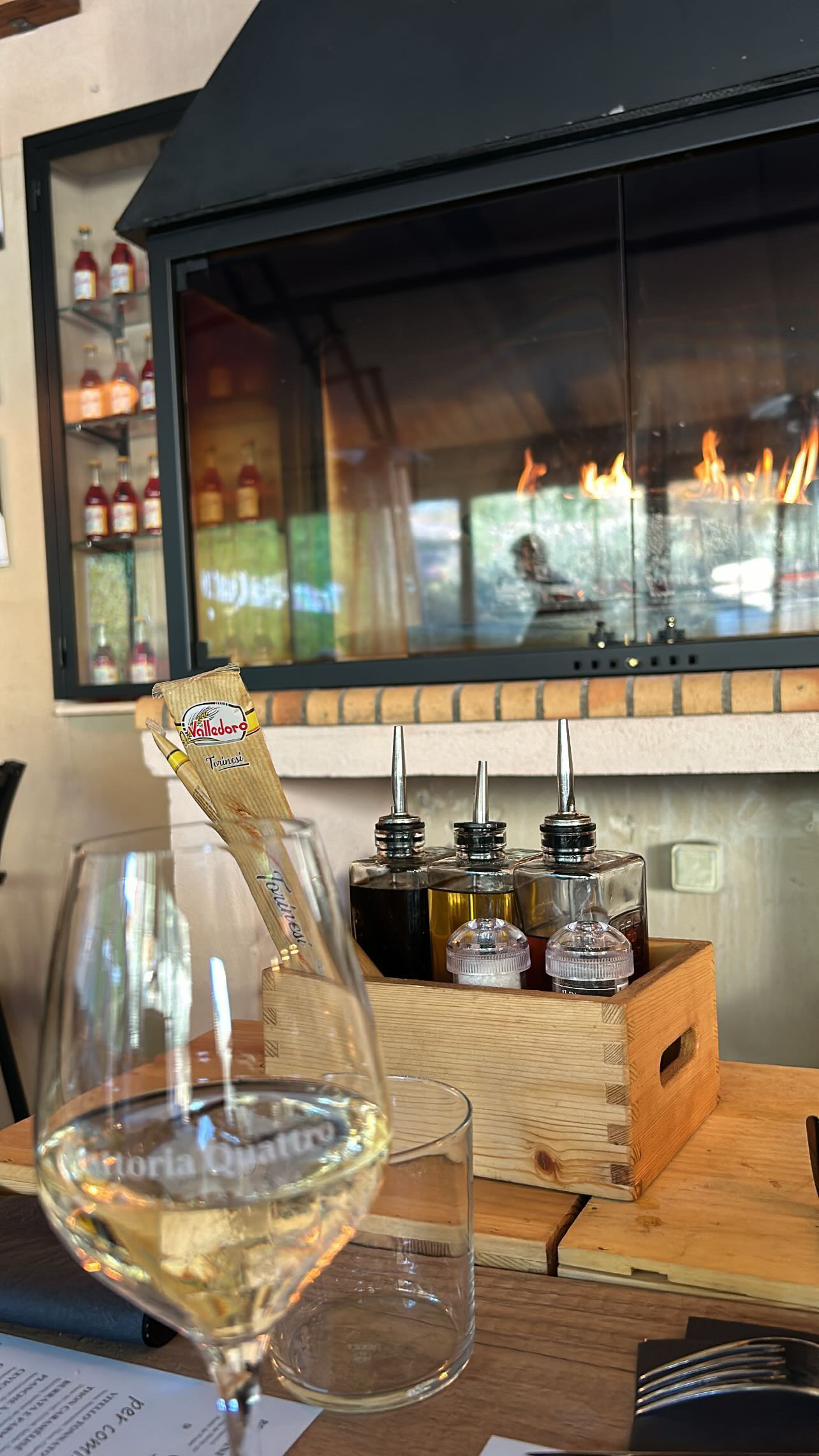 Il manque des cacahuètes, ou autres pour accompagner un cocktail qui est cher! Dommage ! La pizza est belle, mais la pâte trop trop fine... Repas sous la bâche bruyant. Devant la cheminée, c'est top