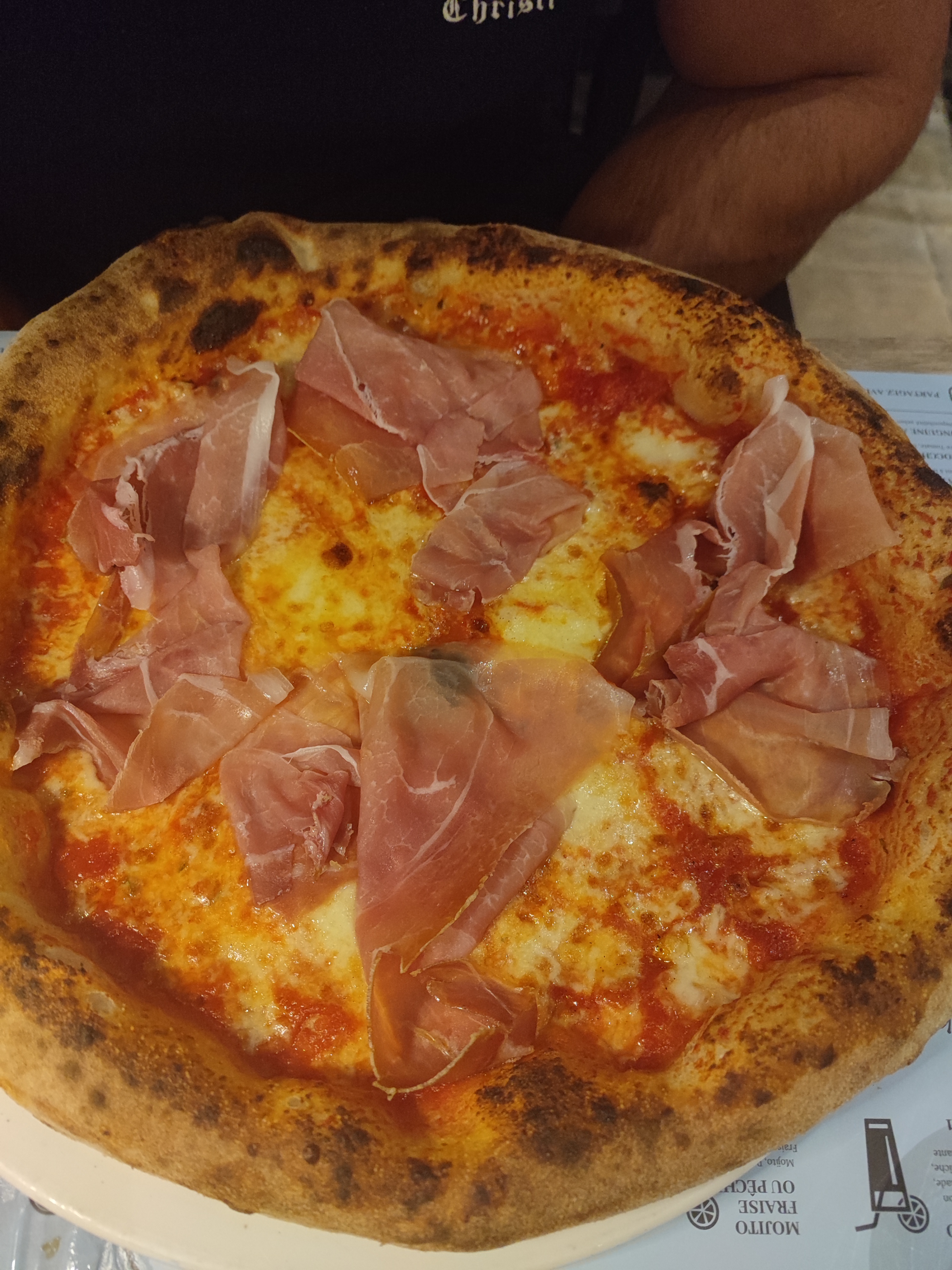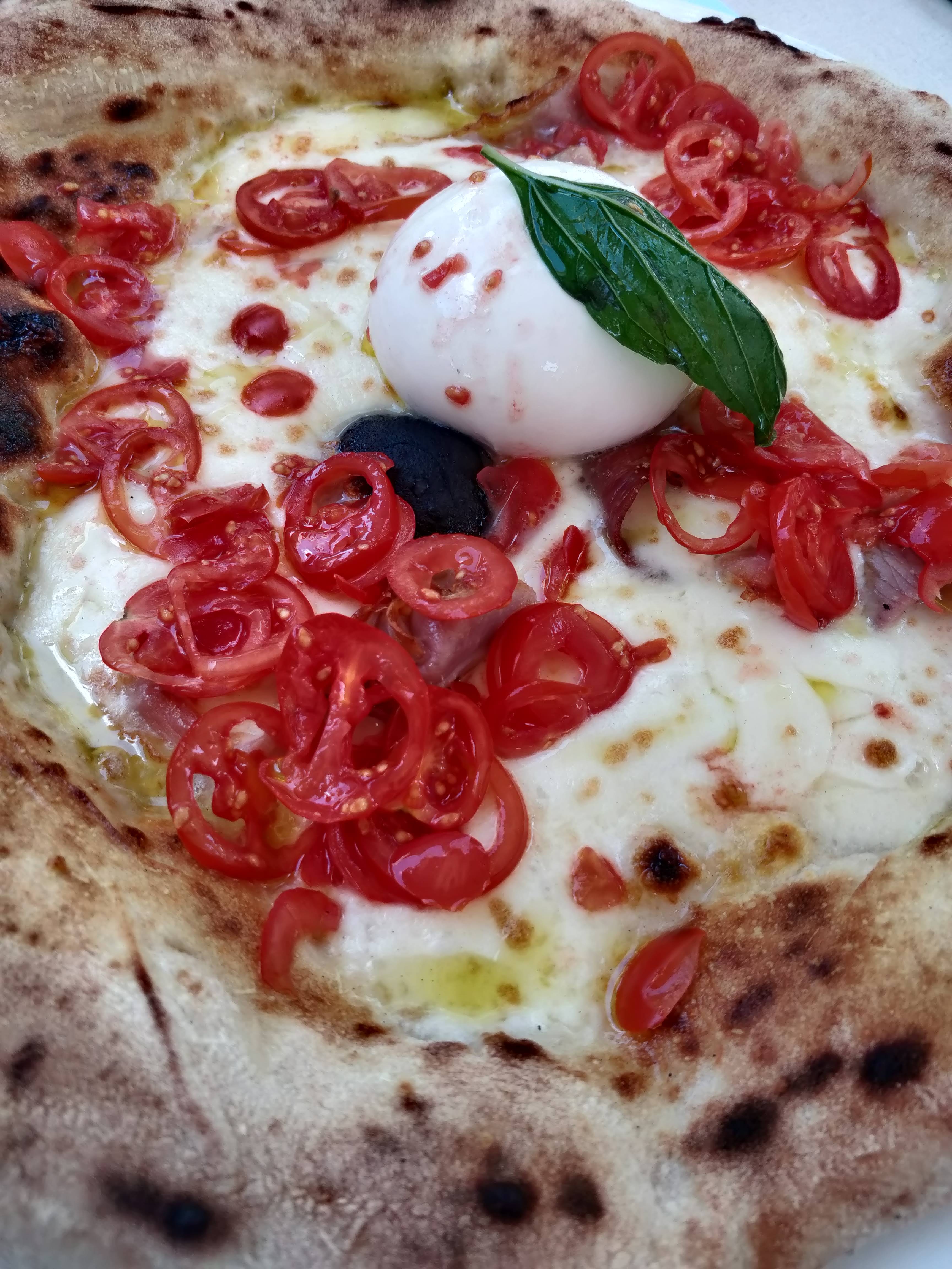 Waouh !!! Pour commencer la terrasse est sublime, à l'ombre des oliviers le dépaysement est complet. Le service est parfait, rapide, efficace et surtout très attentif (ils ont bougés les parasols pour qu'on soit à l'ombre tout au long du repas) Place au repas ... Les pizzas sont EXCELLENTES ! Préparées et cuites sous vos yeux dans la cuisine extérieur,on se retrouve téléporté en Italie ! La pâte est excellente, fine et croustillante. Et les garnitures parfaites, mozzarella, burrata, parma, roquette, tomates cerises ! La pizza est énorme mais on l'a fini volontier ! Je recommande vivement cette pizzeria qui nous transporte en Italie avec des prix très très corrects ! Merci!