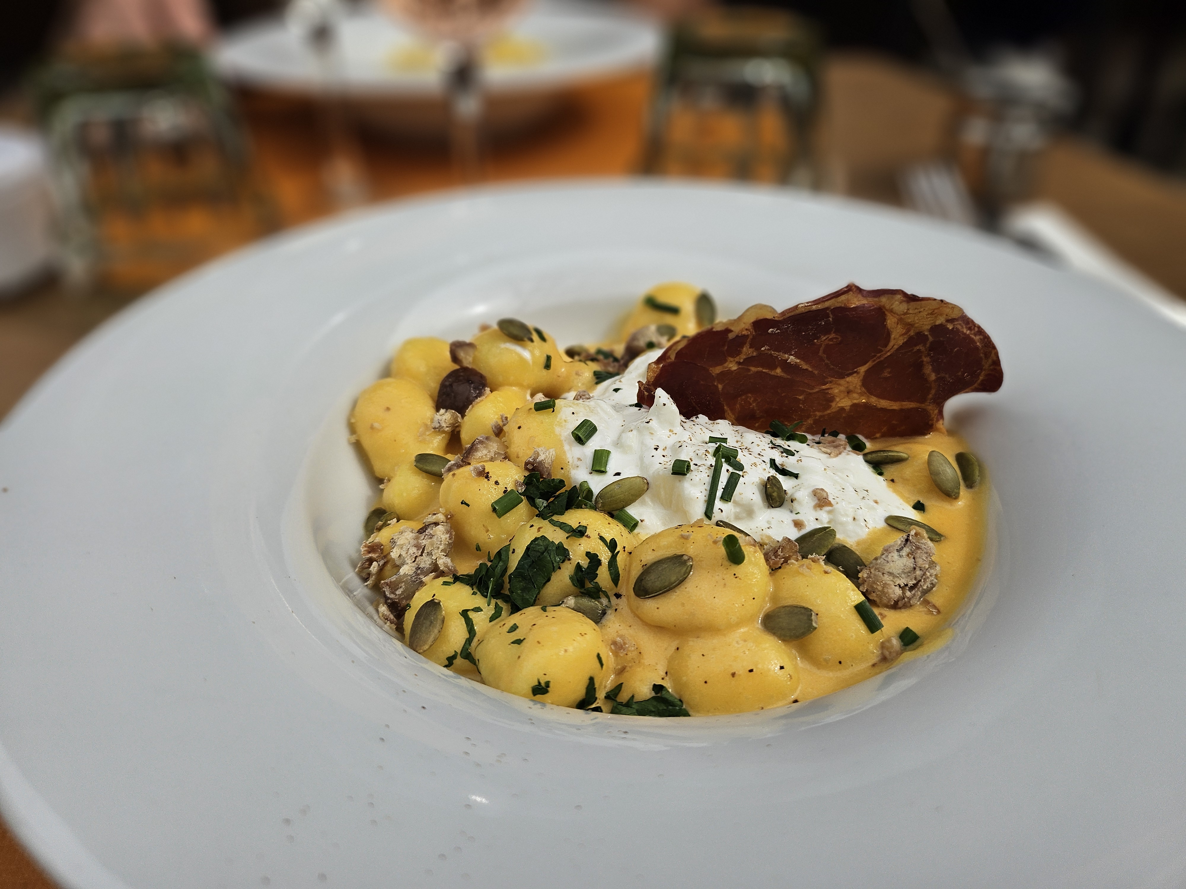 Un superbe restaurant, très bon accueil, excellente cuisine, très belle carte, bon conseil pour le choix des vins, et la cerise sur le gâteau de cette sublime soirée : le tiramisu maison plus que parfait (texture, trempage des biscuit, gout, équilibre), était excellent, probablement le meilleur tiramisu que j’ai dégusté en restauration. Les gnocchis courges, chataignes, et la salade ceasar, étaient incroyables. J’ai passé une superbe soirée. Merci et à bientôt.
