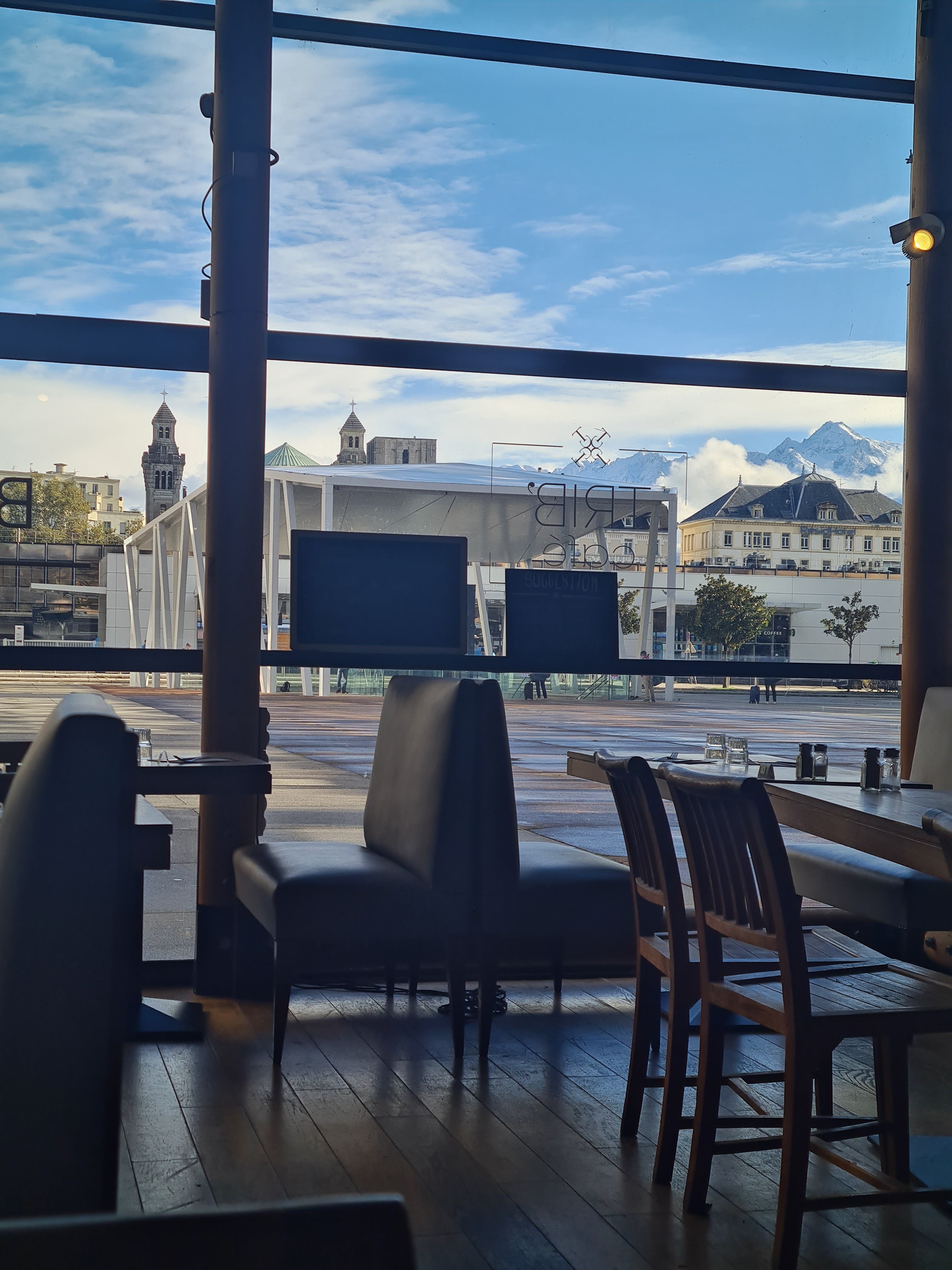 J'aime l'ambiance du café avec cette belle vue sur la ligne de crête de Belledonne ^^ Enjoy your coffee!!