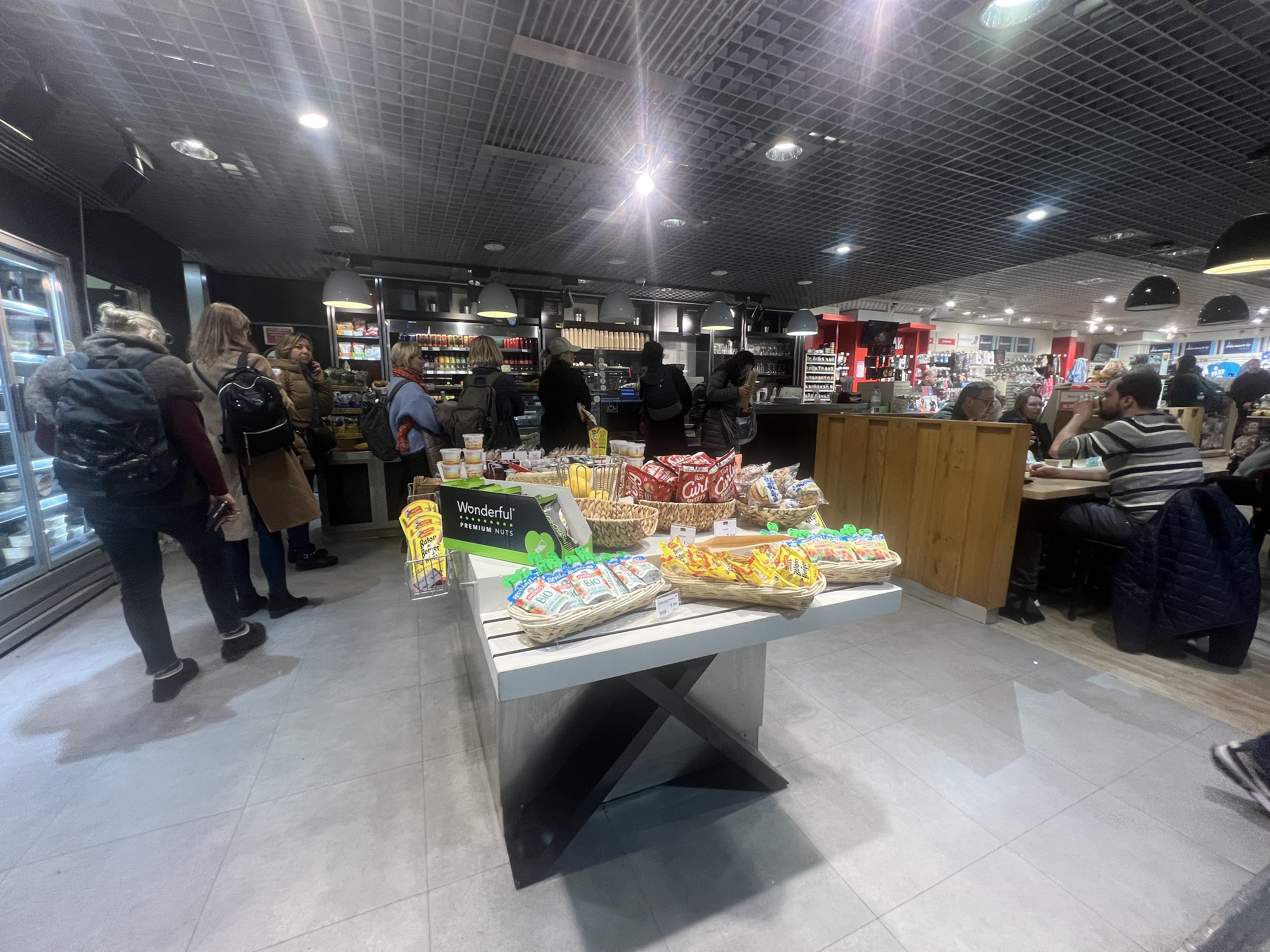 Mieux que ne le suggère la moyenne des avis - des sandwichs et certains plats (à réchauffer avec un micro-ondes en libre-service) disponibles aux prix de l'aéroport. Ce n'est bien sûr pas bon marché, mais cela reste tout à fait acceptable si vous savez à quoi vous attendre. La seule option de restauration disponible après le contrôle de sécurité à l'aéroport BVA (sauf les distributeurs automatiques), alors préparez-vous mentalement !