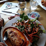 Nous y avons déjeuné rapidement avec des amis. Le service était très rapide et nous avons mangé une nourriture assez savoureuse à des prix intéressants - moins de 120 euros pour 6 personnes, bière et vin compris. Mon steak était un peu gras mais à côté de ça c'était un bon repas.