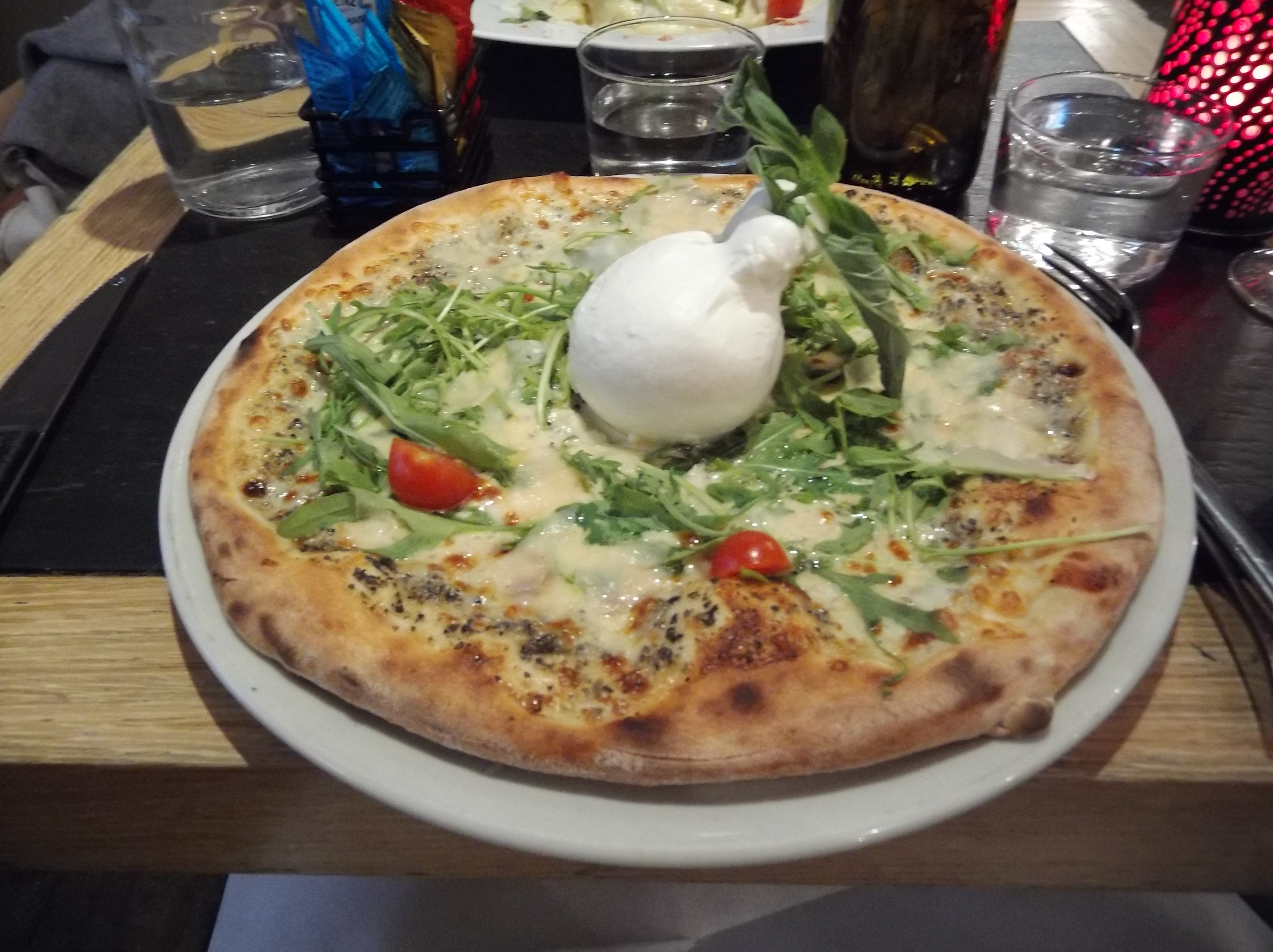 La nourriture et le service étaient excellents ! J'ai eu la pizza au fromage de chèvre avec du miel et mon mari a pris les pâtes aux truffes. Le serveur était extrêmement sympathique et plaisantait avec nous et nous recommandait le vin parfait en fonction de mes préférences.