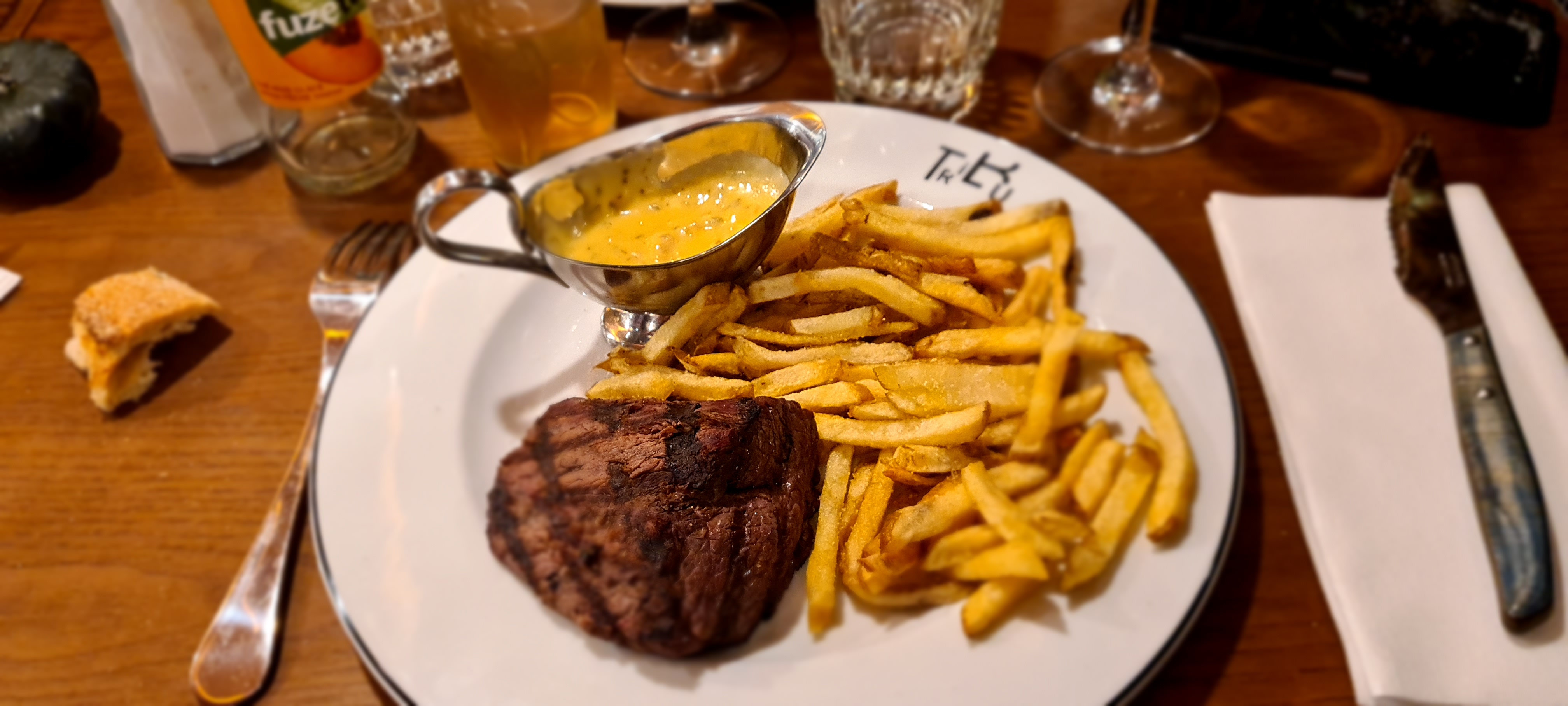 Repas avec des collègues, service efficace, rapide. Qques petites remarques : point de cuisson du boeuf non respecté.. frites maison type pommes allumettes ,oui, mais que des miettes de frites. Béarnaise très bonne. Salade Caesar pas très réussie.. manque de croûtons, parmesan, dressage un peu plat . Dessert généreux , bien 👍