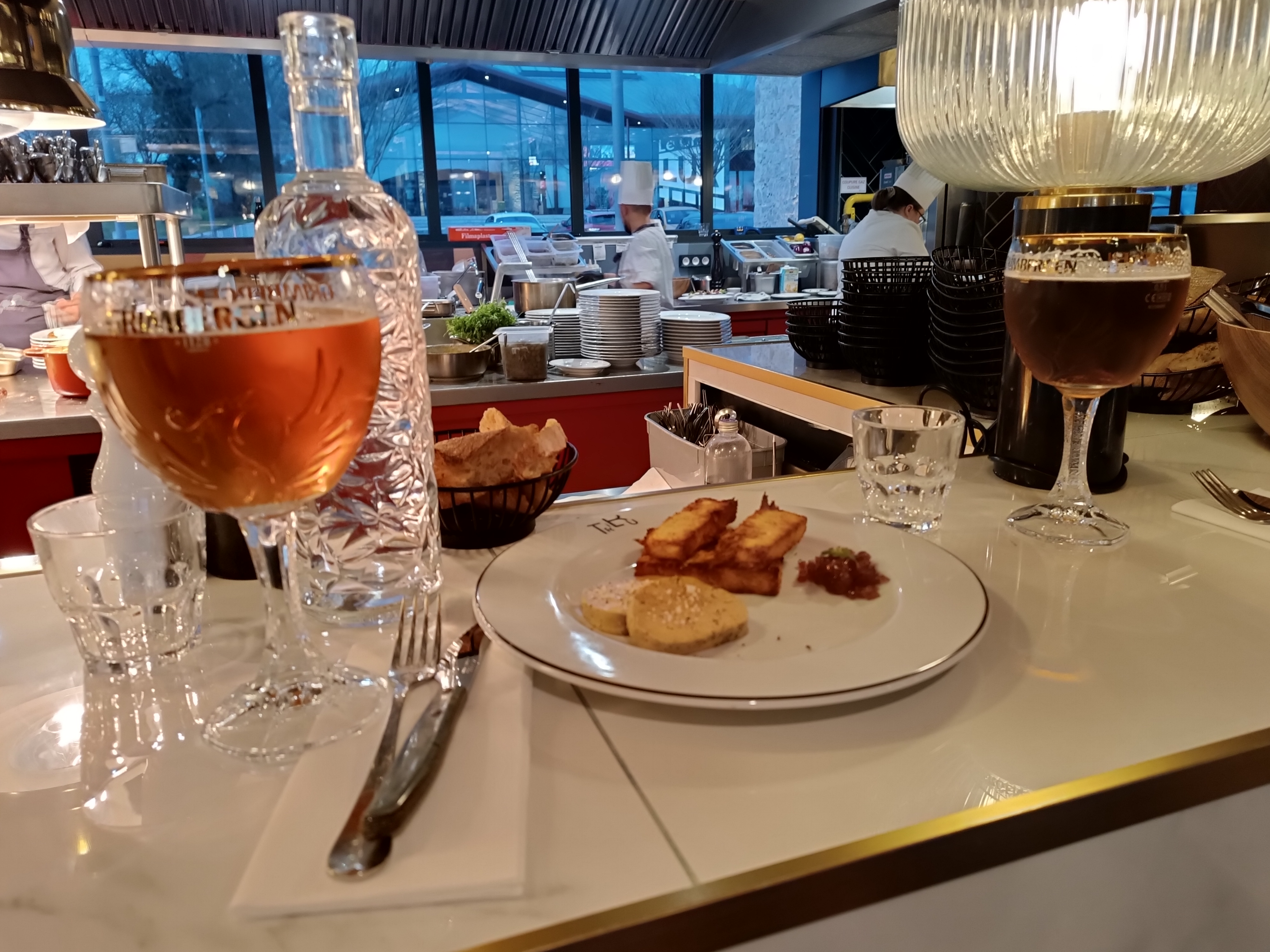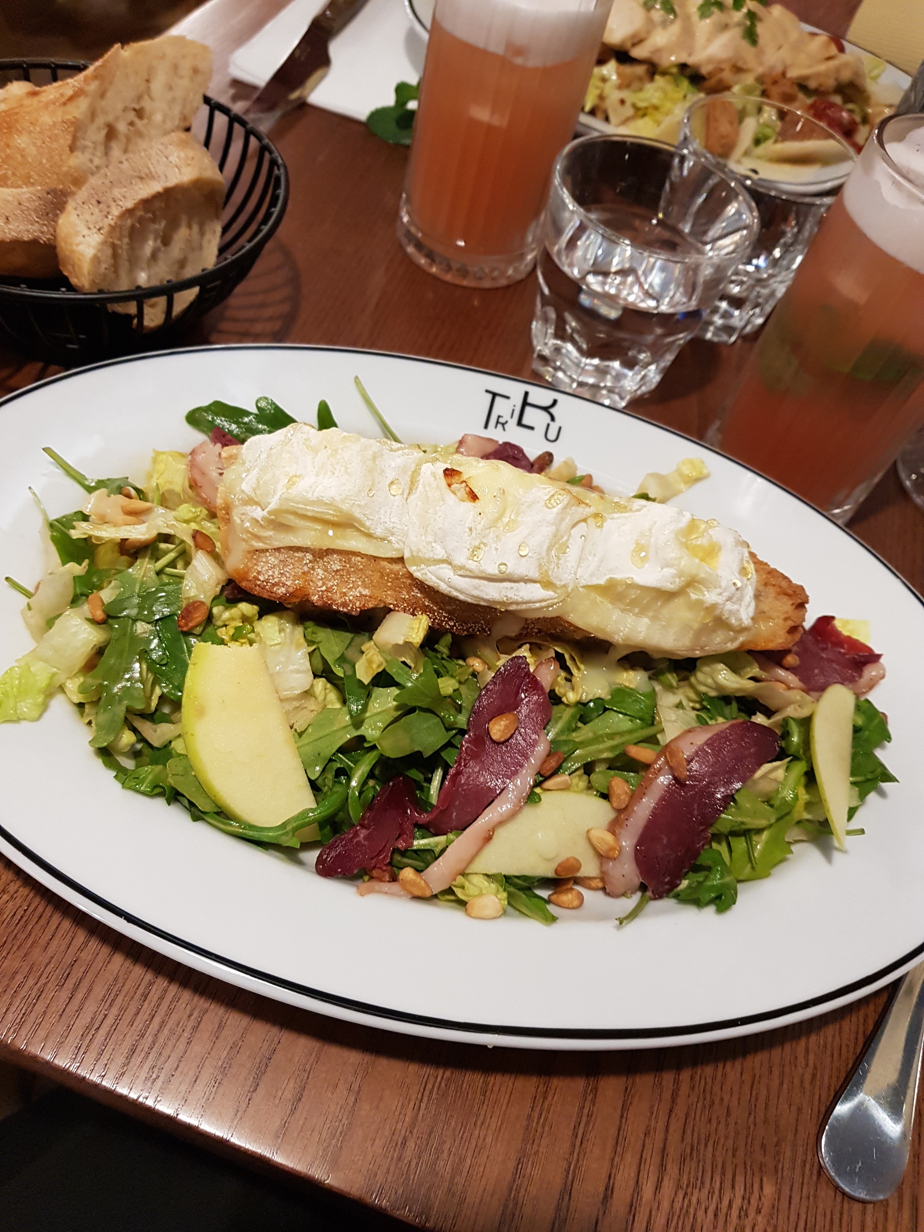 Nous avons été accueillis par un monsieur qui ouvre et ferme la porte à clé derrière chaque personne (étrange …) Le cadre est très moderne et lumineux. Nous étions 3 et nous avons été placés sur une table ronde vraiment petite : point à revoir !!! Nous avons pris un camembert au thym à partager avec notre apéro : un régal !!! Côté plat les portions sont correctes. La viande est succulente. Mention spéciale pour les desserts qui sont vraiment excellents : la tarte fine aux pommes, la mousse chocolat et l’intense chocolat. Le rapport qualité prix est correct.