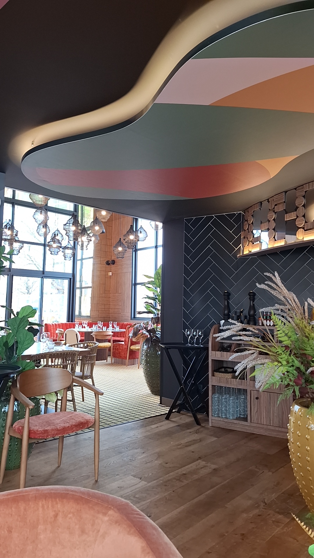Tres belie decoration.. éclairage …. Tout est parfait Par contre il ne faut pas manger derrière les carreaux… Et les tables sont trop serrées… brouhaha perpétuel pendant tout le repas Dommage on sents la mauvaise organisation…