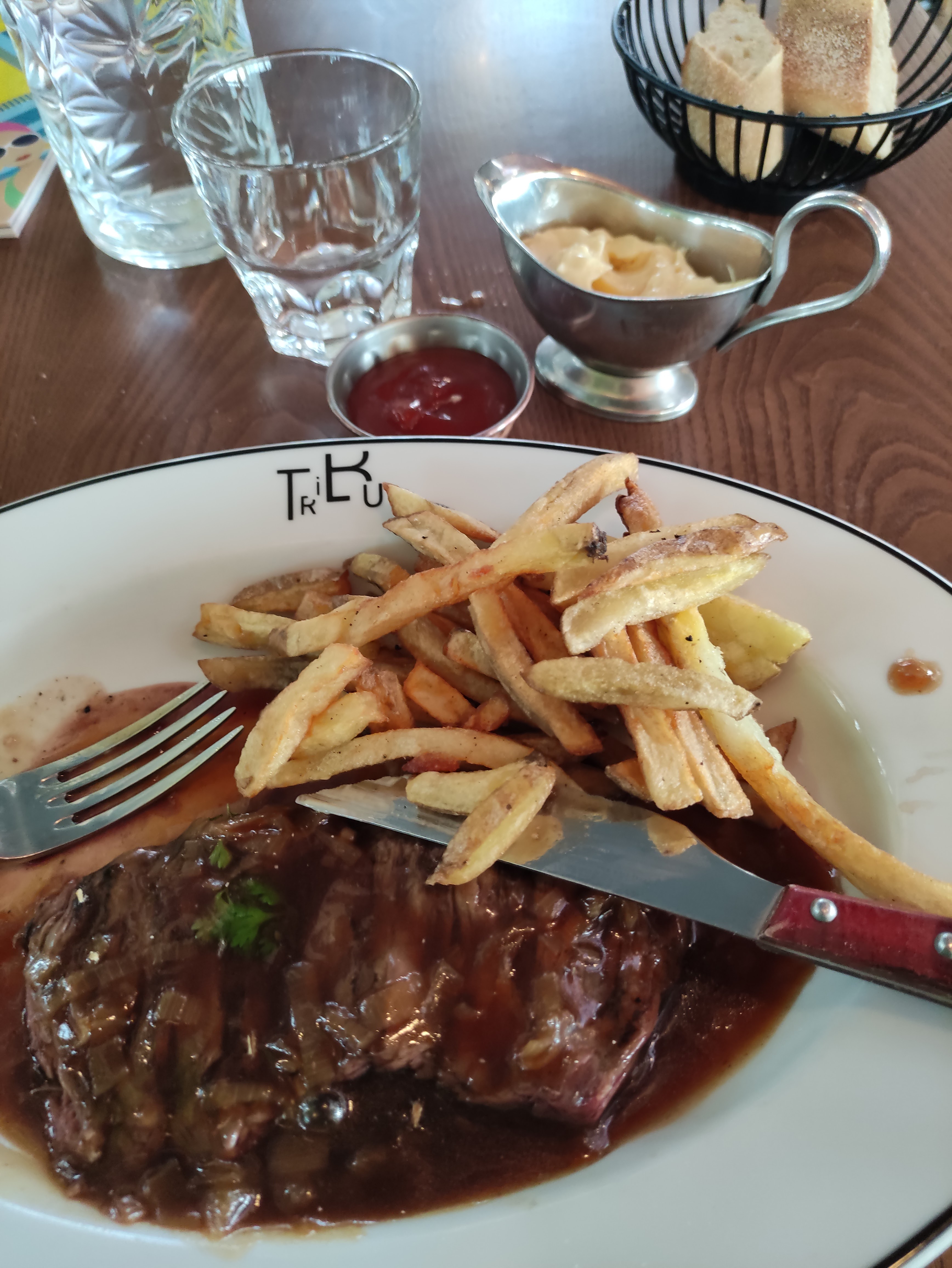 La première fois c'était nickel la je suis dessus. Plus de plat du jour. Frites minuscules Très bruyant. Service et personnel impeccable.