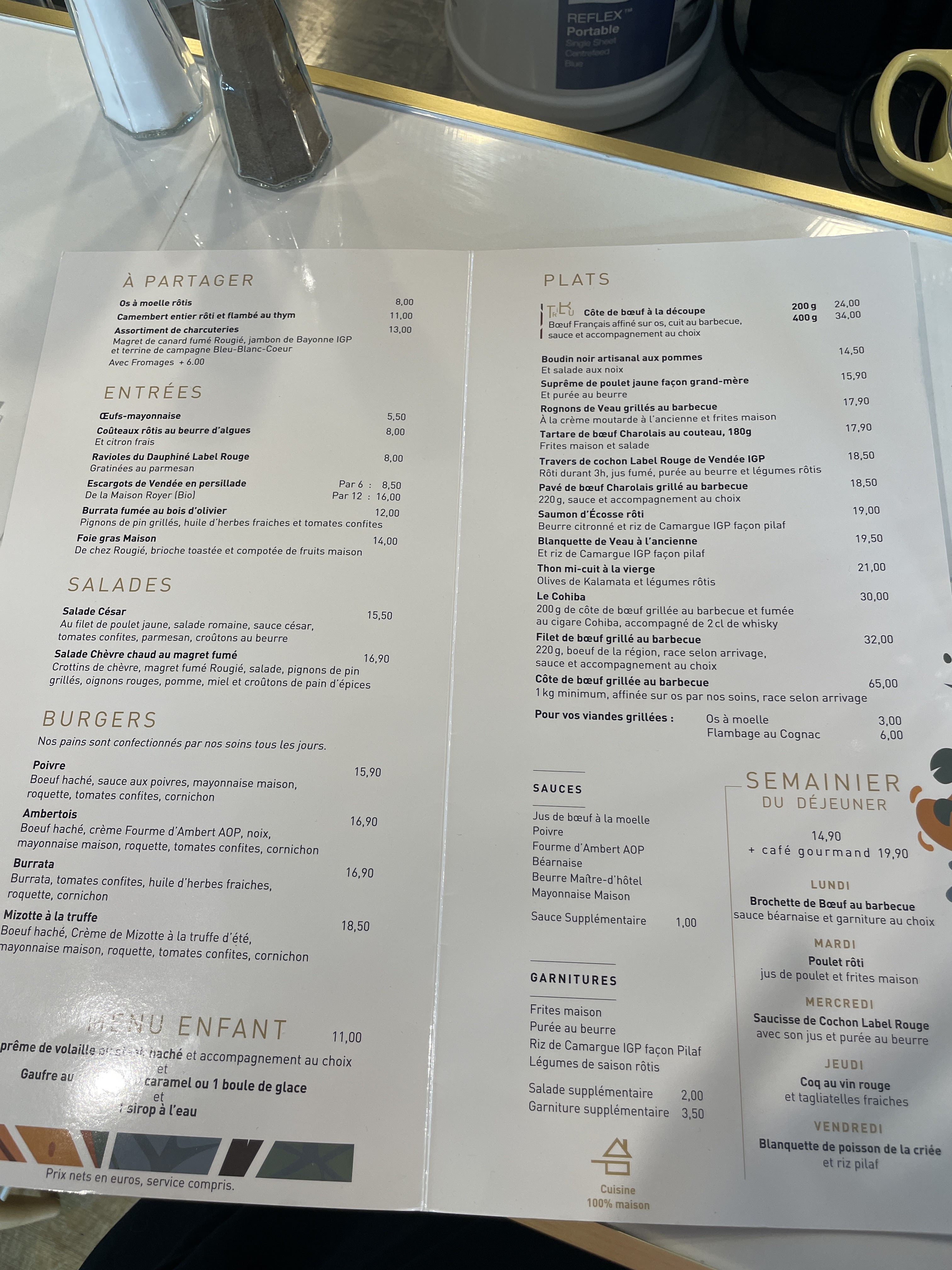 Personnel accueillant et bienveillant La cuisine est très bonne, peut être qu'un menu le week-end serait pas mal Un peu dubitative avant de venir car il a fallu confirmer 3 fois notre réservation jusqu'à un appel pour savoir si on voulait manger vite ou prendre notre temps. Bonne ambiance même si le bruit fait penser à un esprit cantine. Nous allons revenir un midi en semaine pour se refaire un avis mais nous recommandons