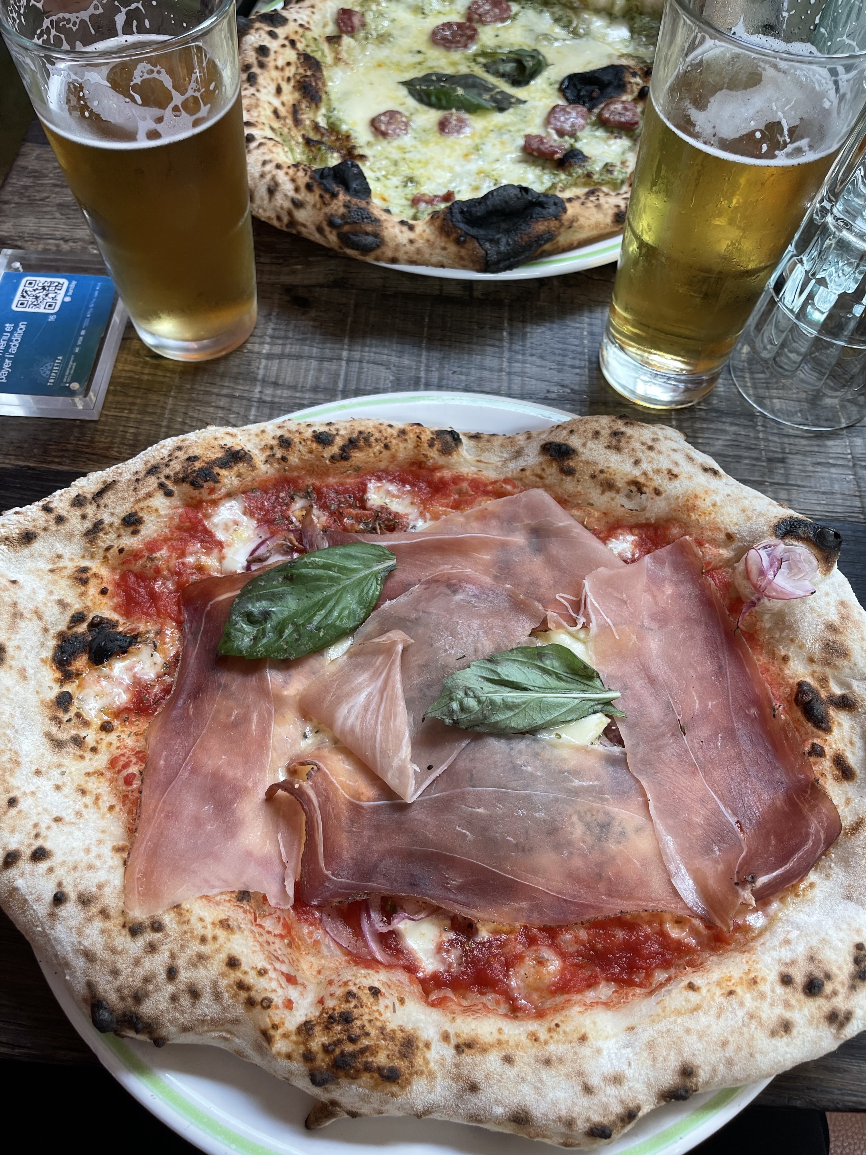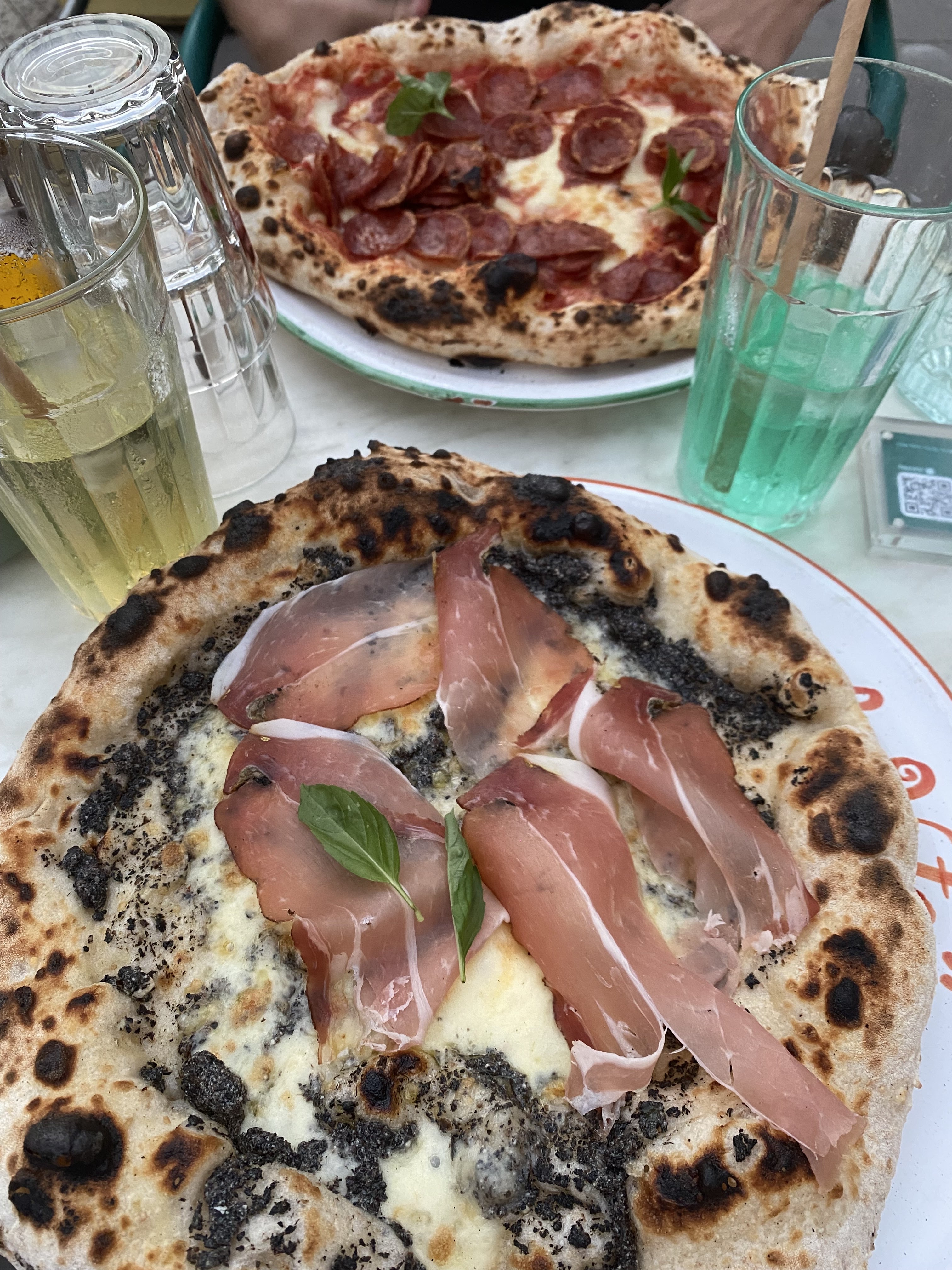 Un joli cadre et de très bonnes pizzas. Un peu déçu par le vin, un Bardolino classico. Idem pour le tiramisu, mais ça n’a pas affecté l’expérience.