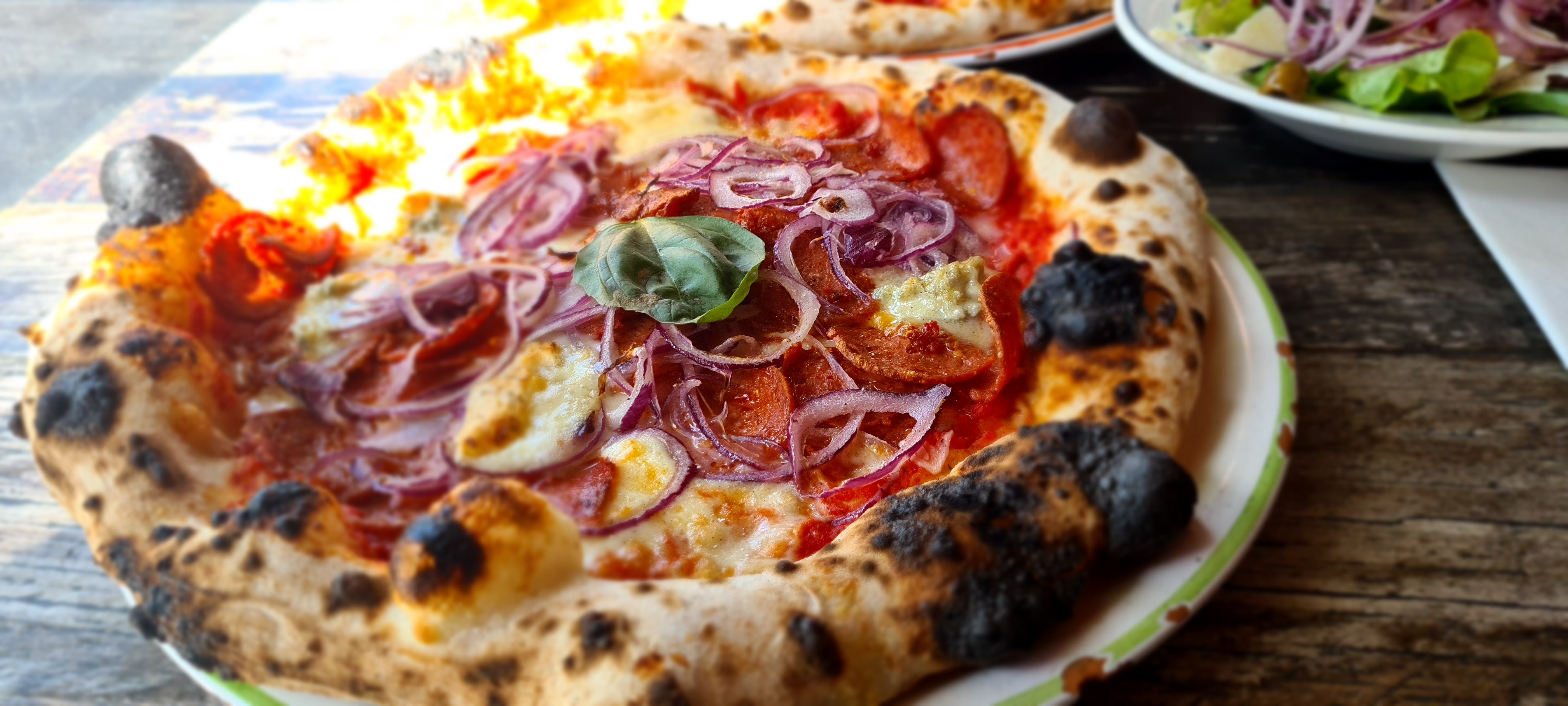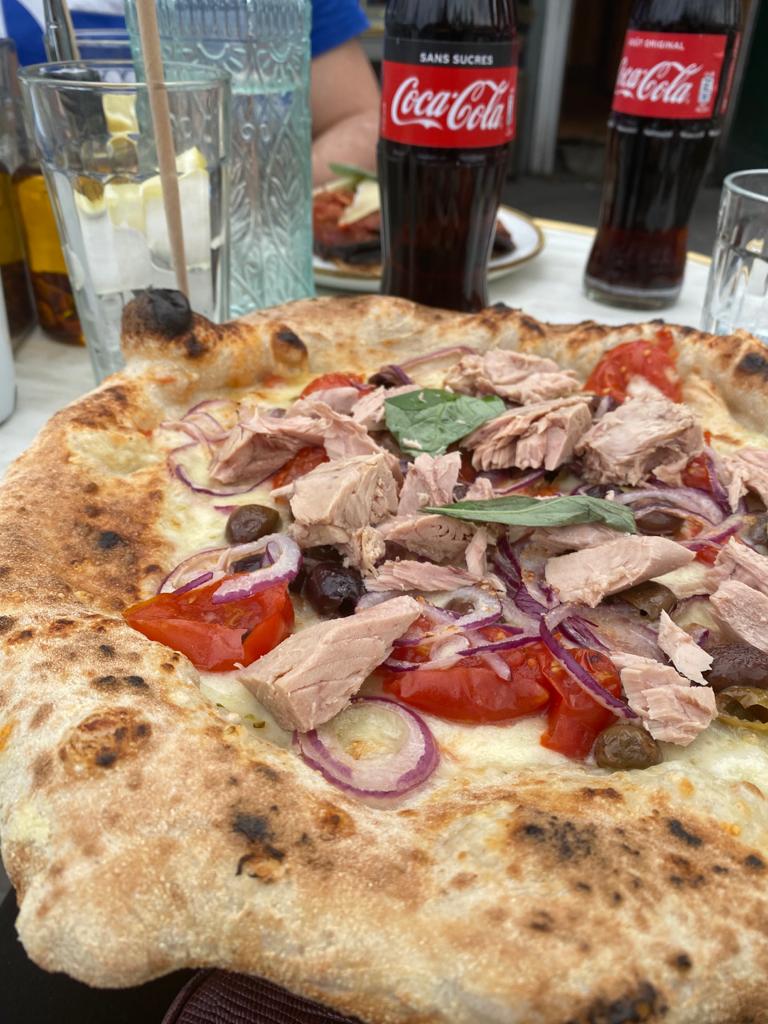 Les pizzas sont fraiches, copieuses et délicieuses ! un très bel endroit pour partir en Italie à petits prix ....