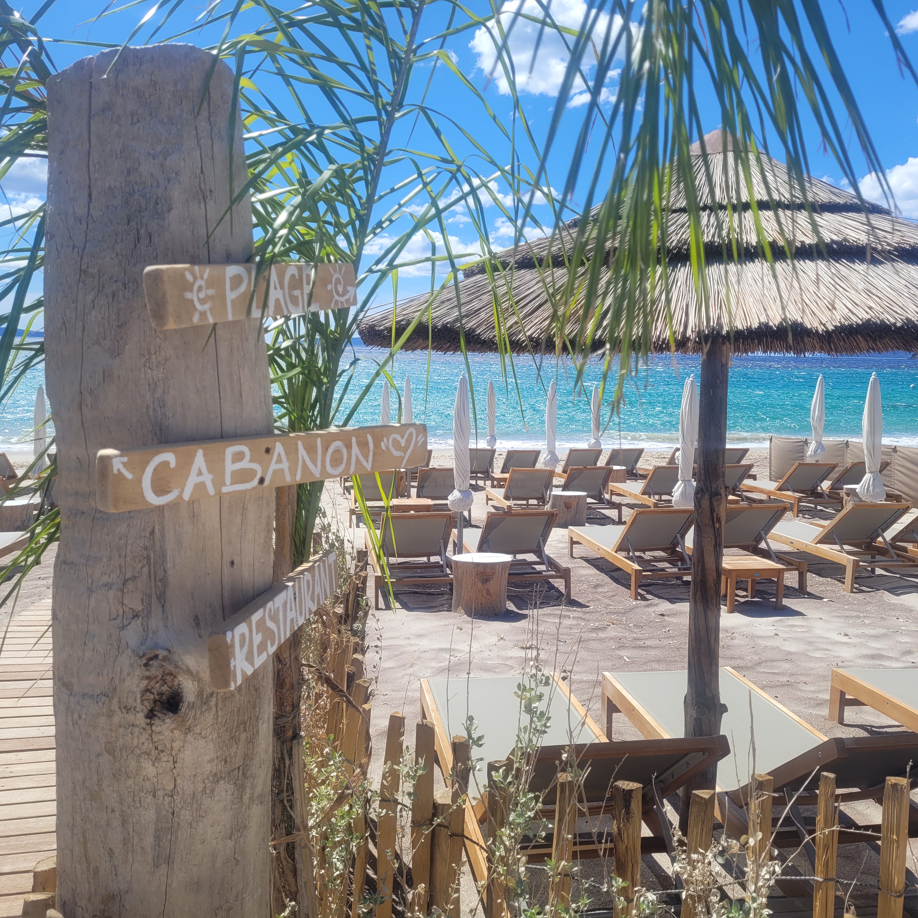Idéal pour profiter des joies de la plage .Resto sympa et bonne cuisine fraîche dans un cadre idyllique.Plage agréable et bien tenue mais chaises longues et parasols trés serrés ..si vous n'aimez pas la promiscuité mieux vaut aller ailleurs...comptez 40 Euros pour 2 matelas et un parasol la journée qui commence malheureusement à partir de 10 heures le matin...cher pour une plage traditionnellement familial