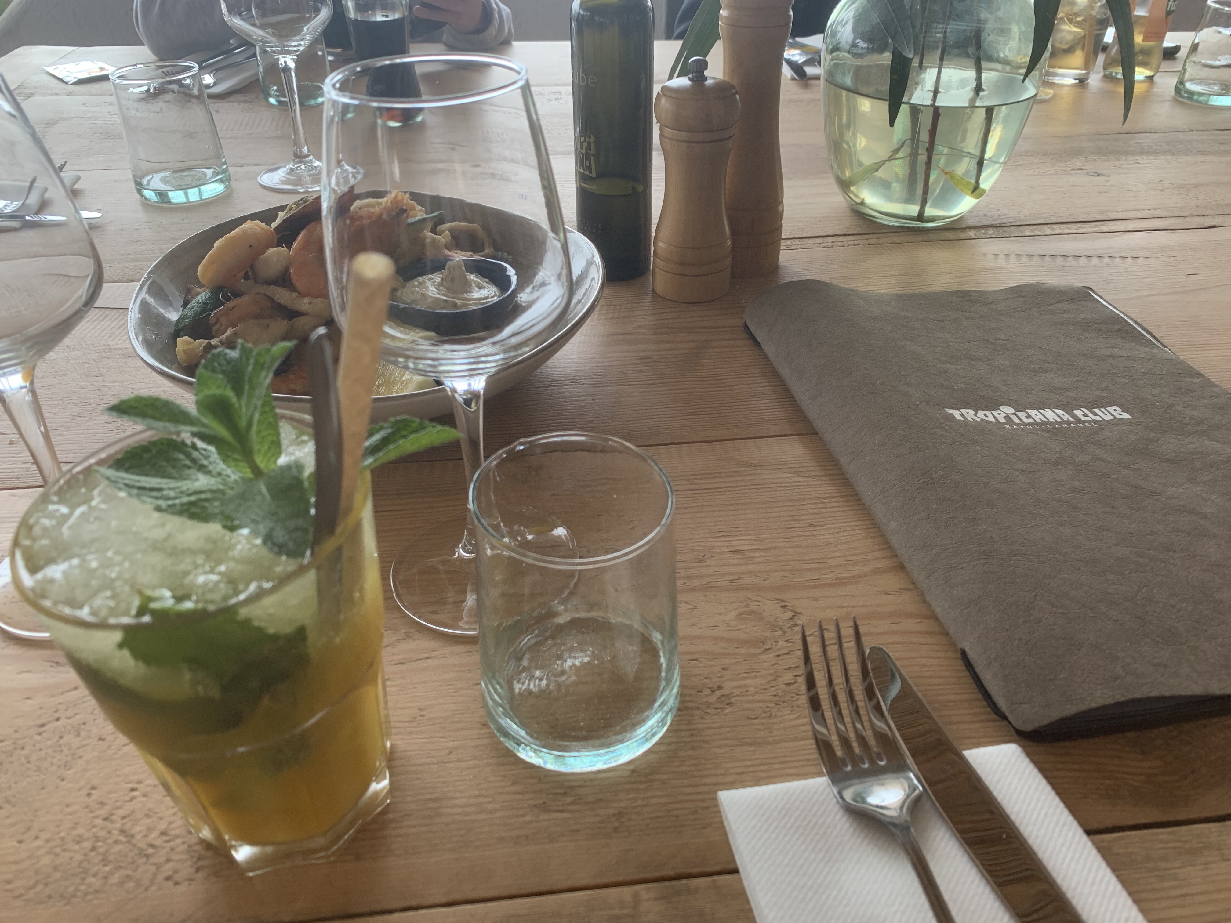 Une très bonne table poissons et viandes au barbecue excellent. Une anchoïade à partager avec des légumes frais et croquants.un service dynamique souriant prévenant Une plage privée avec une très jolie déco la plage du rayol canadel magnifique Le tropicana club coche toutes les cases pour une journée et aussi une soirée de détente et plaisir je valide 🤩🤩👍👌 Merci Co GRACIAN