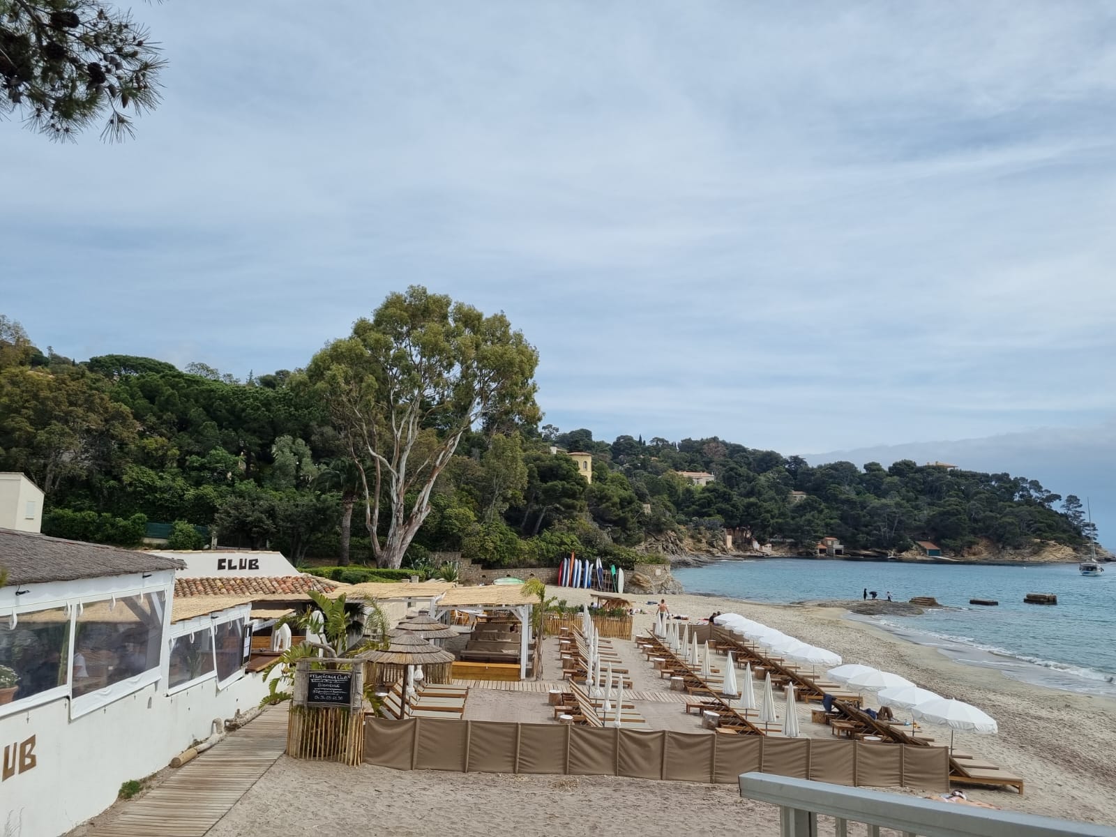Plage de Rayol Canadel, plage du débarquement…. Magnifique lieu chargé d’Histoire! Paillette d’or tapisse le fond d’une eau cristalline…. Le Tropicana vous accueil dans ce décor magique….. Un peu serré sur les transats, mais le lieu et l’équipe vous font vite oublié ce détail. La cuisine est délicieuse, le tout face à la mer… Nous reviendrons.