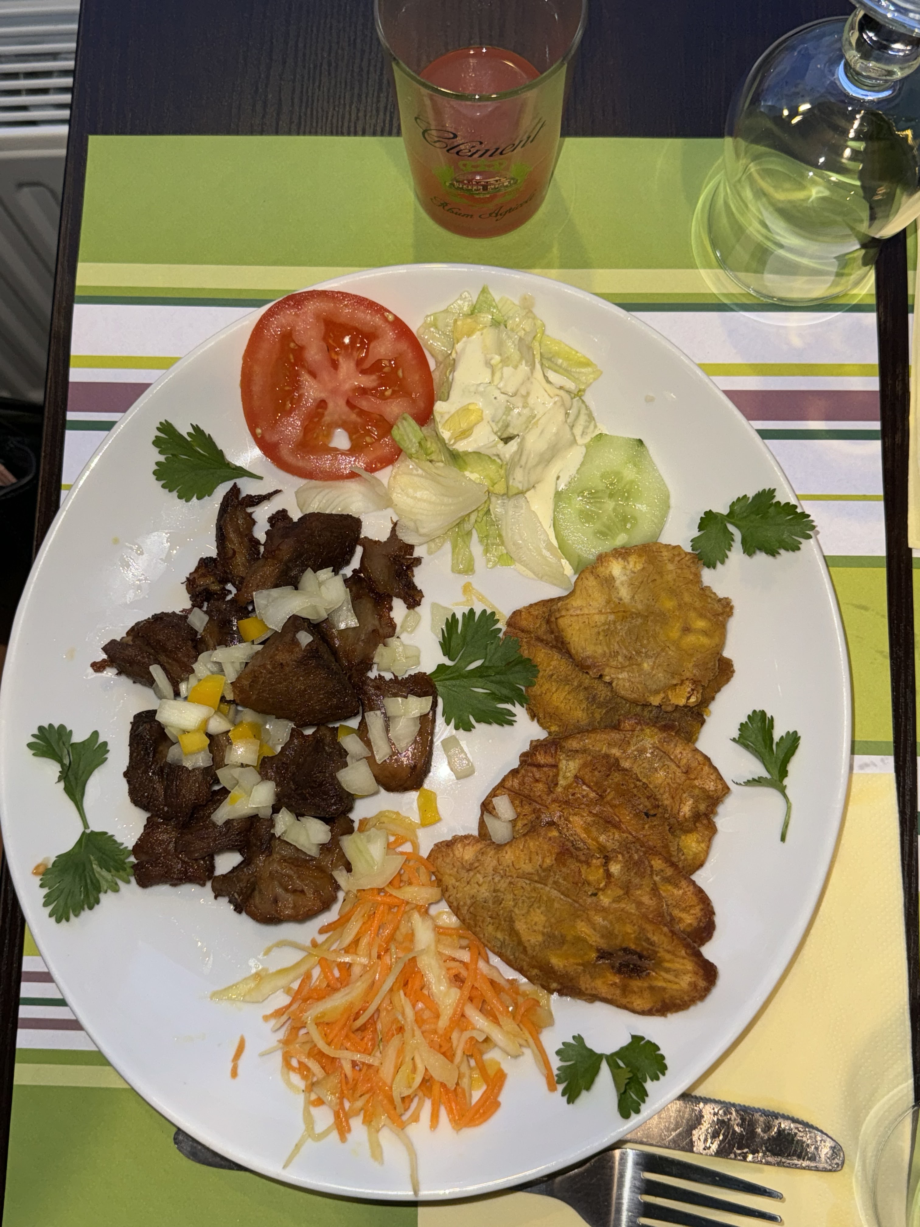 Il y a deux semaines, nous nous sommes retrouvés ici ; le premier et unique restaurant haïtien de Lyon. J'ai été agréablement surpris ! C'est dommage que le jour de notre séjour, tous les plats n'étaient pas disponibles, mais cela ne sert qu'à inciter à revenir. Le service était excellent, la nourriture était très bonne (et contrairement à la plupart des choses que vous pouvez trouver ici) et l'ambiance était vraiment sympa. Je recommande vivement cet endroit à tous ceux qui veulent essayer quelque chose de nouveau/différent !