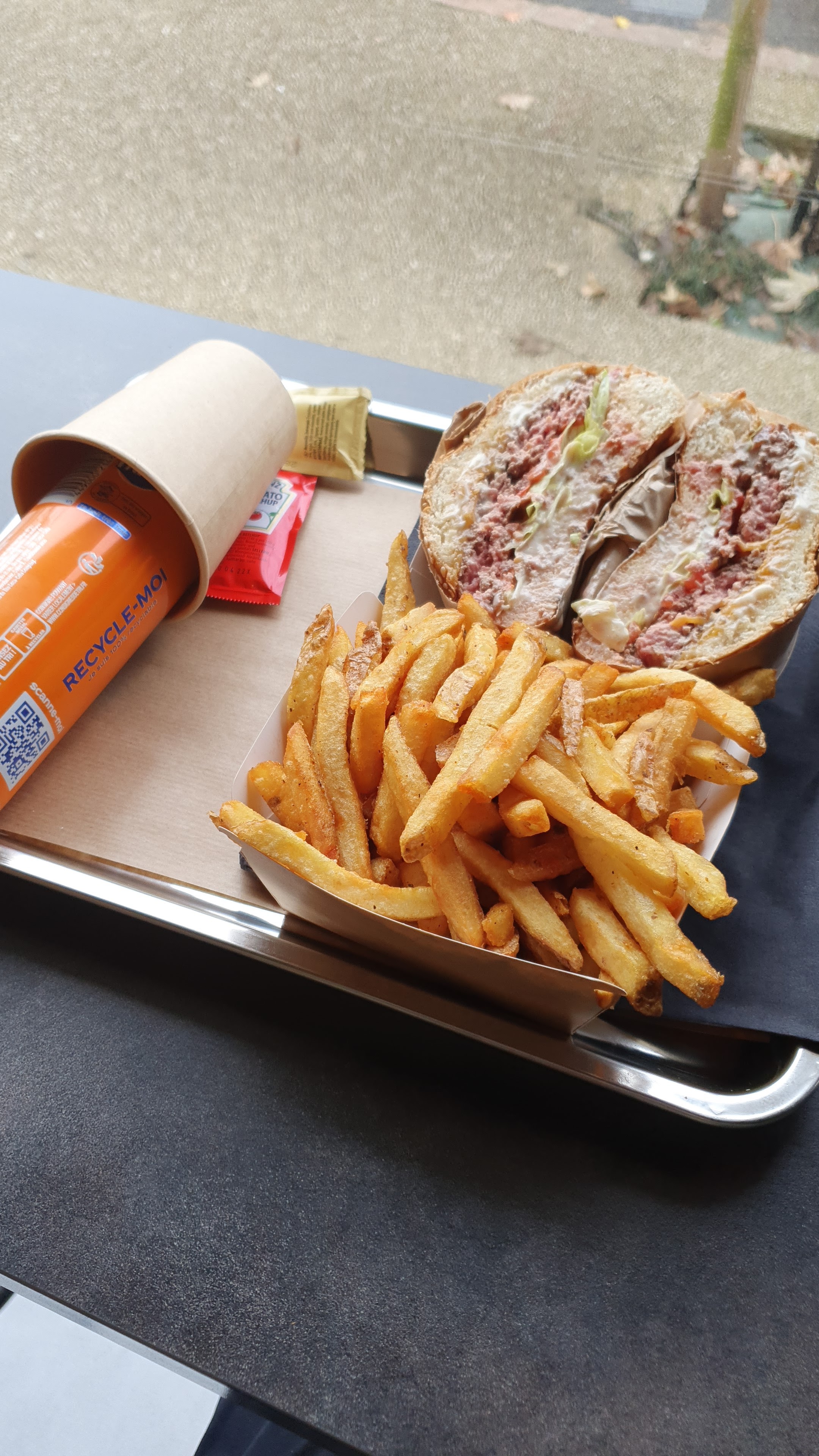 Très bon burger et frites !!! Rien à envier aux gros concurrents !!