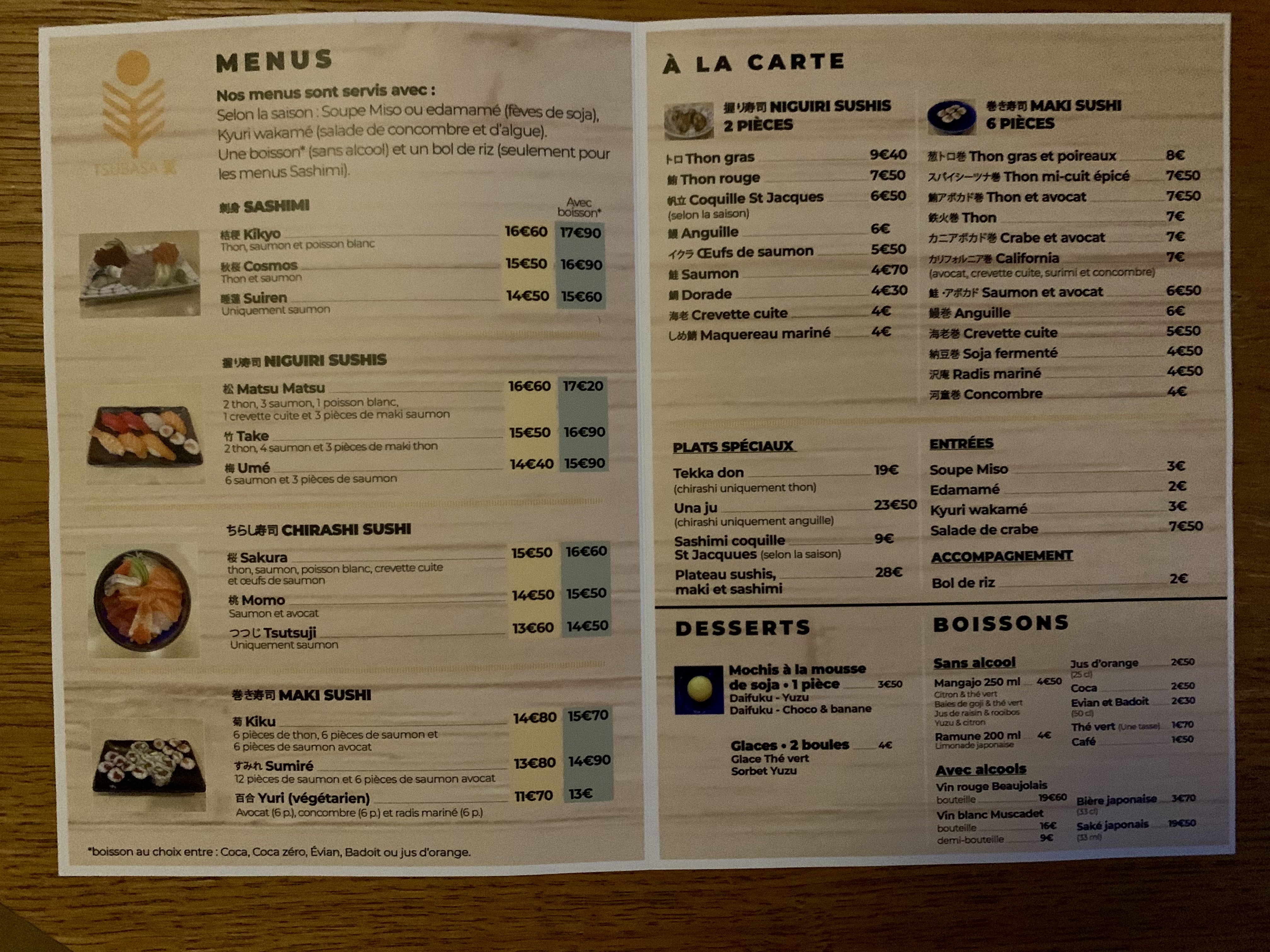 Le Tsubasa fait honneur à la gastronomie japonaise en proposant des plats typiques simple mais extrêmement bon. Le chirashi mixte (5poissons) était frais et l'ambiance du restaurant est très reposante ! Le gérant est très accueillant et sympathique, une bonne adresse 👍