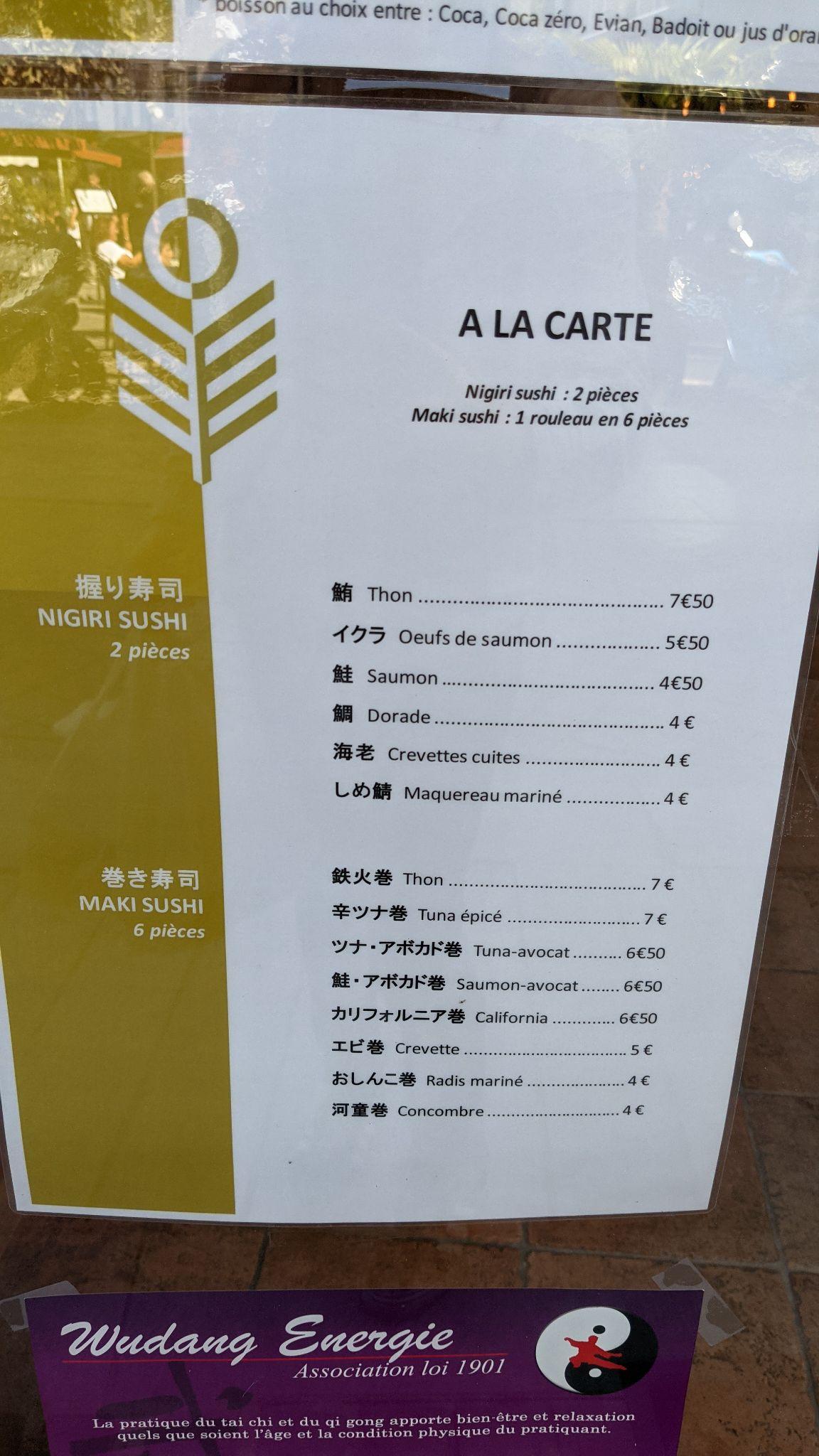 Les sushi sont bons, prix abordables pour la zone et le propriétaire/cuisinier est top ! N’hésitez pas si vous voulez manger léger, bon et rapide le midi