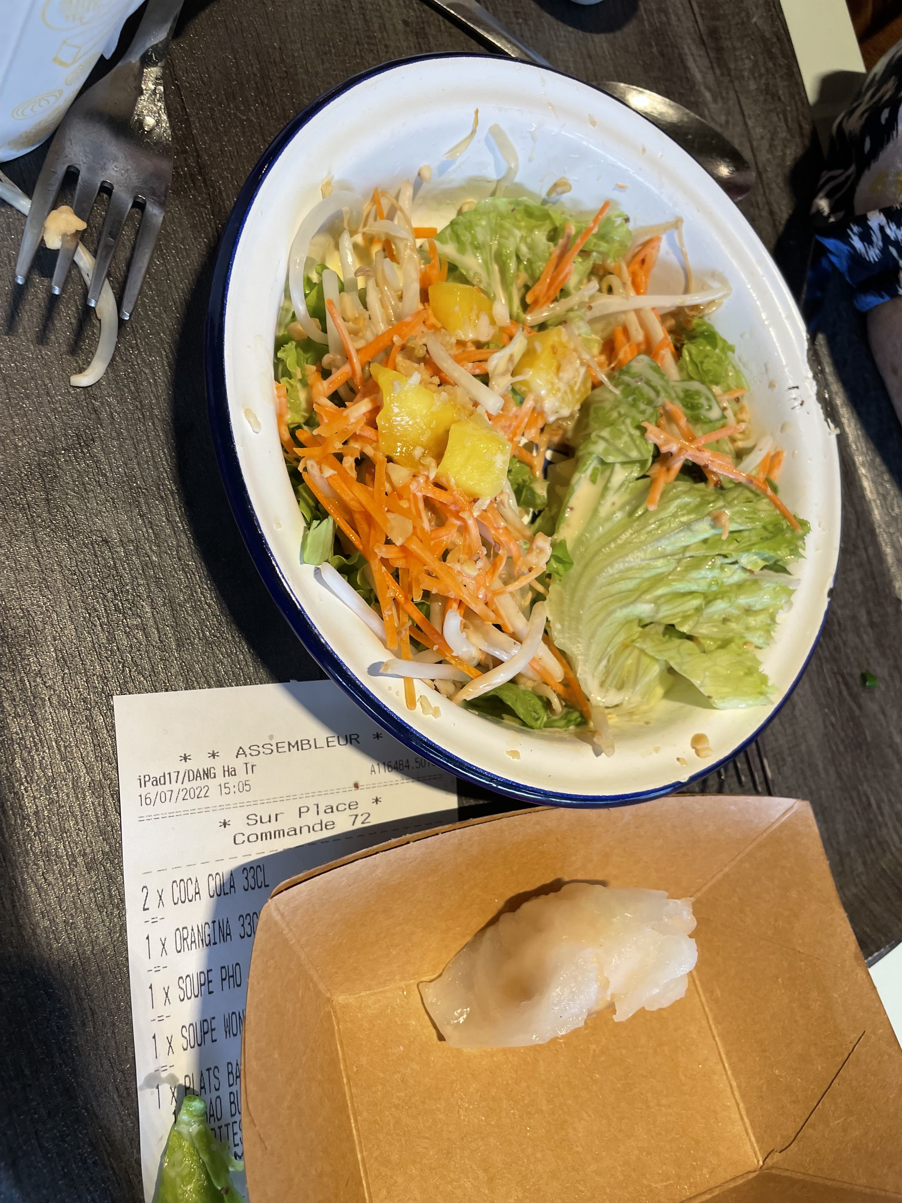 Bonjour, Beaucoup d'attente pour un bobun alors qu'il y a au moins 10 personnes en cuisine. Résultat : nem très gras et pas croustillant boeuf morceaux coupés trop gros et nouilles froides. Pas terrible pour un prix élévé.