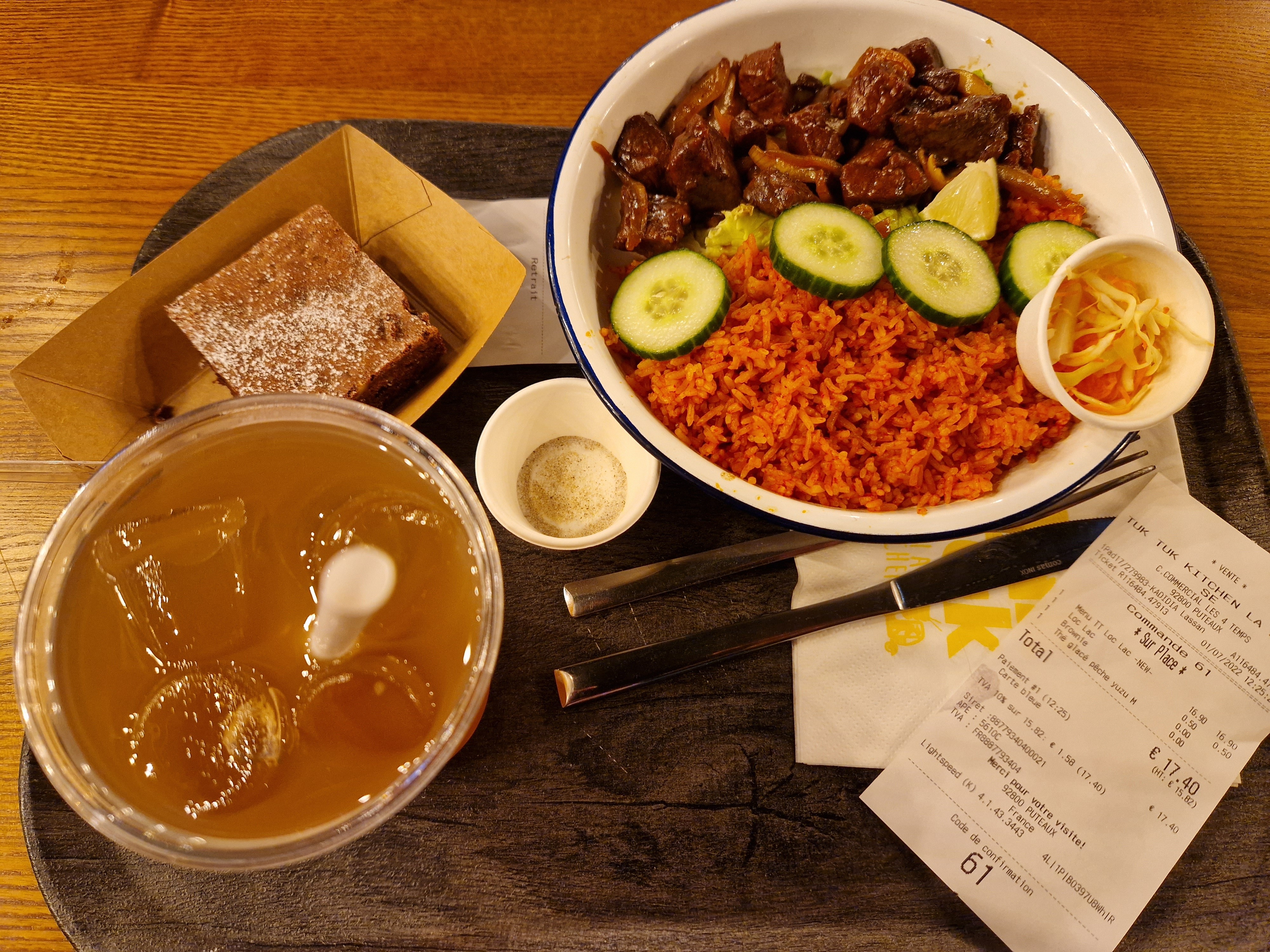 Service rapide, pleins de choix de nourriture tous plus excellents les uns que les autres. Gros coup de coeur pour le riz a la tomate qui me rappelle celui de ma maman !!
