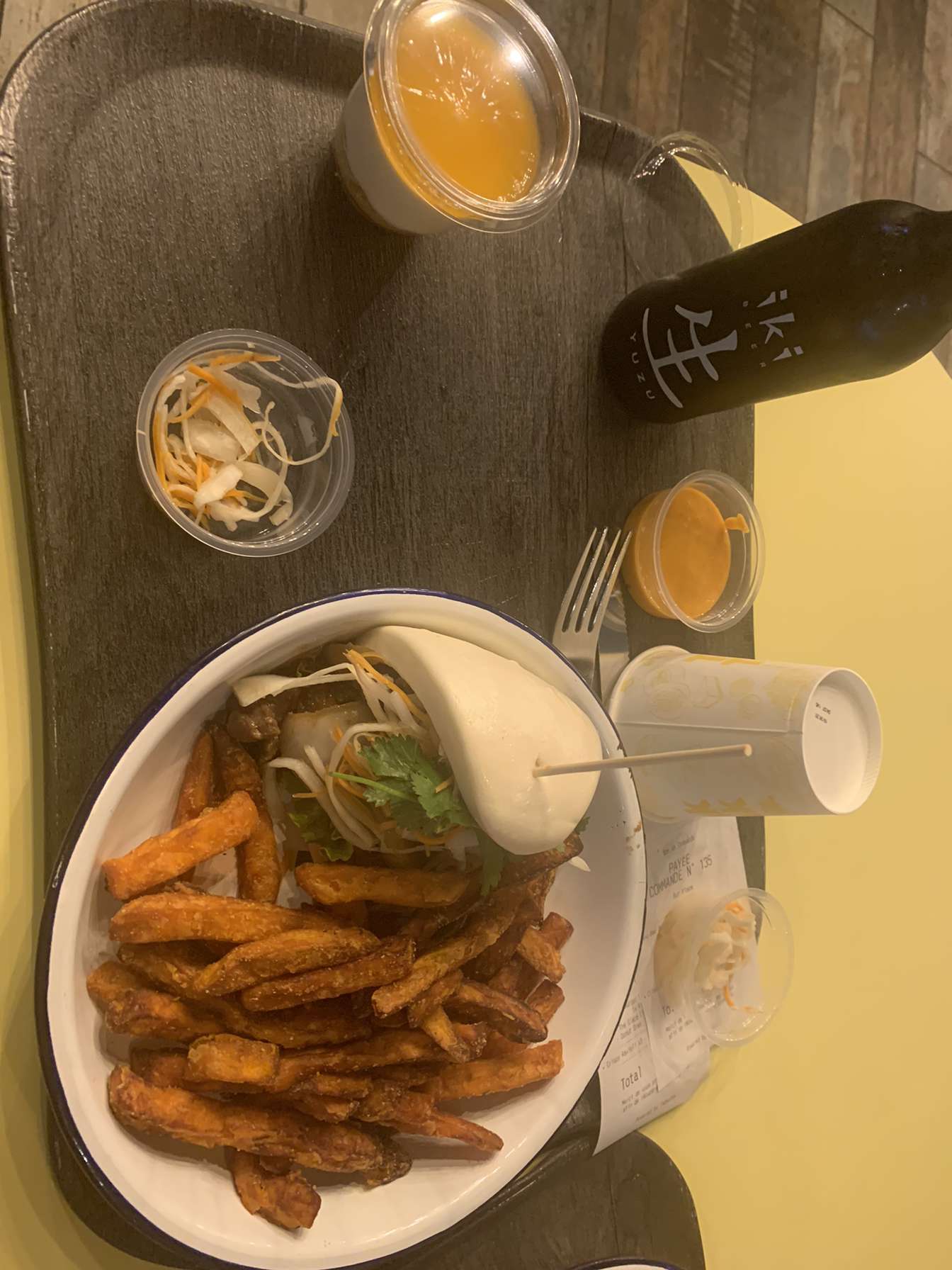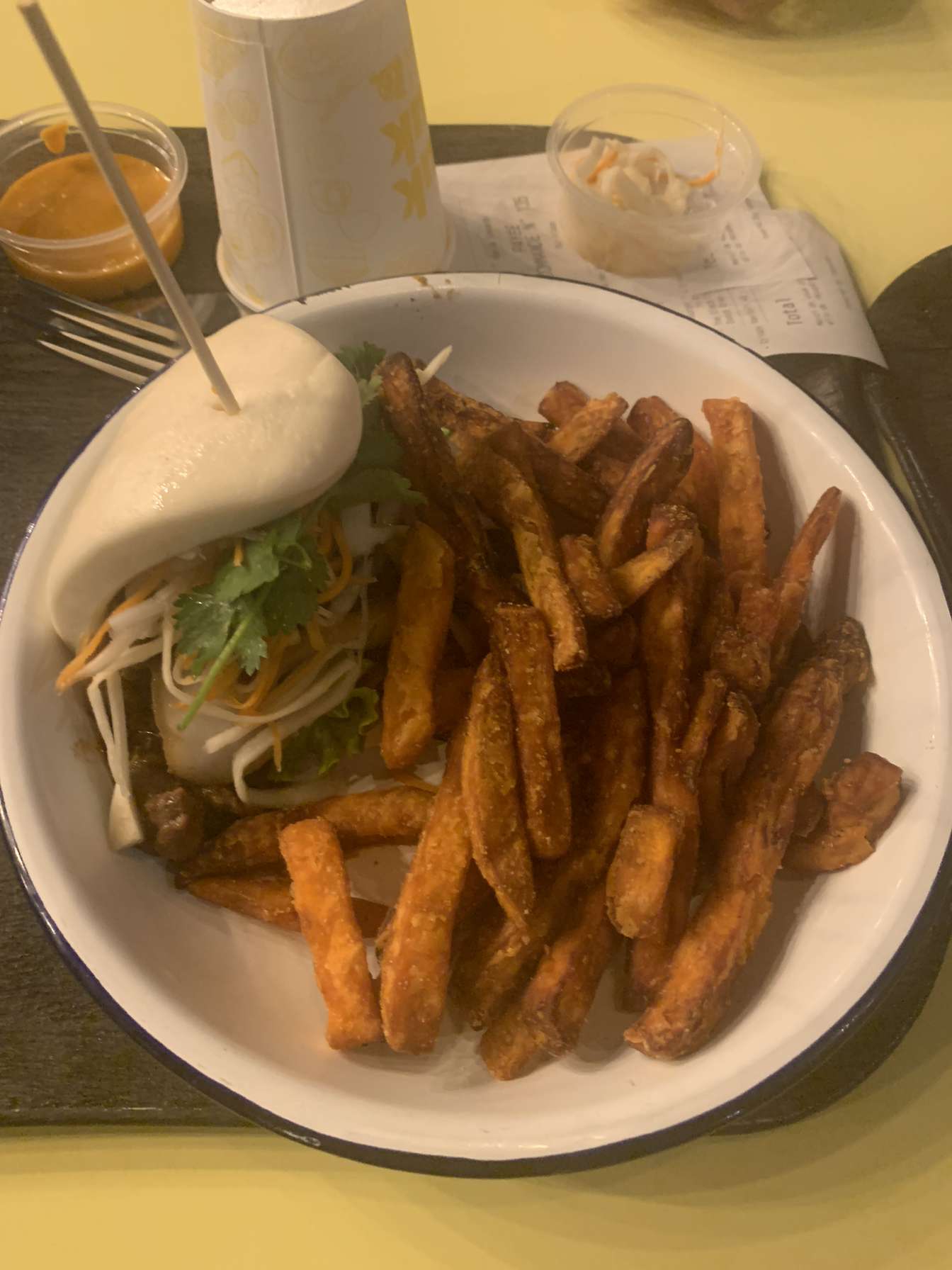On ne s’attendait pas à un truc de ouf en mangeant dans un centre commercial mais agréablement surpris. On a pris un BAO au bœuf et le bœuf était tendre et bien mariné et les frites de patates douces très bonnes aussi. Nous sommes des adeptes de la cuisines asiatiques et on recommande :)