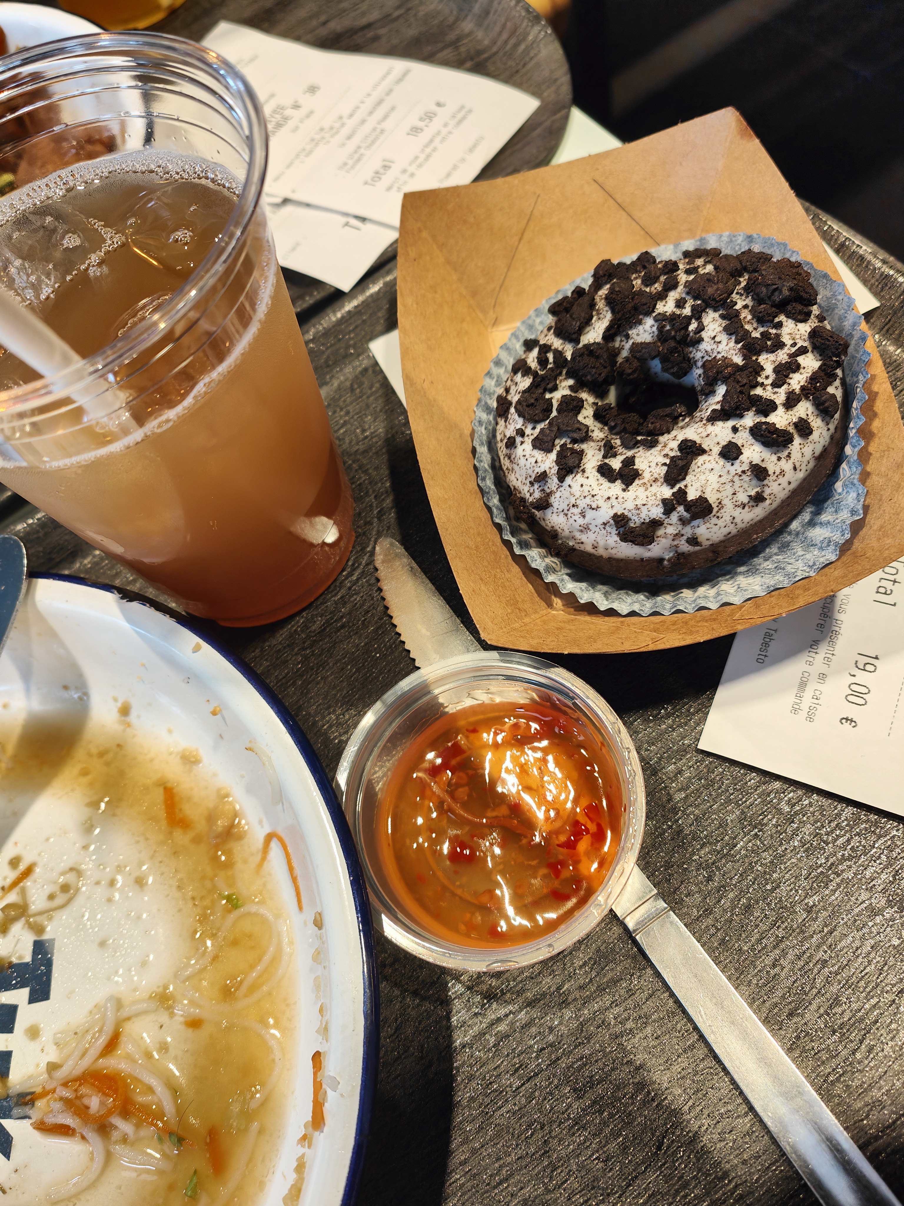 Serieusement, un bo bun dans une assiette plate pour 14€ ?? La blague ... Et pas de toilettes, il faut utiliser celles du centre et payer. Plus jamais. Sans parler du sol colant et des tables sales