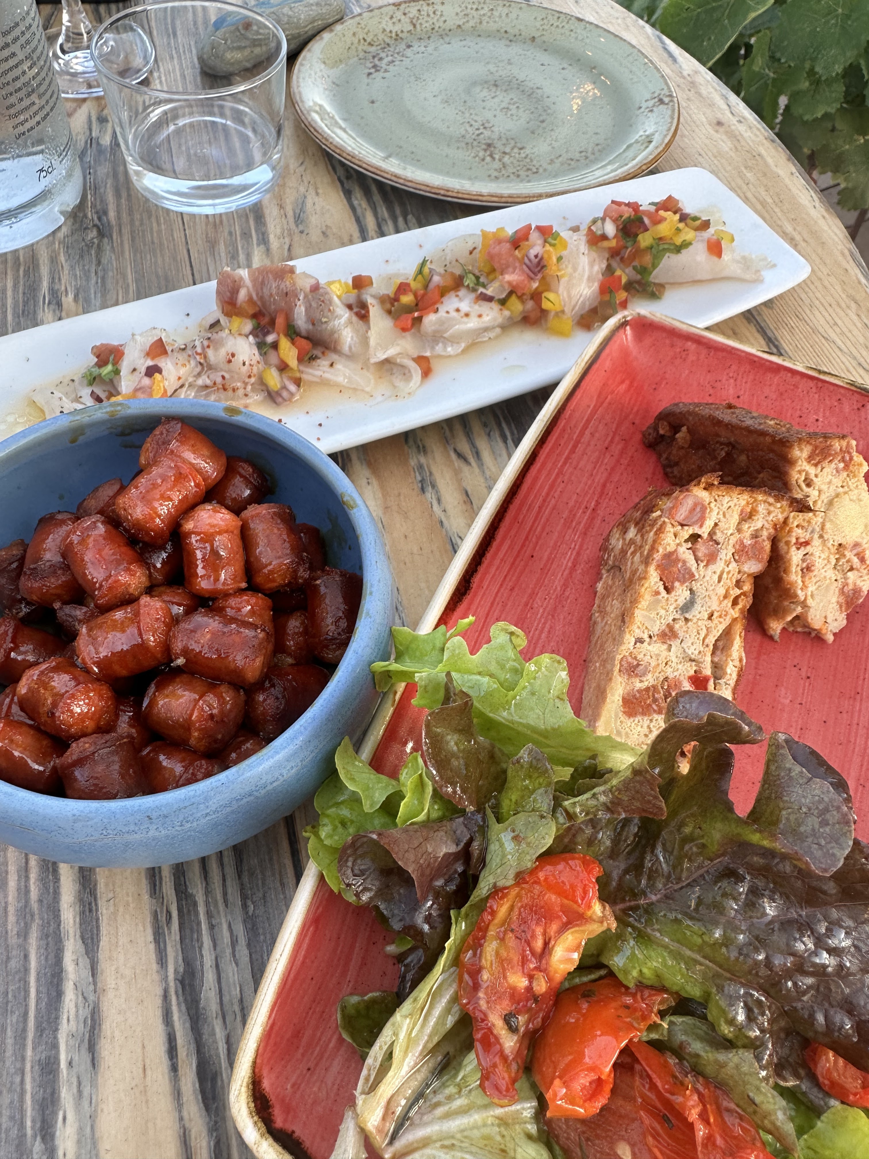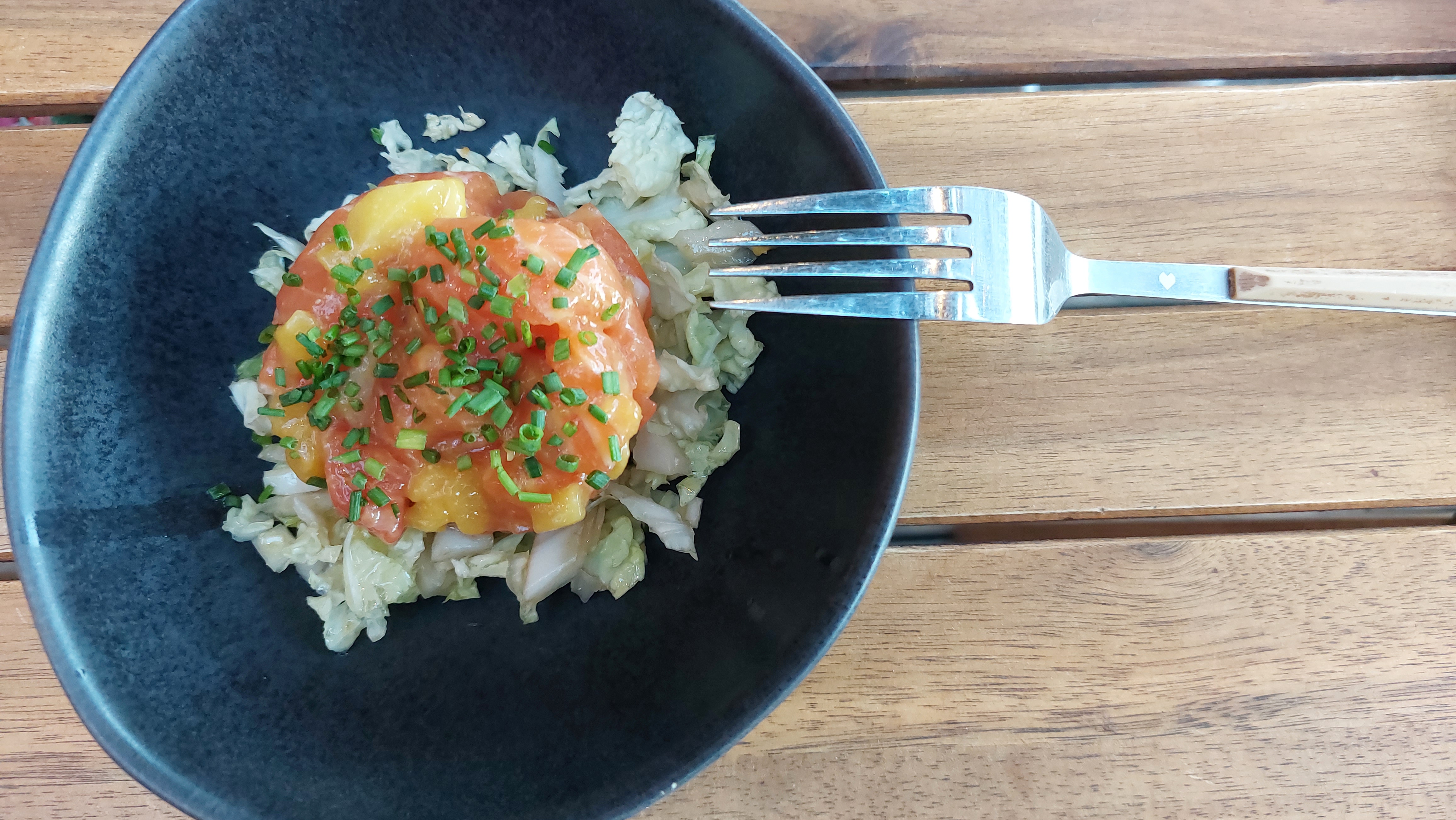Le cadre et les plats sont toppissimes, on se régale à tous points de vue. Le seul hic c’est la « musique » en mode « lounge » qui dénote avec le lieu et la nature environnante.